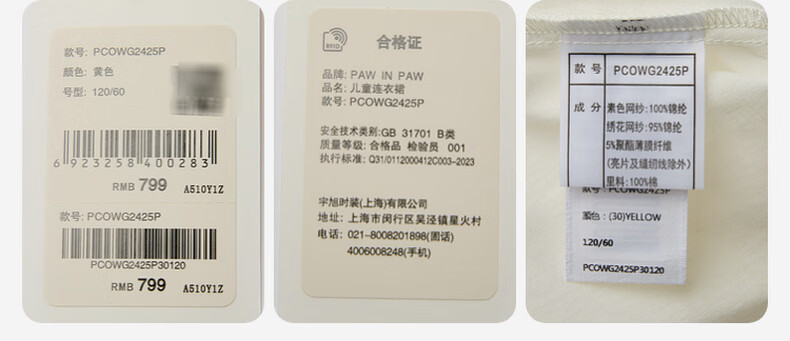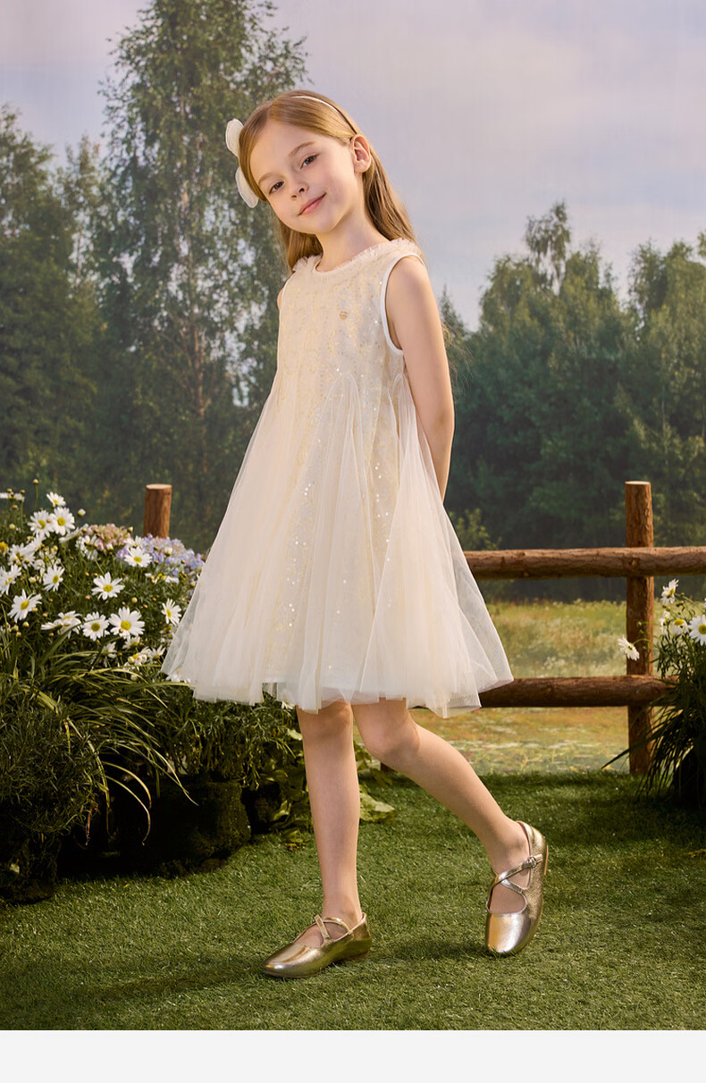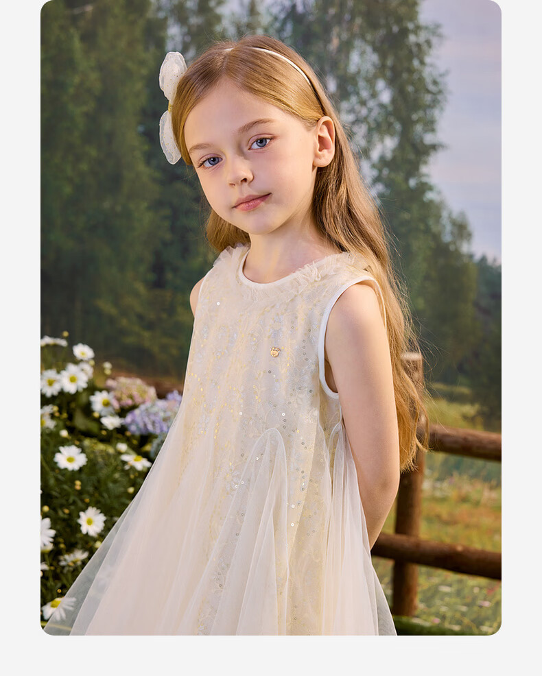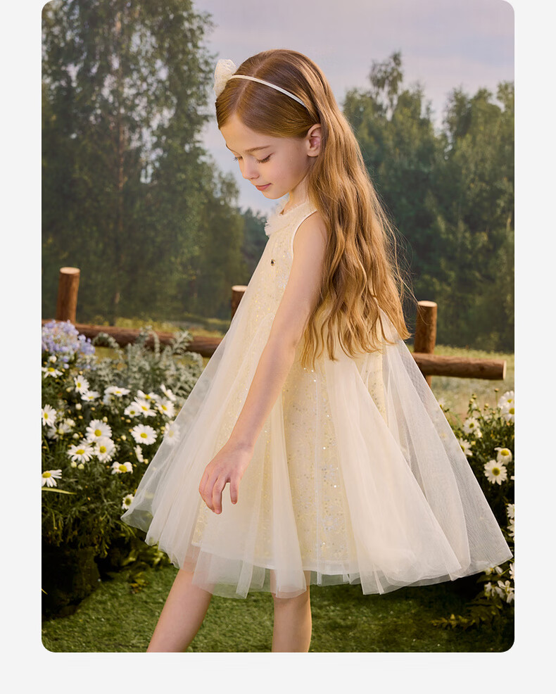PawinPaw Cartoon Bear Children's Clothing 26th Summer New Girls Mesh Dress Yellow/30 120
