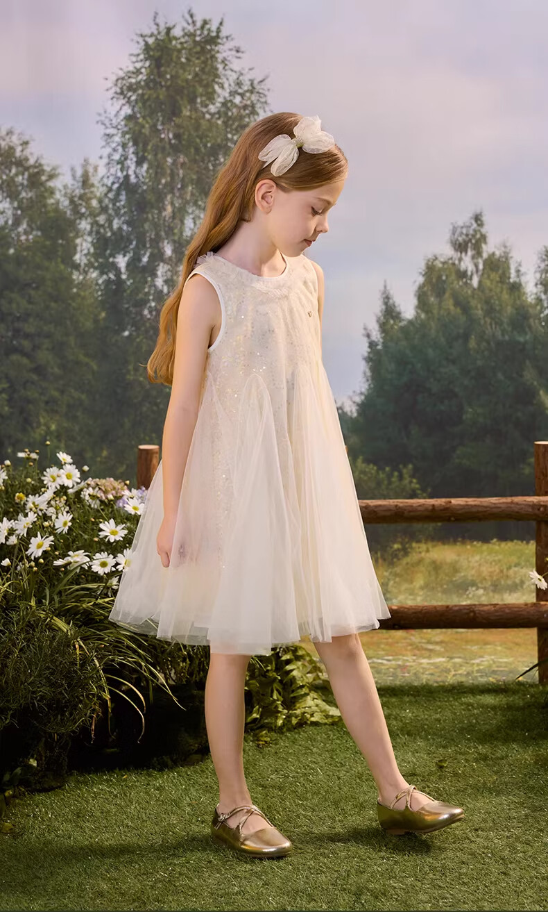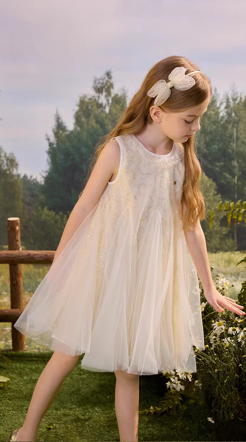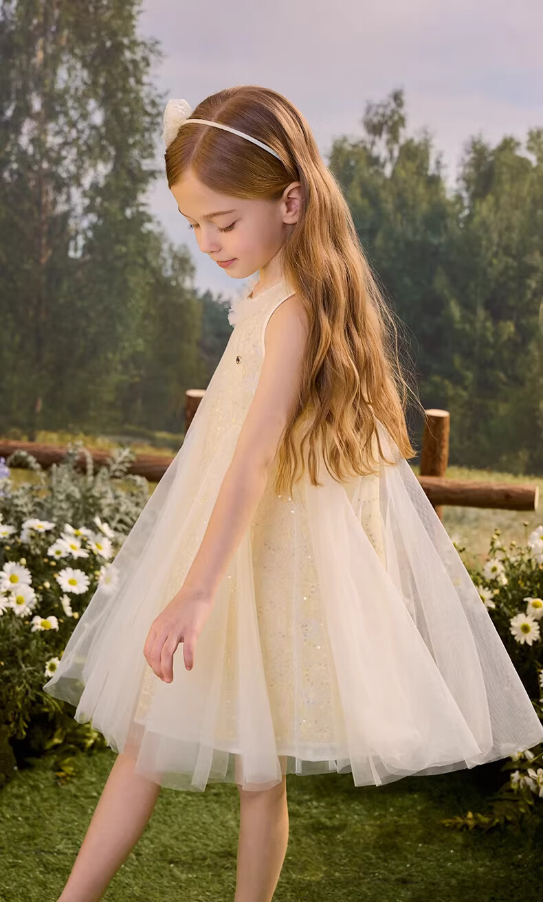 PawinPaw Oso de dibujos animados ropa para niños 26 novedad de verano vestido de malla para niñas Amarillo/30 130