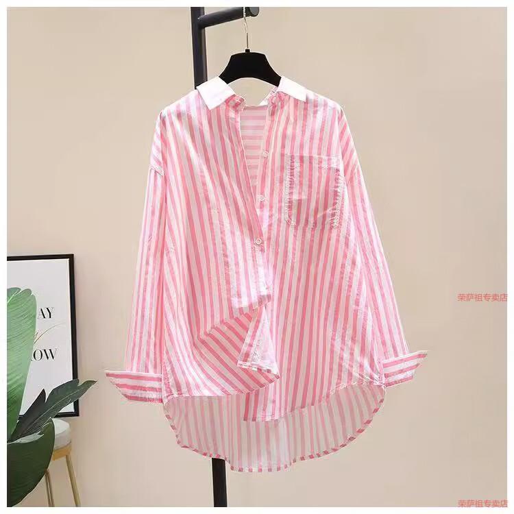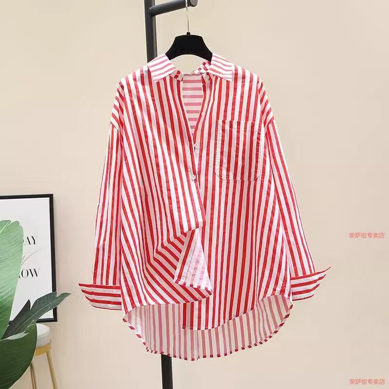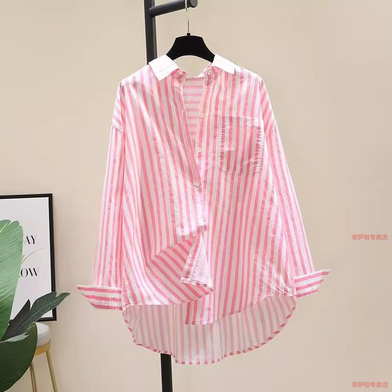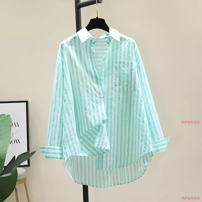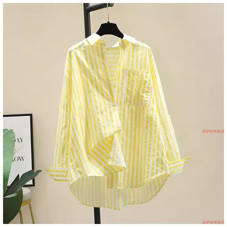Hengyuanxiang printed striped shirt for women 2026 spring and autumn new Korean style fashion loose and versatile long-sleeved cardigan shirt with trendy inner wear yellow S