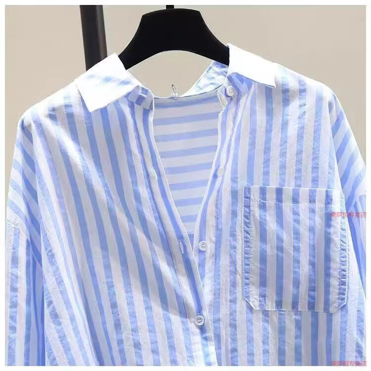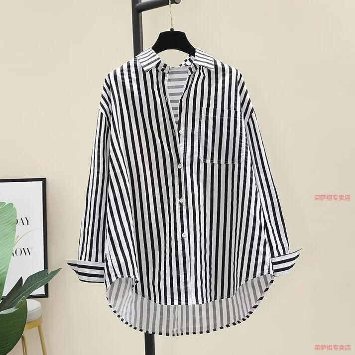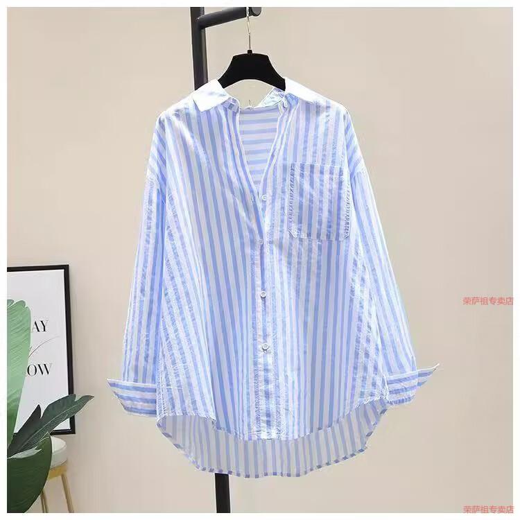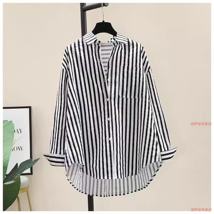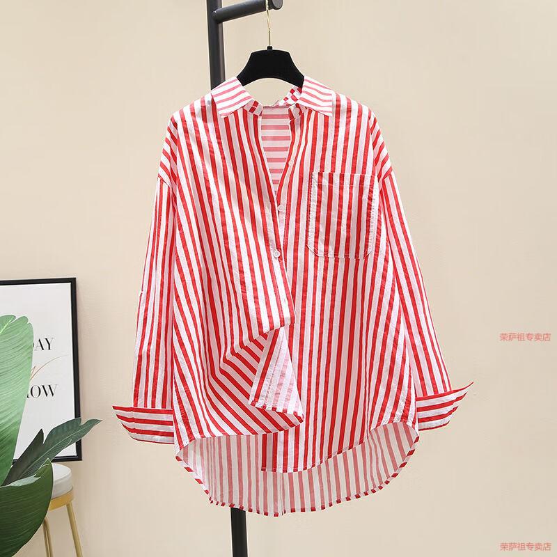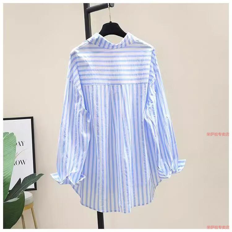 Hengyuanxiang printed striped shirt for women 2026 spring and autumn new Korean style fashion loose and versatile long-sleeved cardigan shirt with trendy inner wear yellow S