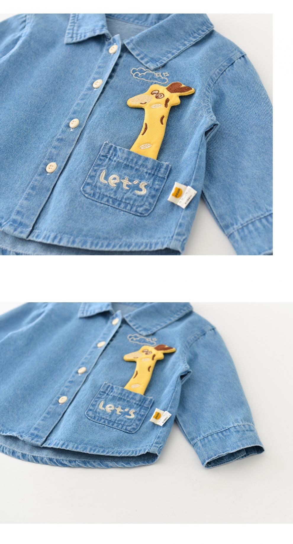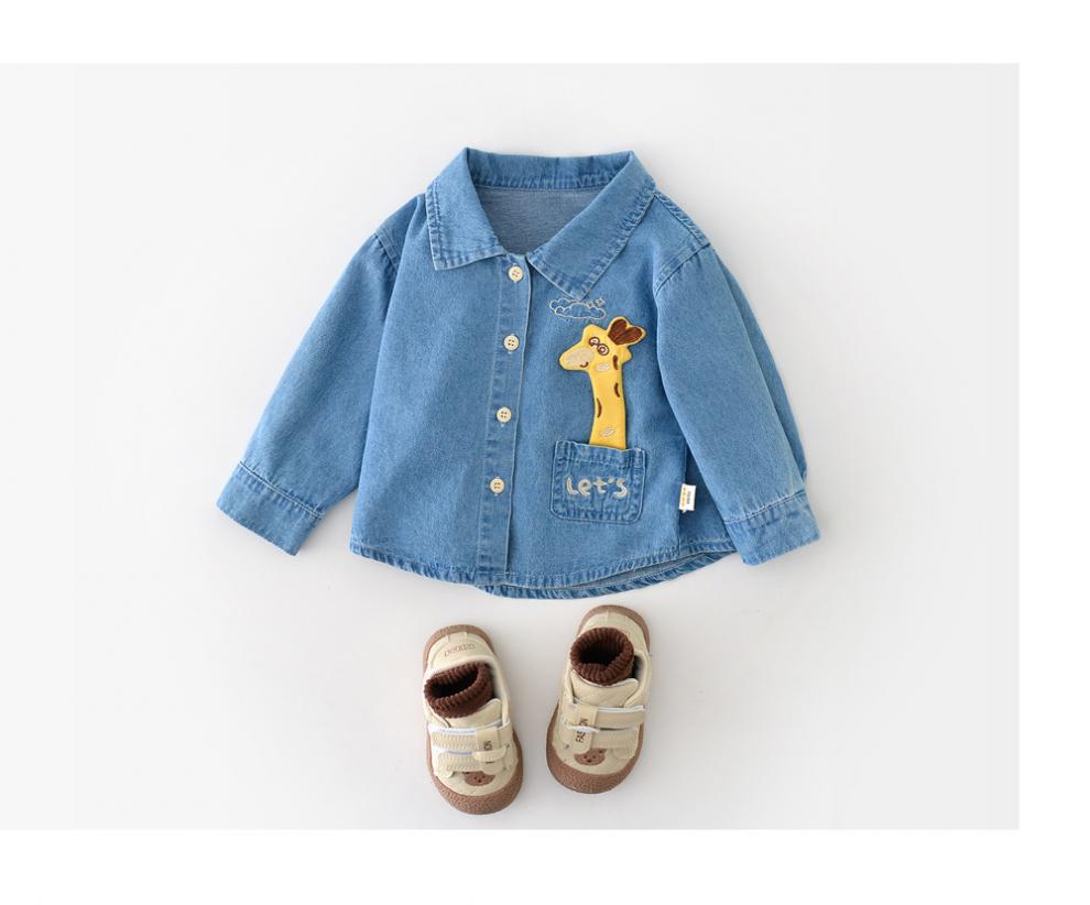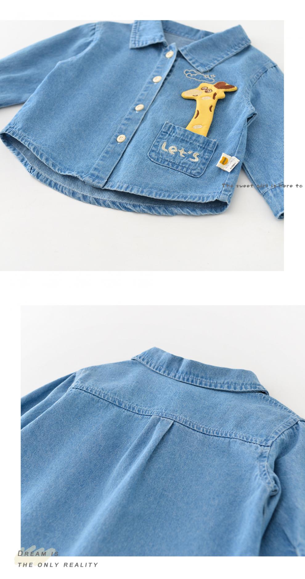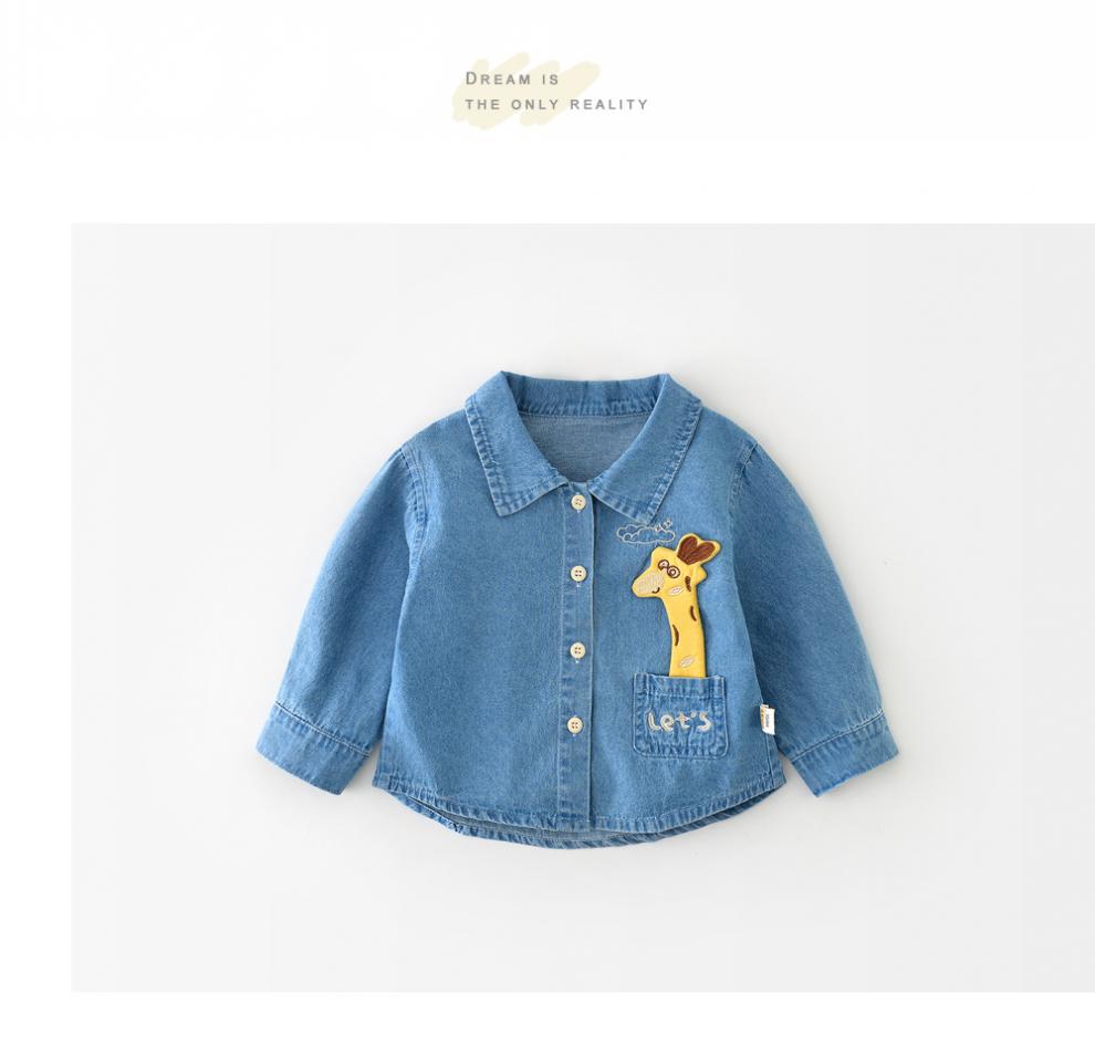 Ultraman 2026 Autumn Children's Denim Shirt Infants and Toddlers Cartoon Giraffe Long-Sleeved Top Denim Giraffe 73 CM