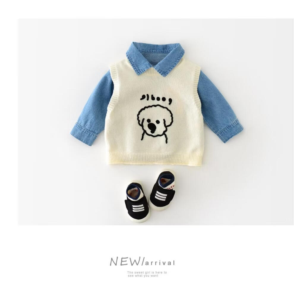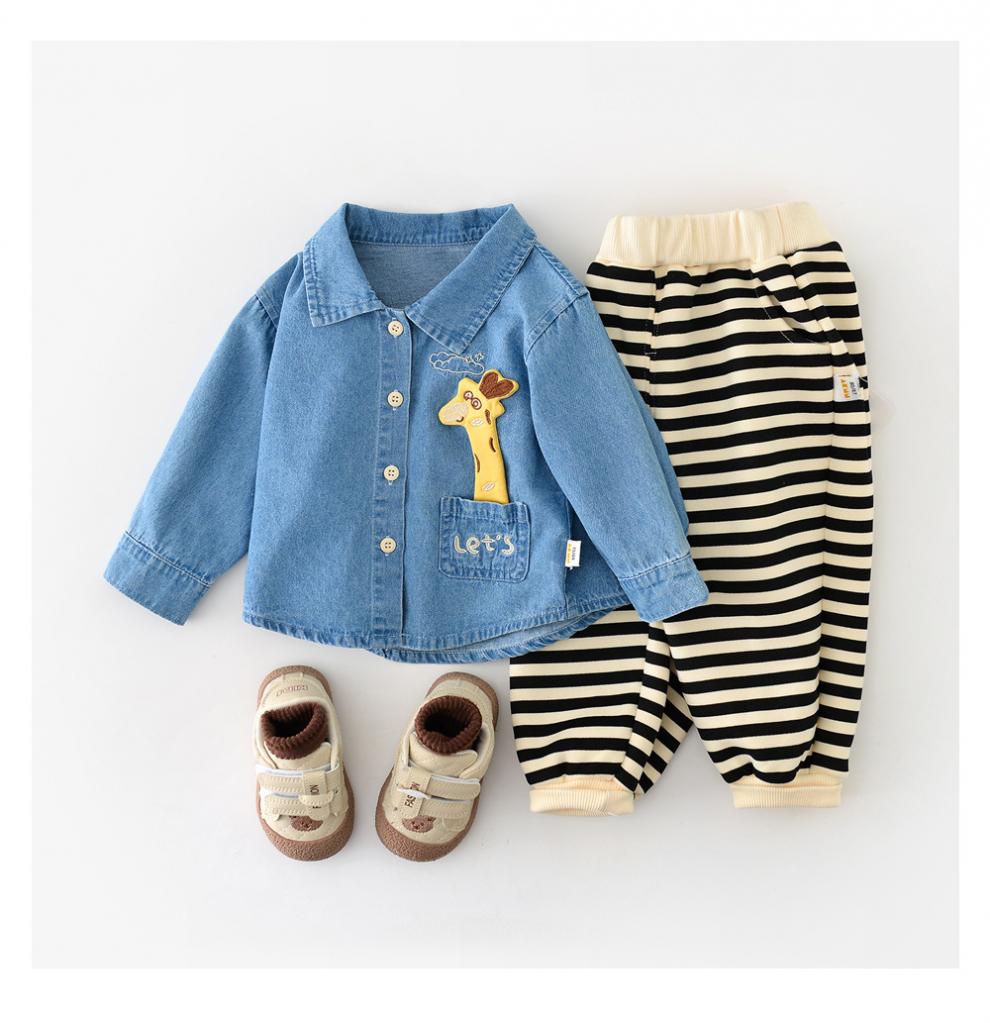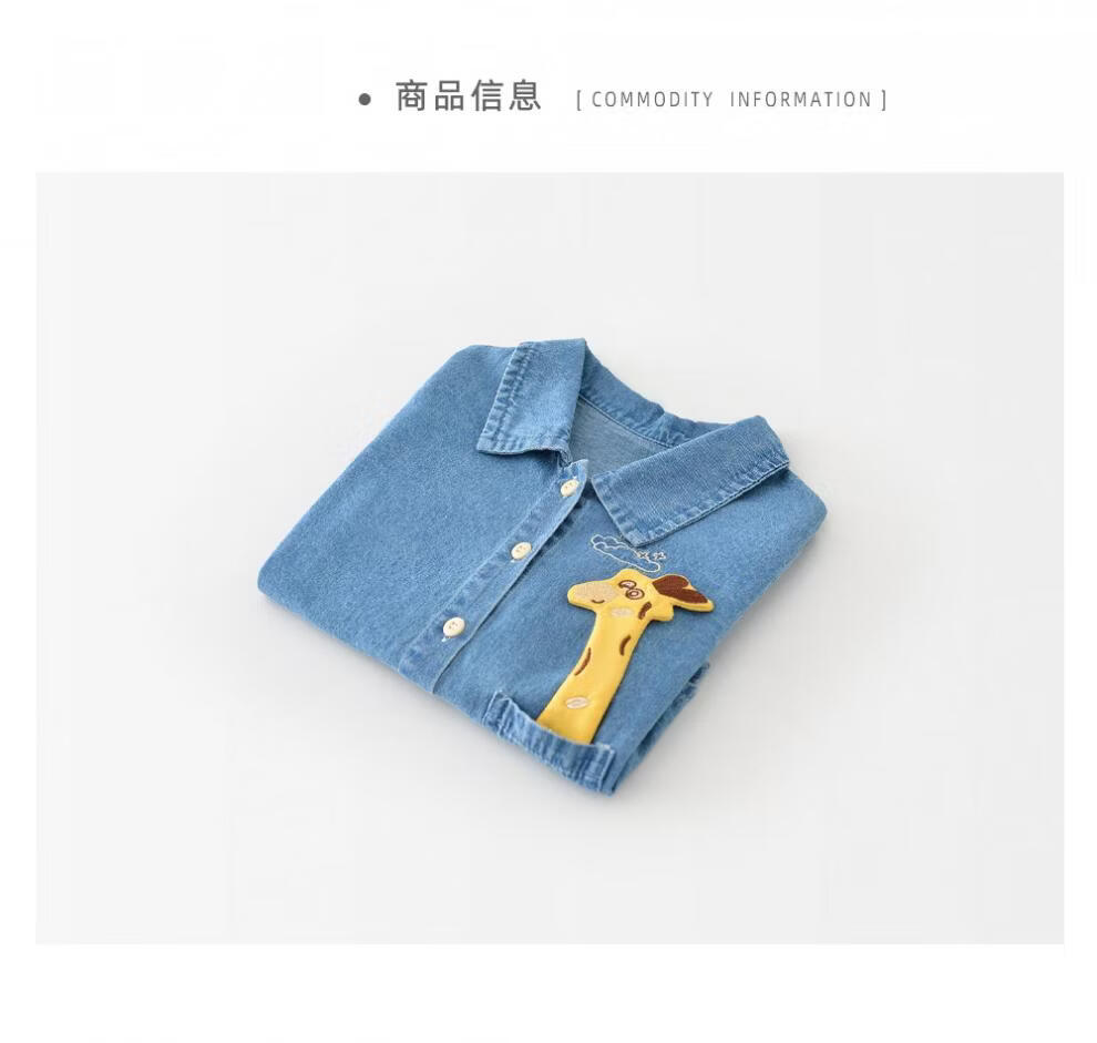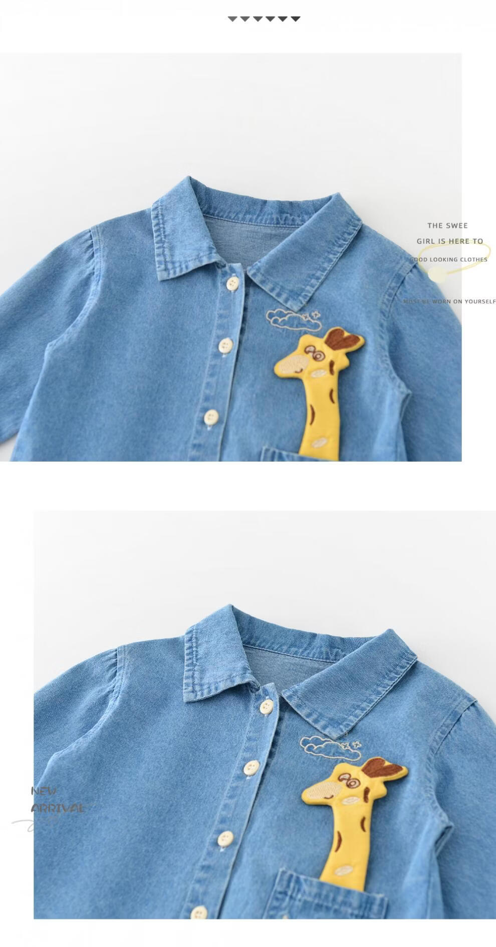 Ultraman 2026 Autumn Children's Denim Shirt Infants and Toddlers Cartoon Giraffe Long-Sleeved Top Denim Giraffe 73 CM