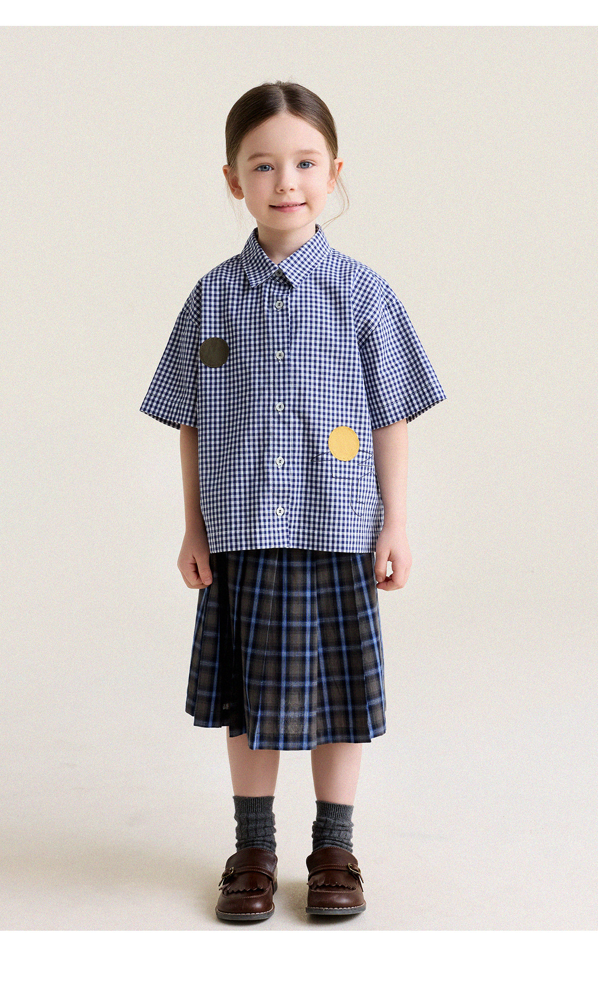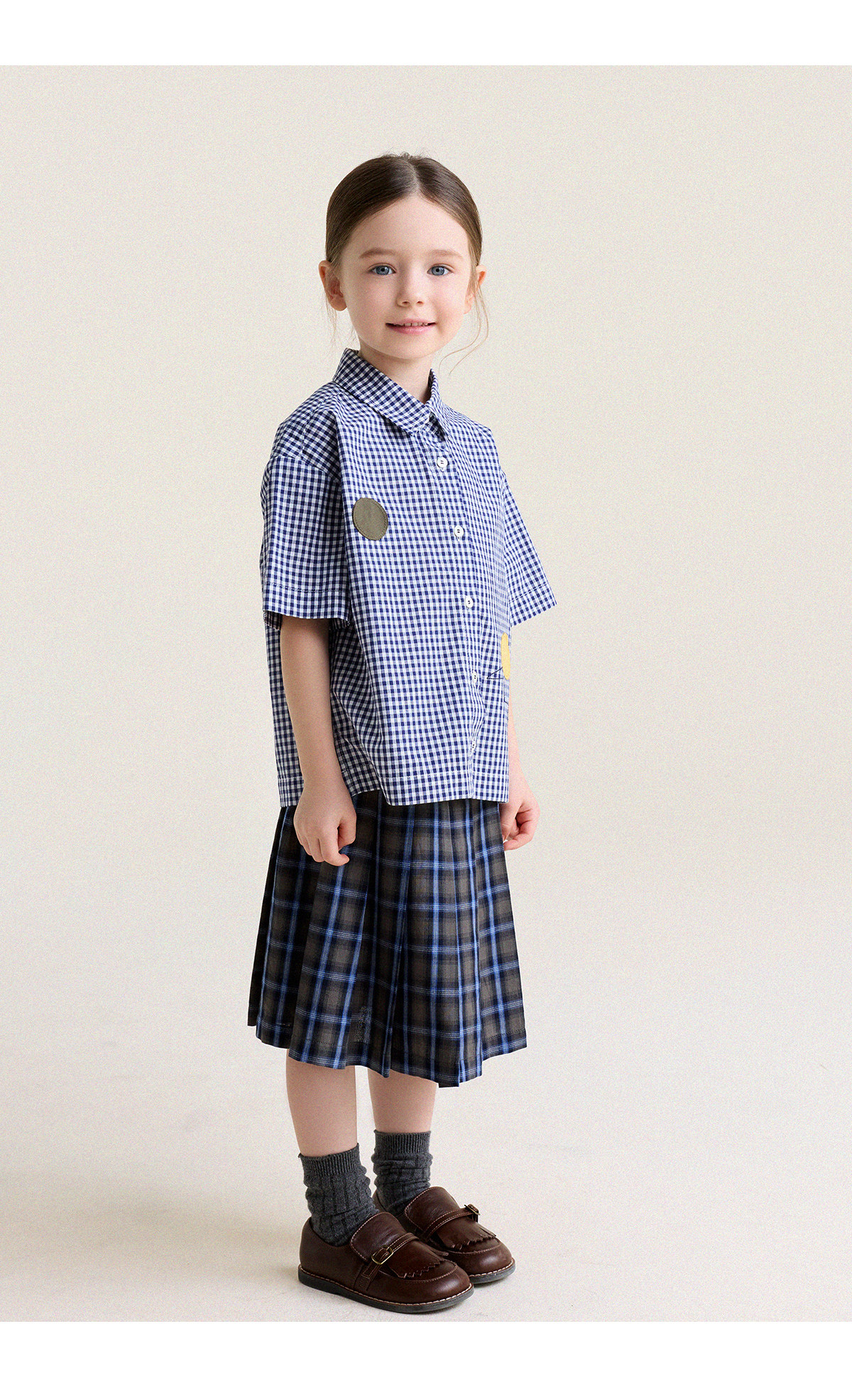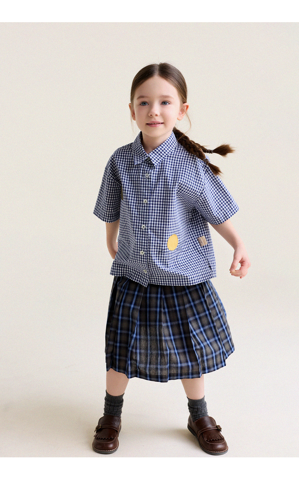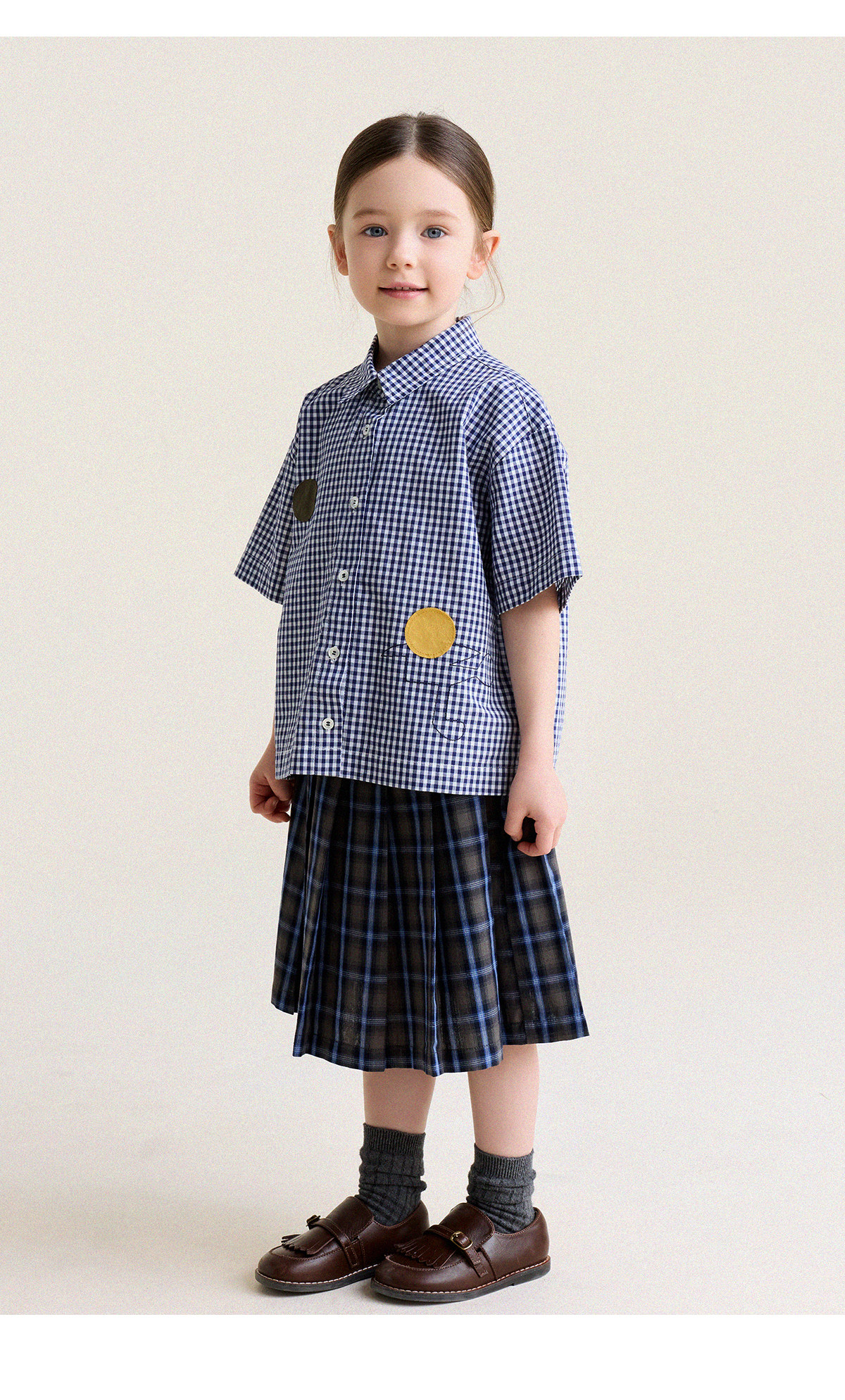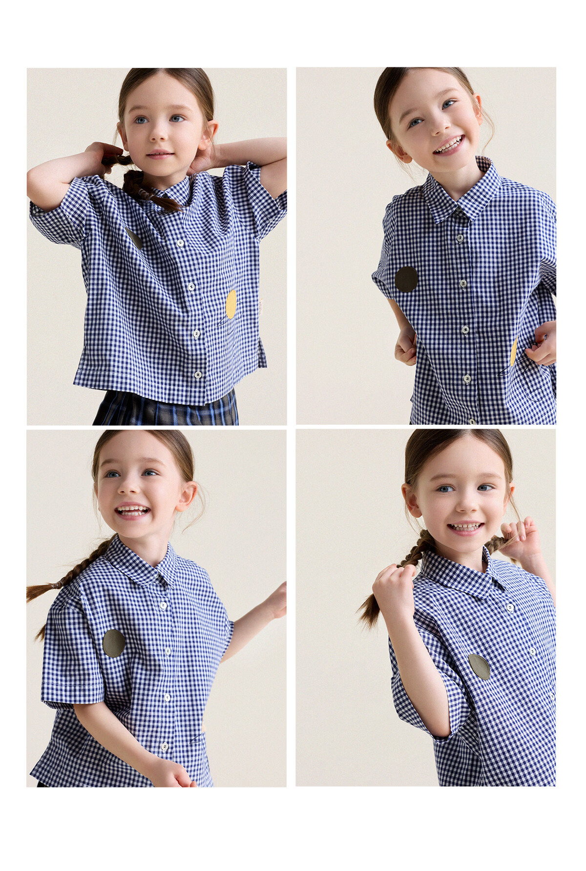Yoona's Mom Girls 2026 Spring New Korean Plaid Short-Sleeved Children's Fashion Shirt Baby Shirt Top Trendy Blue and White Checkered Ready Stock 140