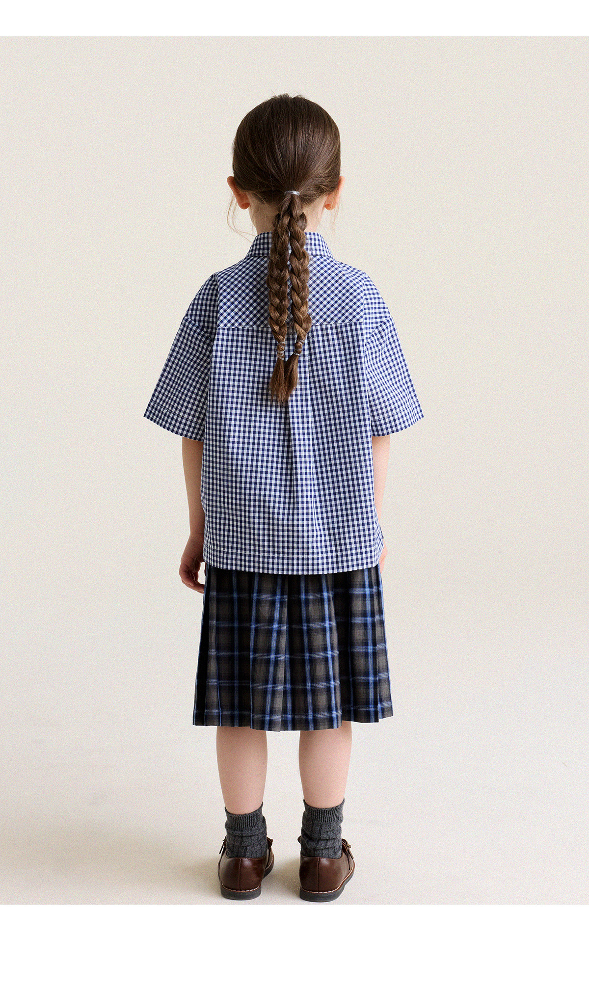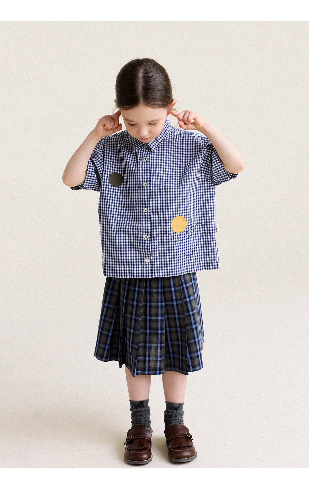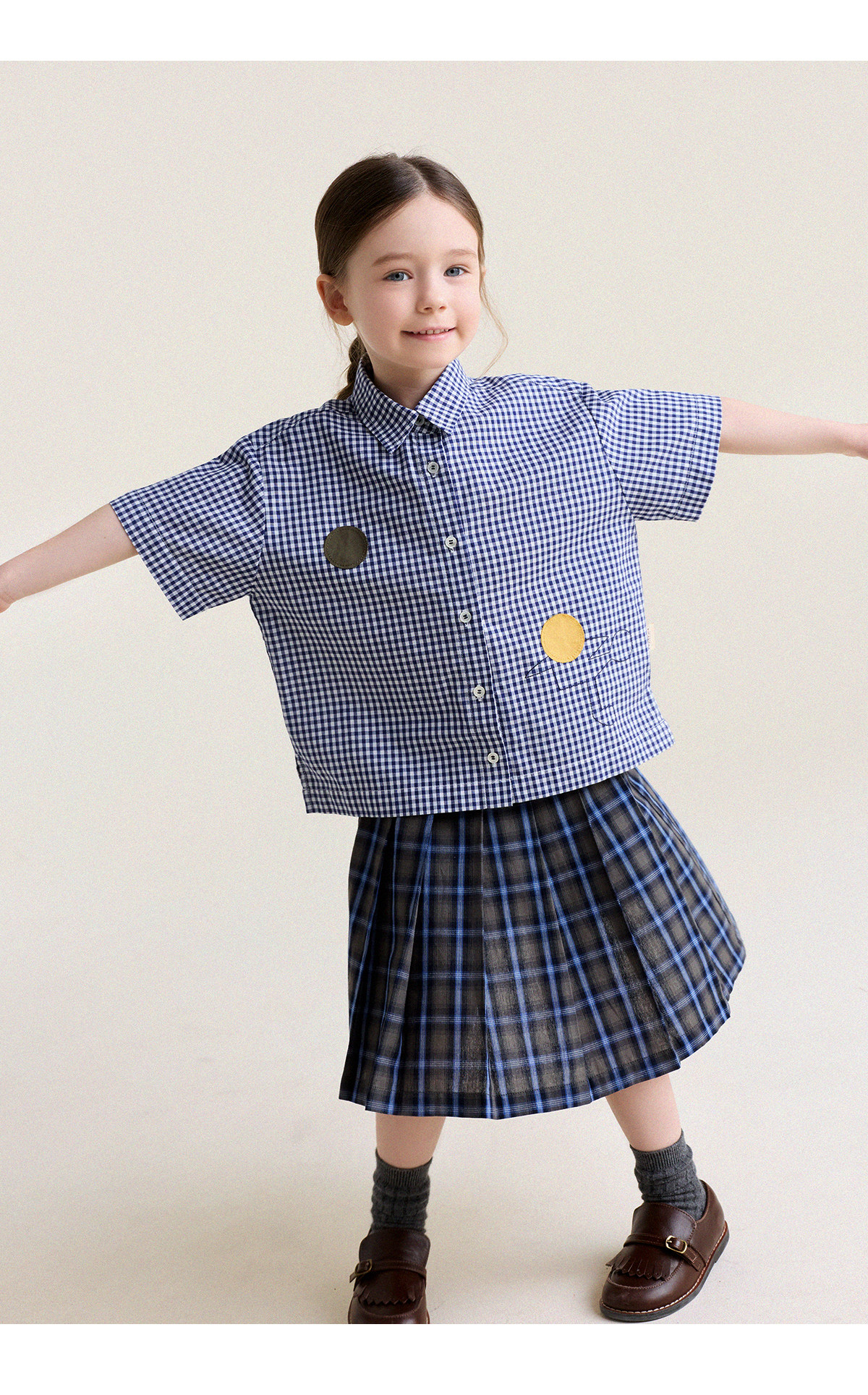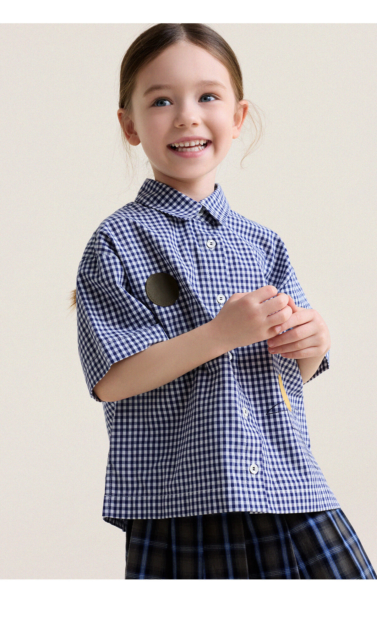 Yoona's Mom Girls 2026 Spring New Korean Plaid Short-Sleeved Children's Fashion Shirt Baby Shirt Top Trendy Blue and White Checkered Ready Stock 140
