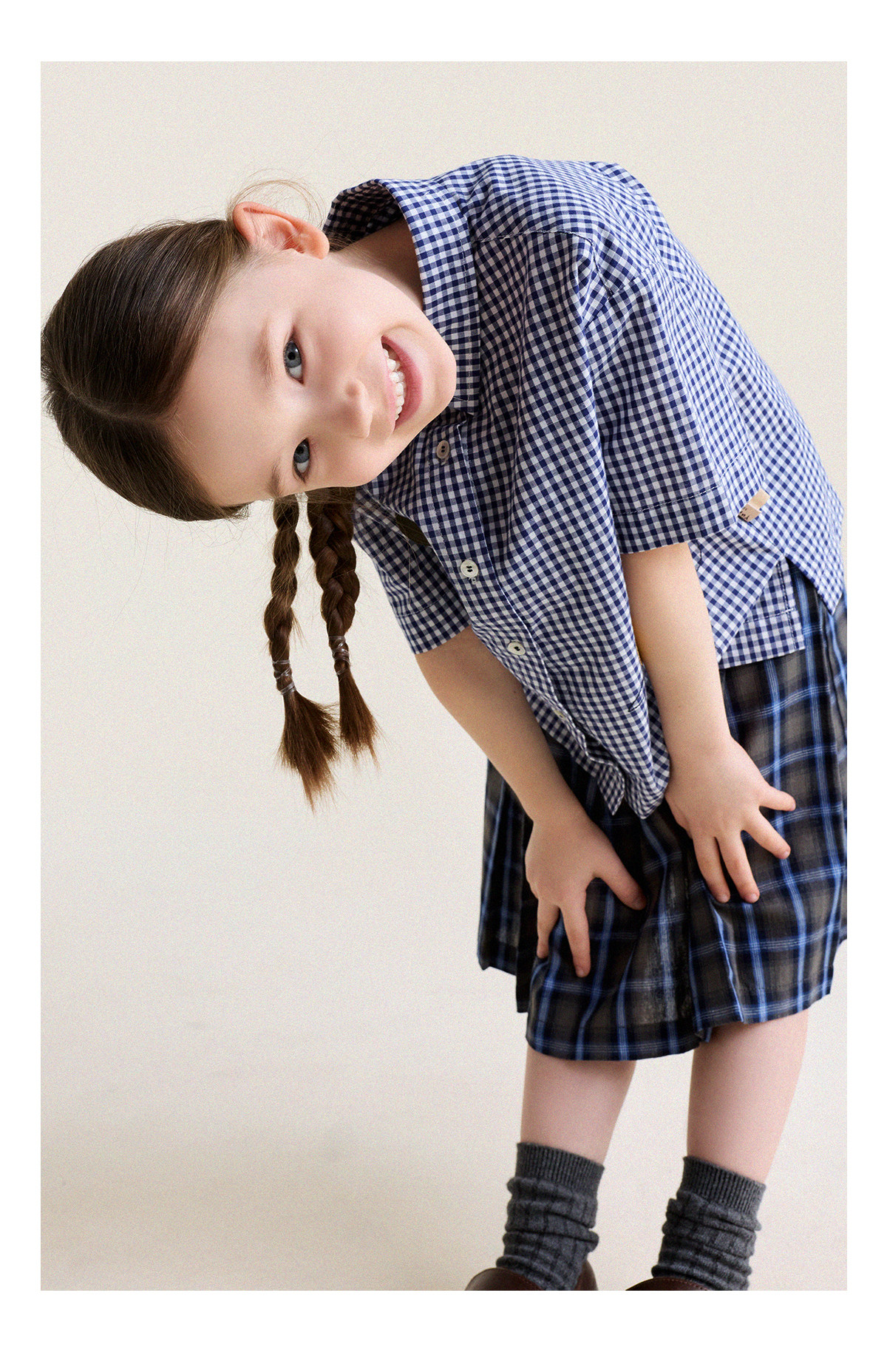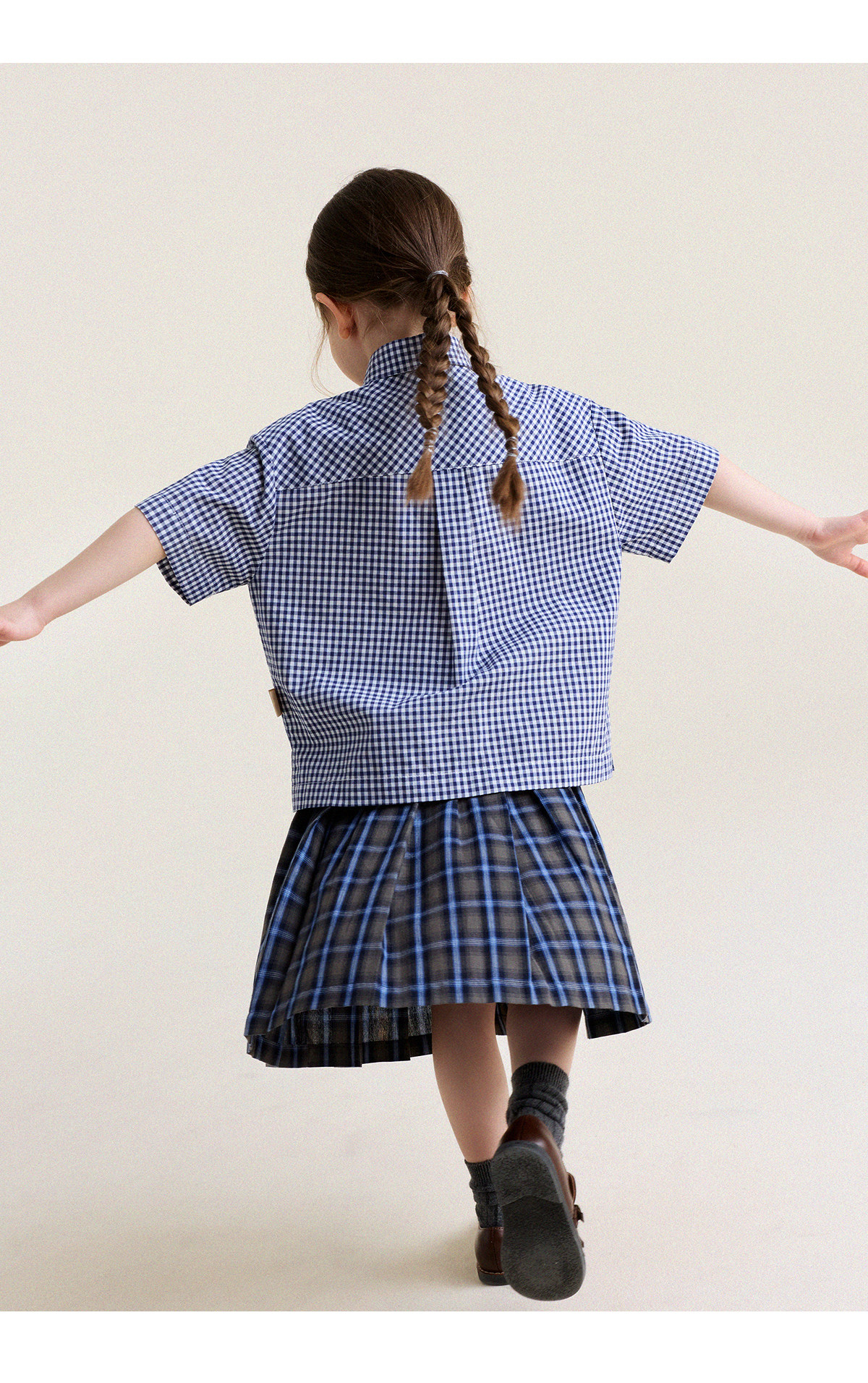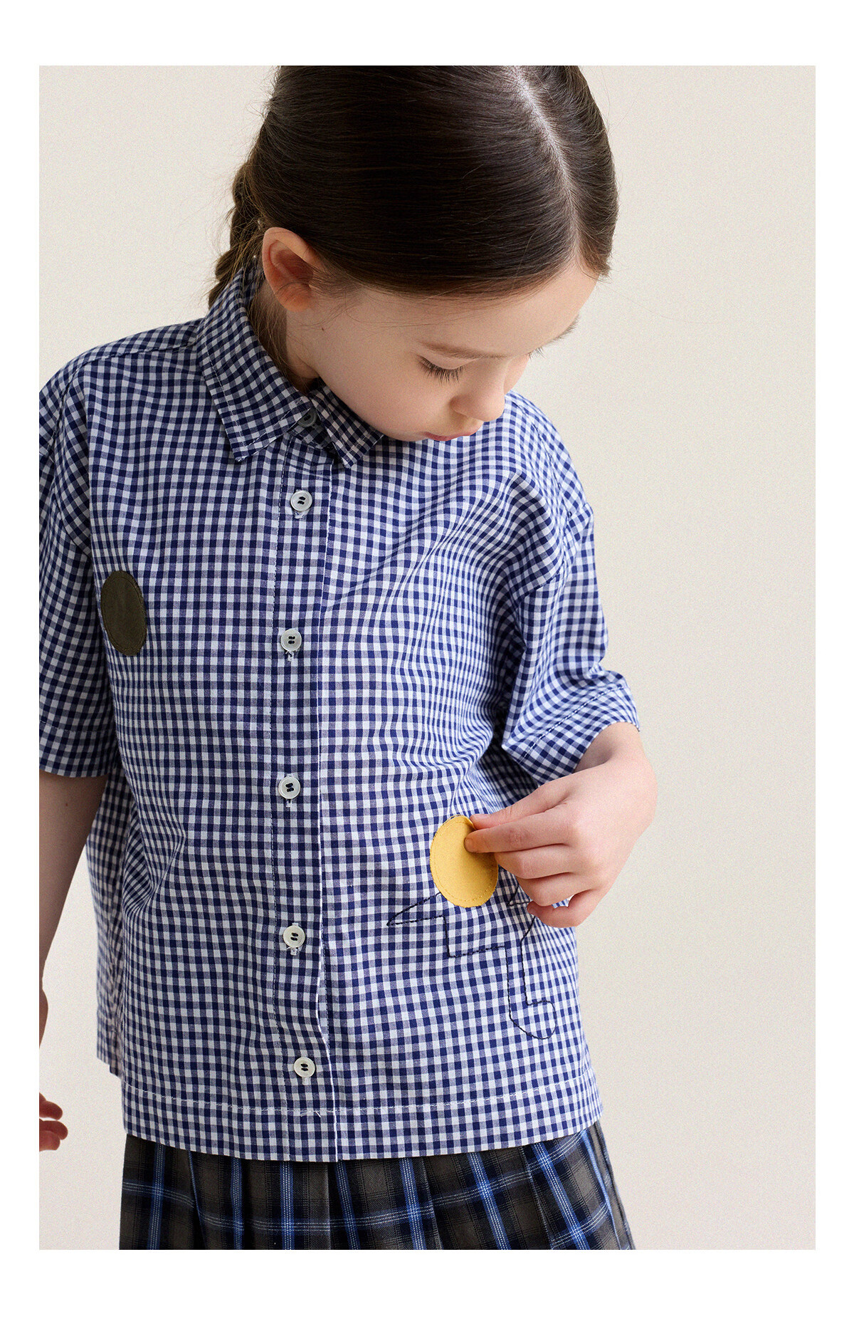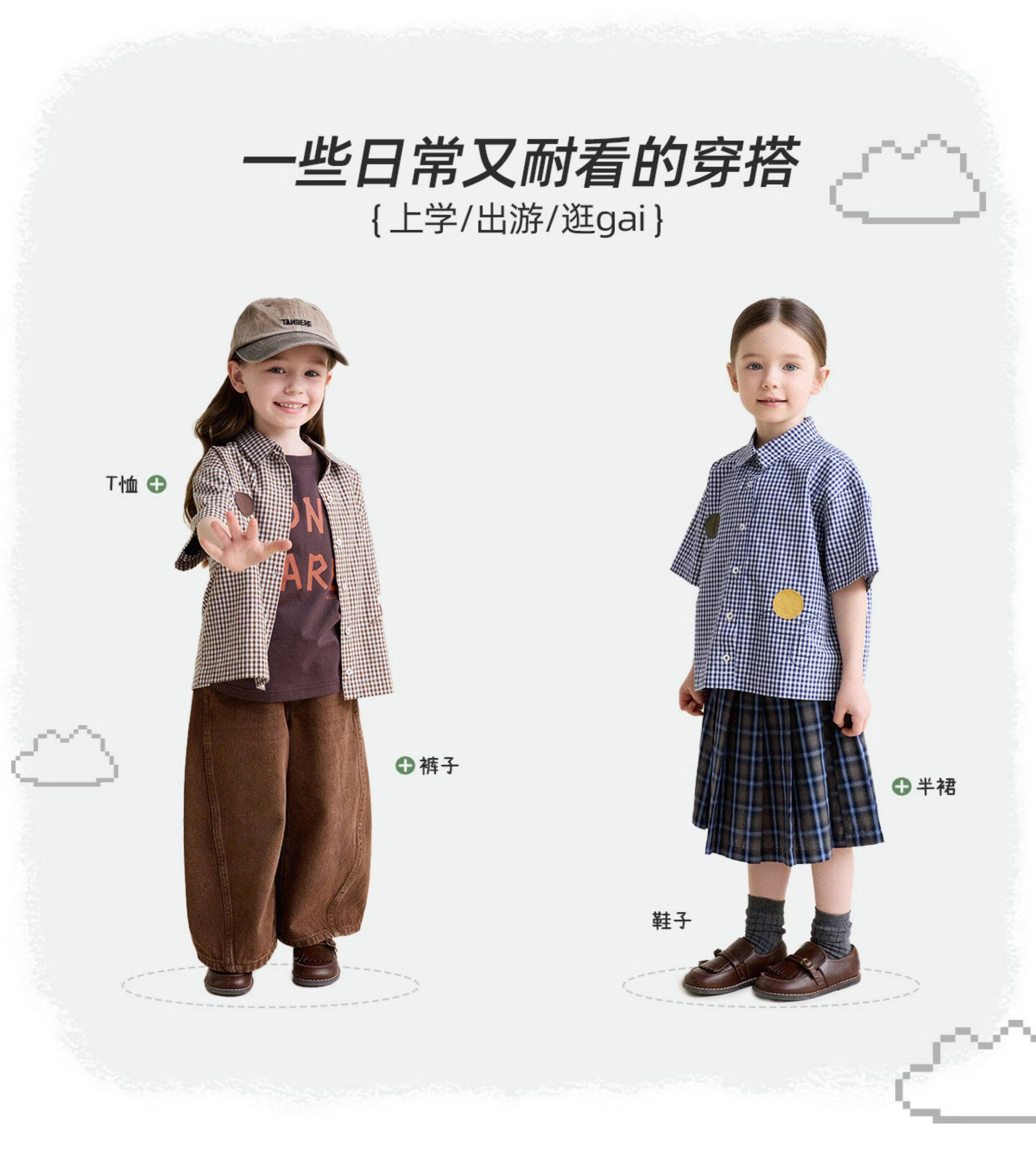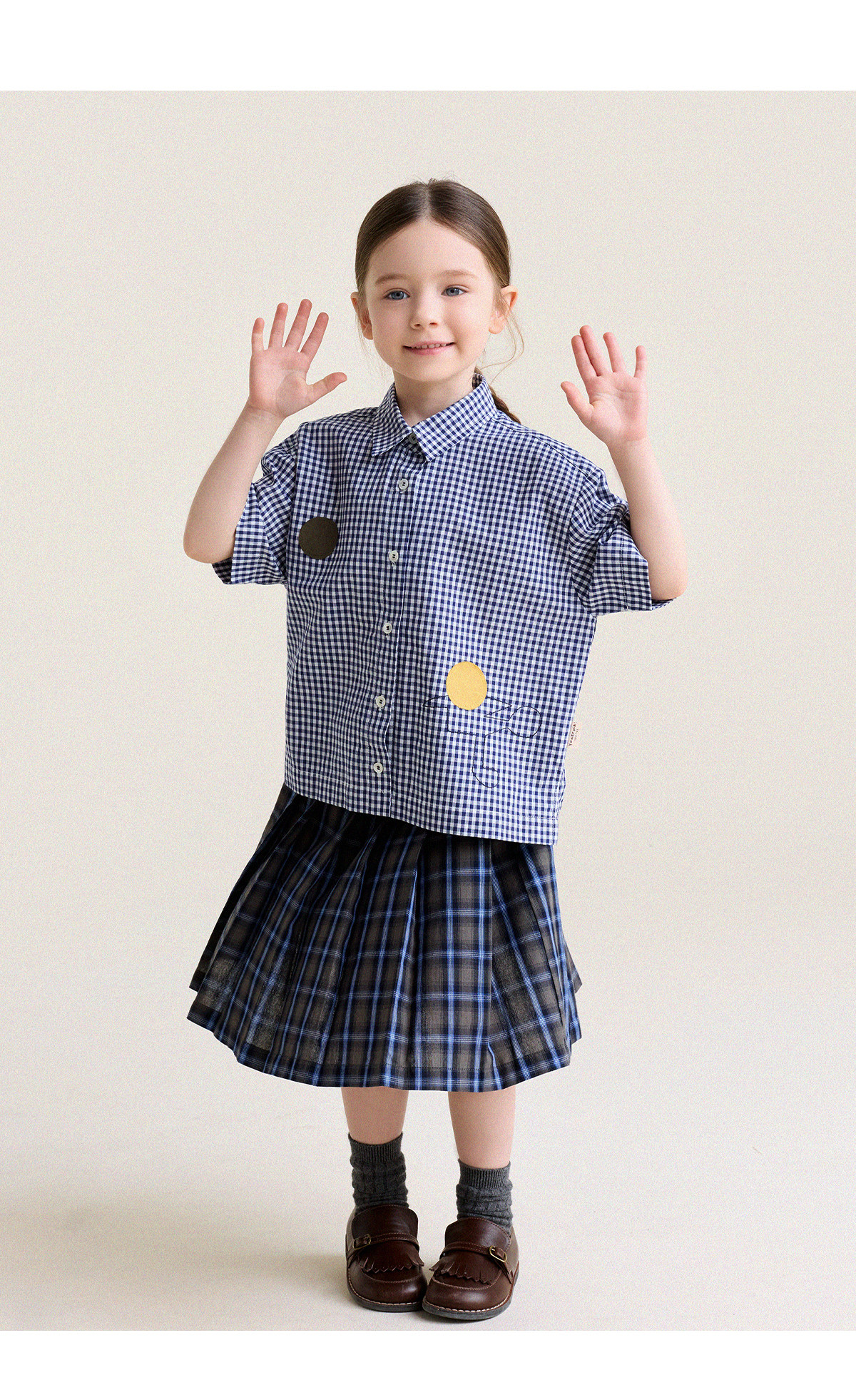 Yoona's Mom Girls 2026 Spring New Korean Plaid Short-Sleeved Children's Fashion Shirt Baby Shirt Top Trendy Blue and White Checkered Ready Stock 140