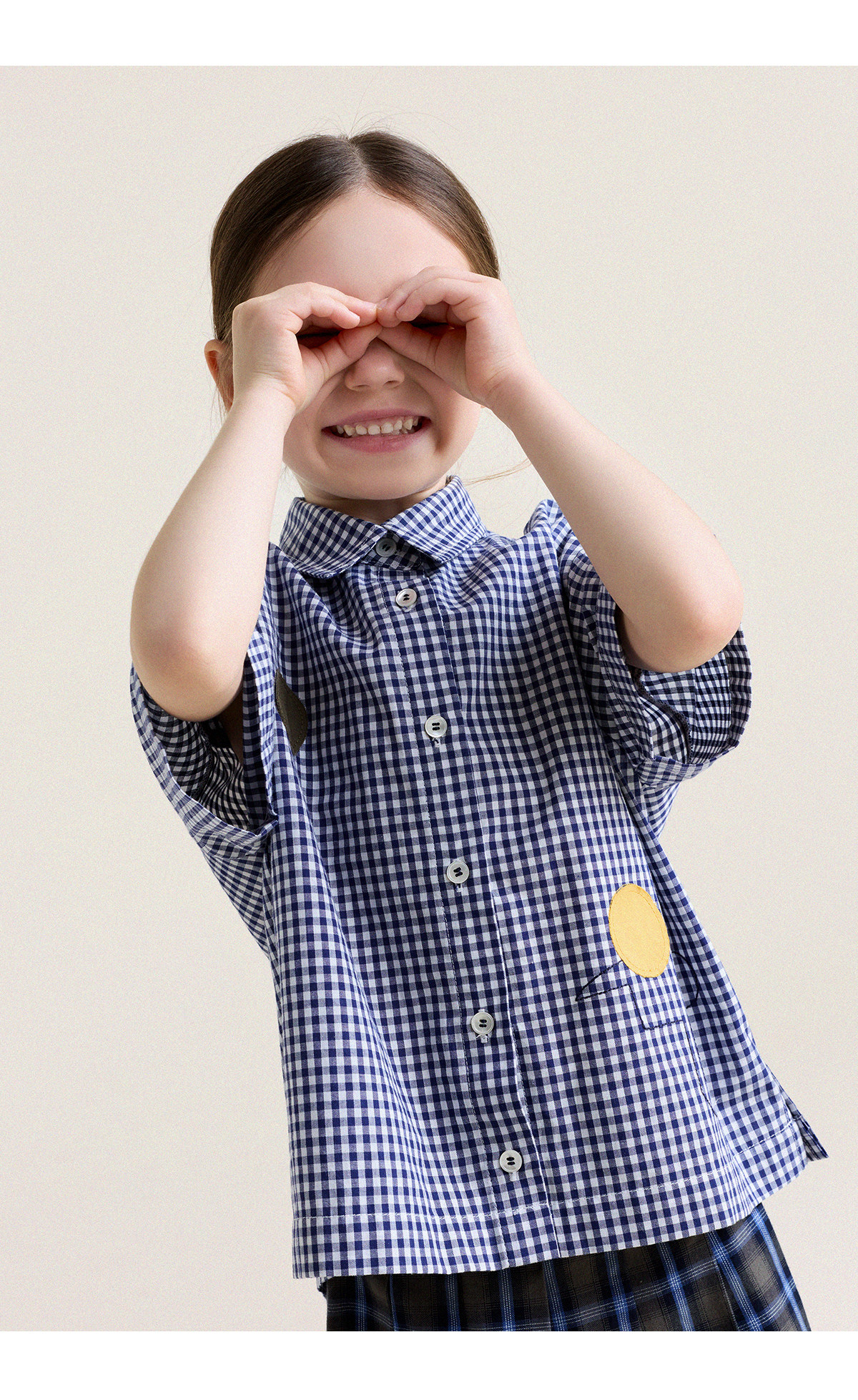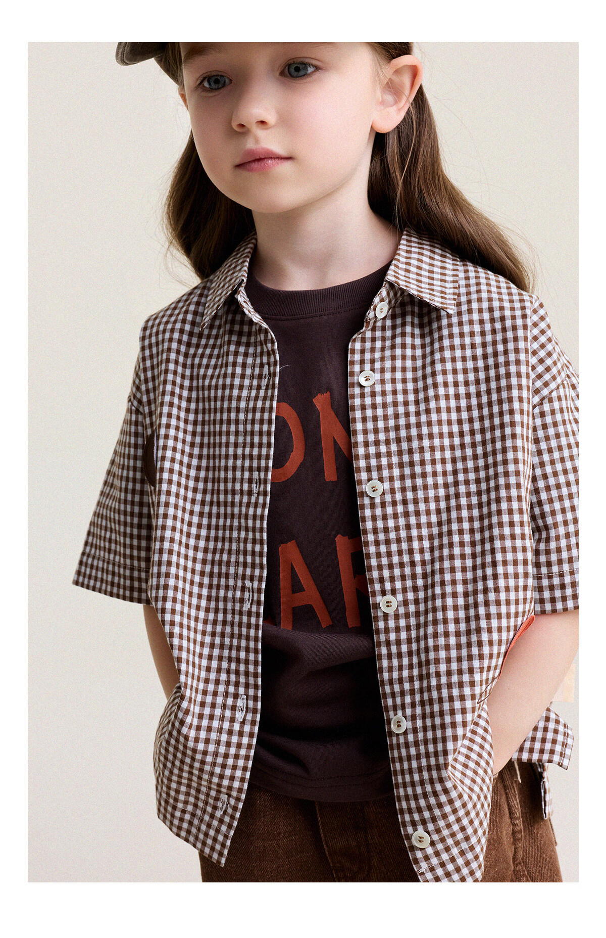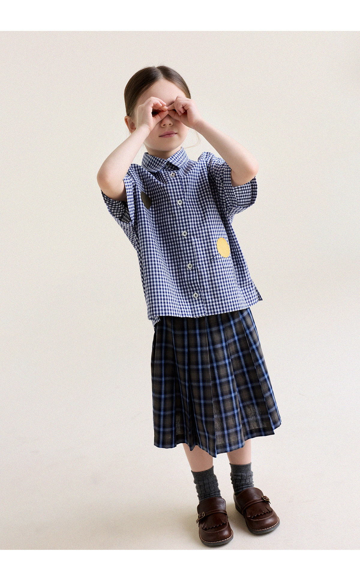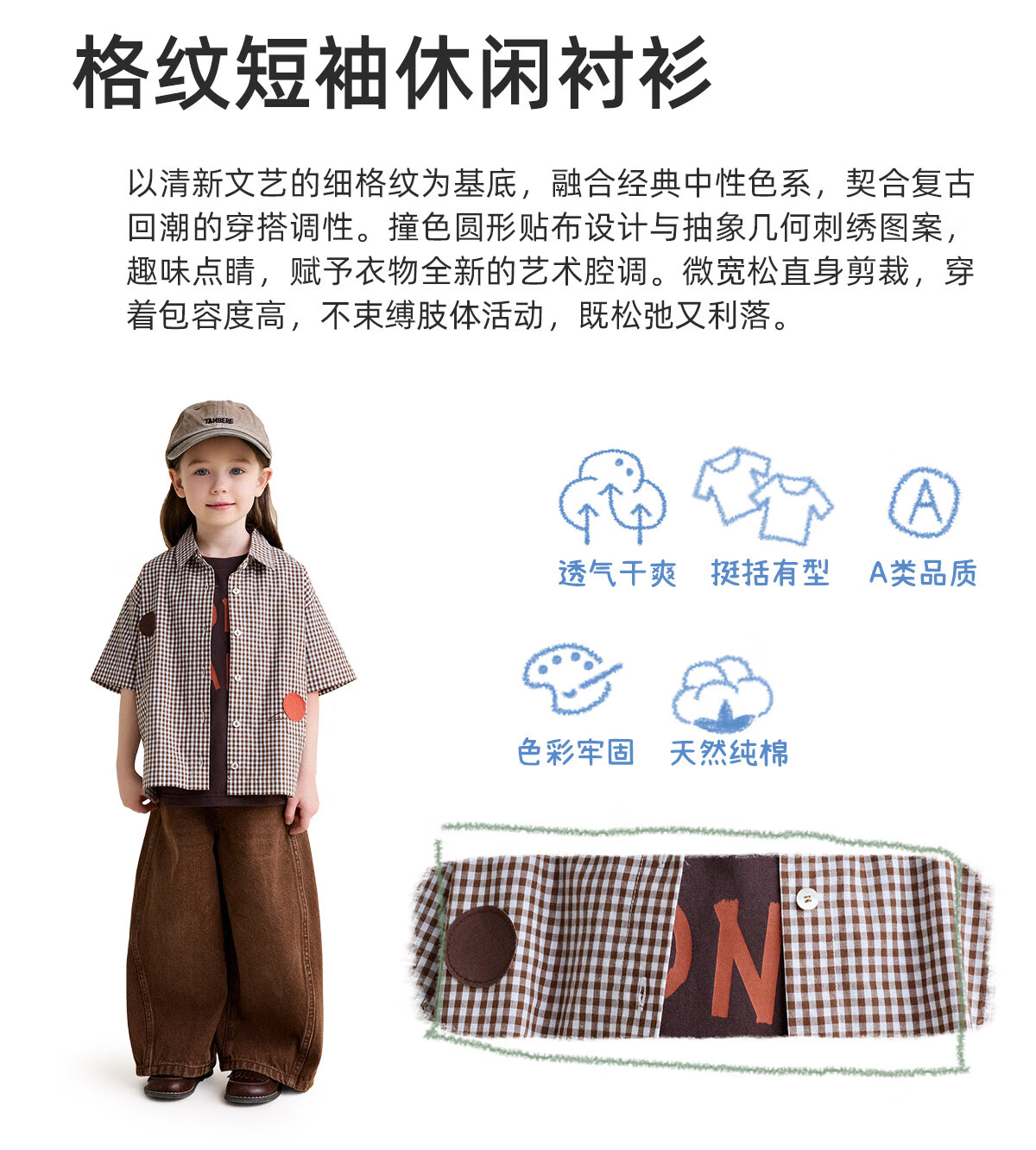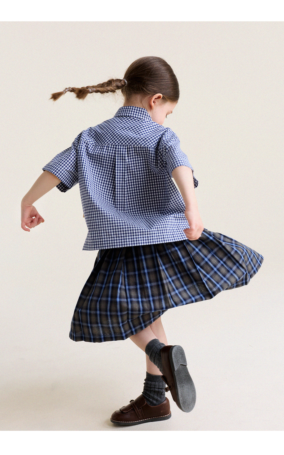 Yoona's Mom Girls 2026 Spring New Korean Plaid Short-Sleeved Children's Fashion Shirt Baby Shirt Top Trendy Blue and White Checkered Ready Stock 140