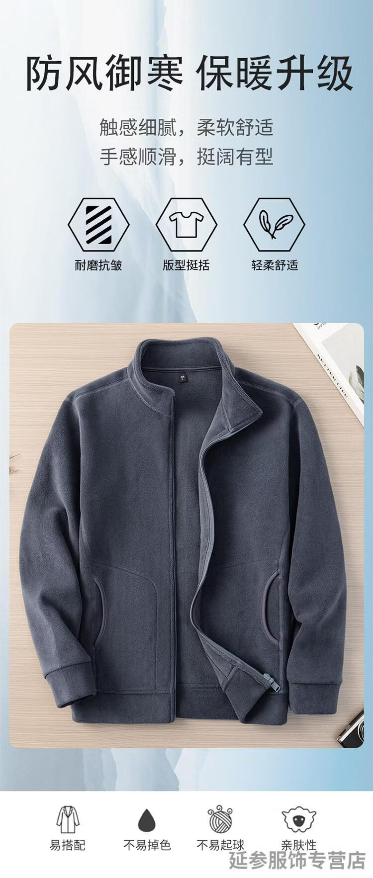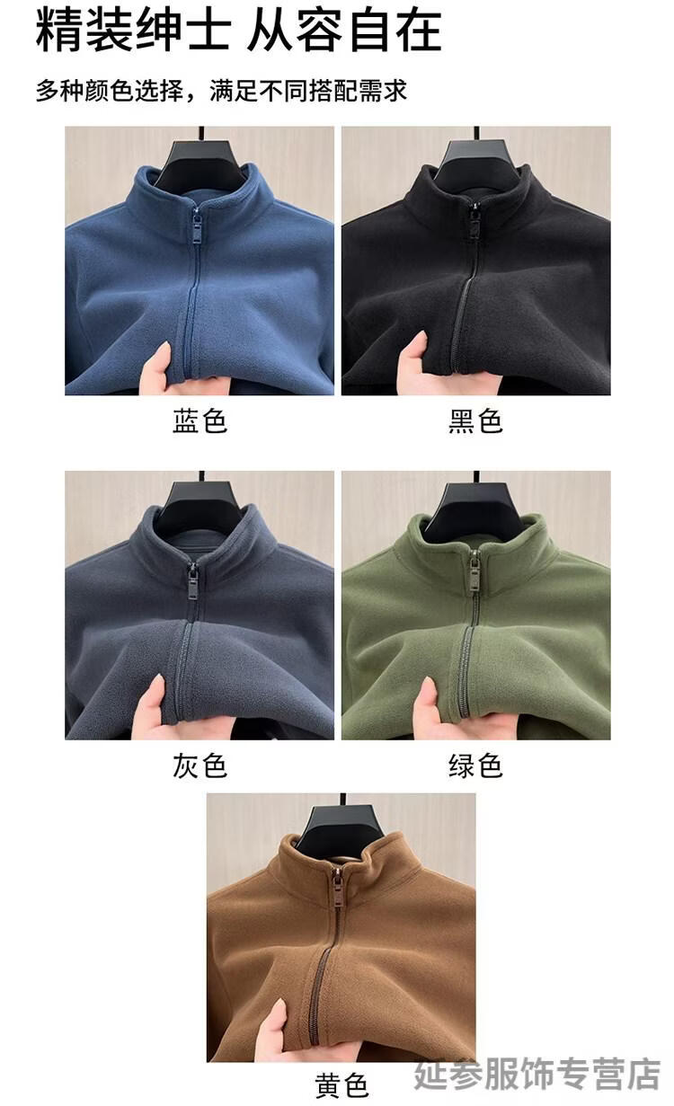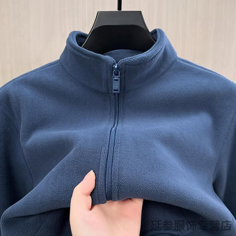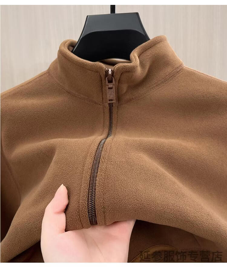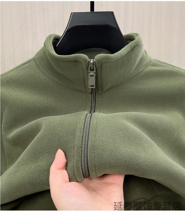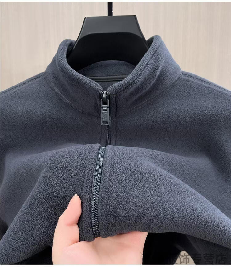K-Boxing Men's Polar Fleece Men's Sweater Zippered Half Turtle Collar Autumn and Winter Fleece Cardigan Men's Warm Jacket Plus Velvet Thickened Top Gray M