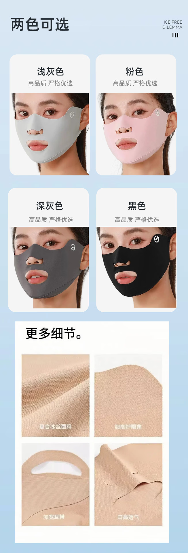 Shoot 1 and 2. Sun protection mask, running golf, ice silk ear-hanging mask with exposed mouth and nose, breathable eye protection zh. Shoot 1 and 2, ice-feel breathable sun protection mask - dark gray + pink