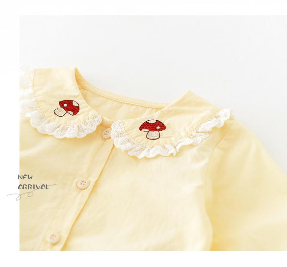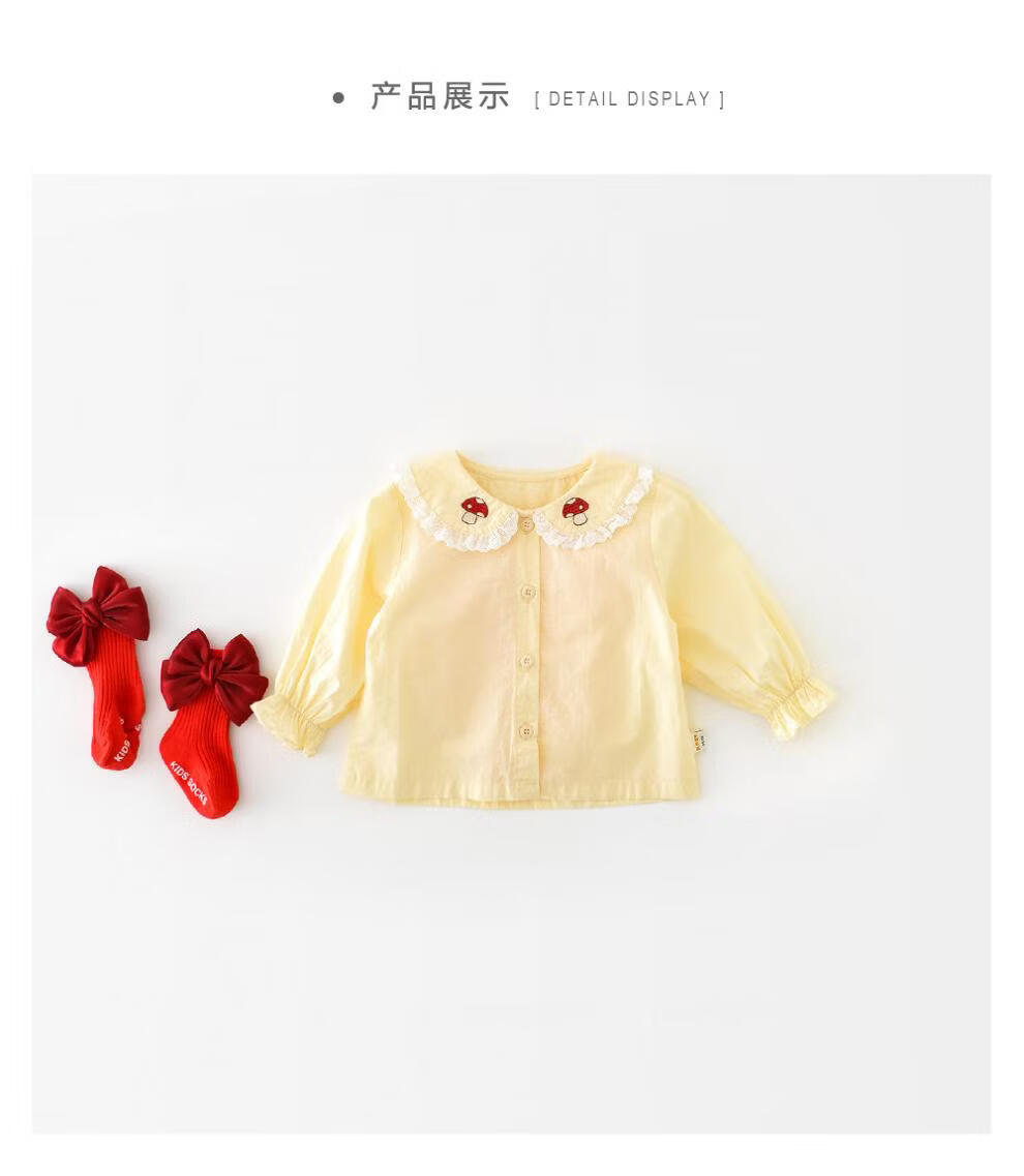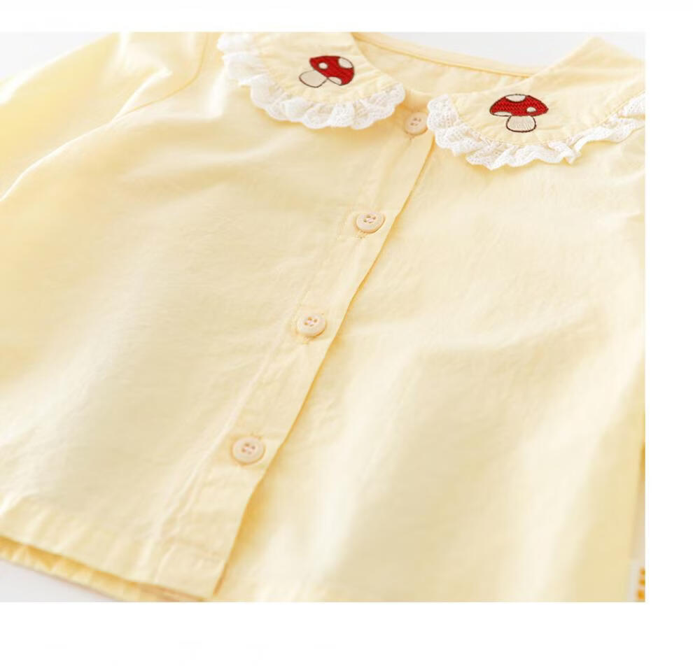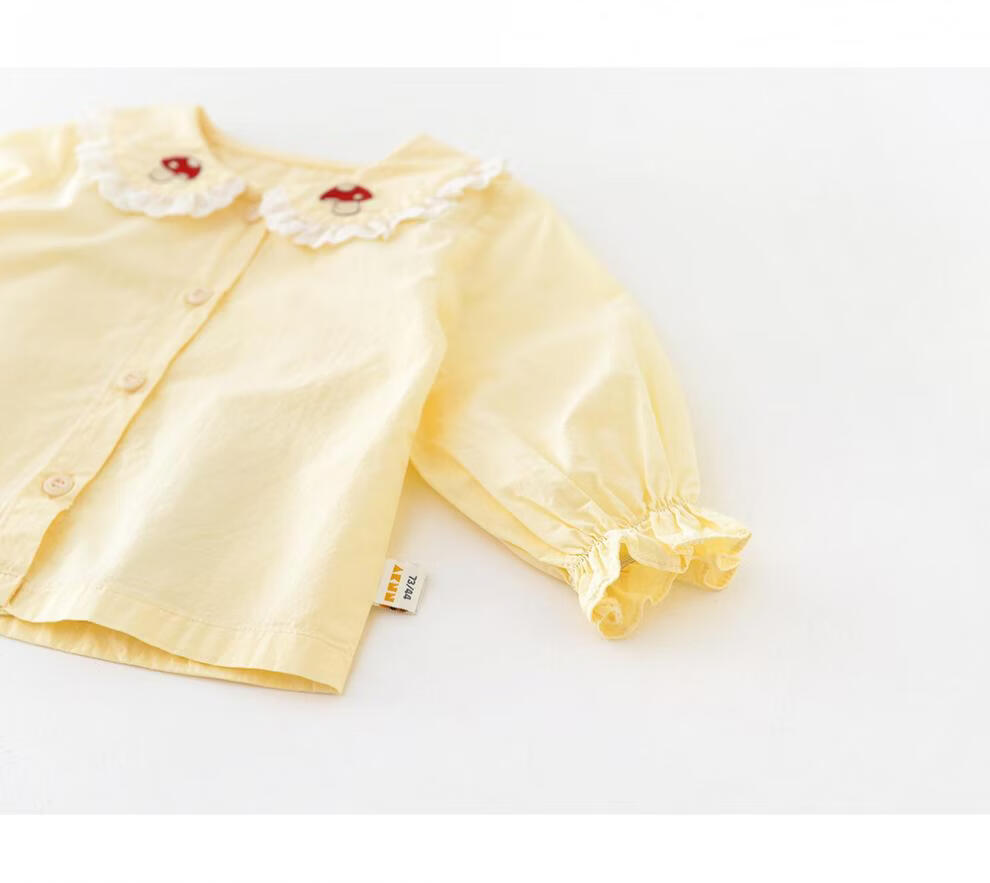Ultraman Baby Girl Autumn Doll Collar Shirt 2026 New Infant Style Mushroom Embroidery Children's Long Sleeve Beige 73 CM