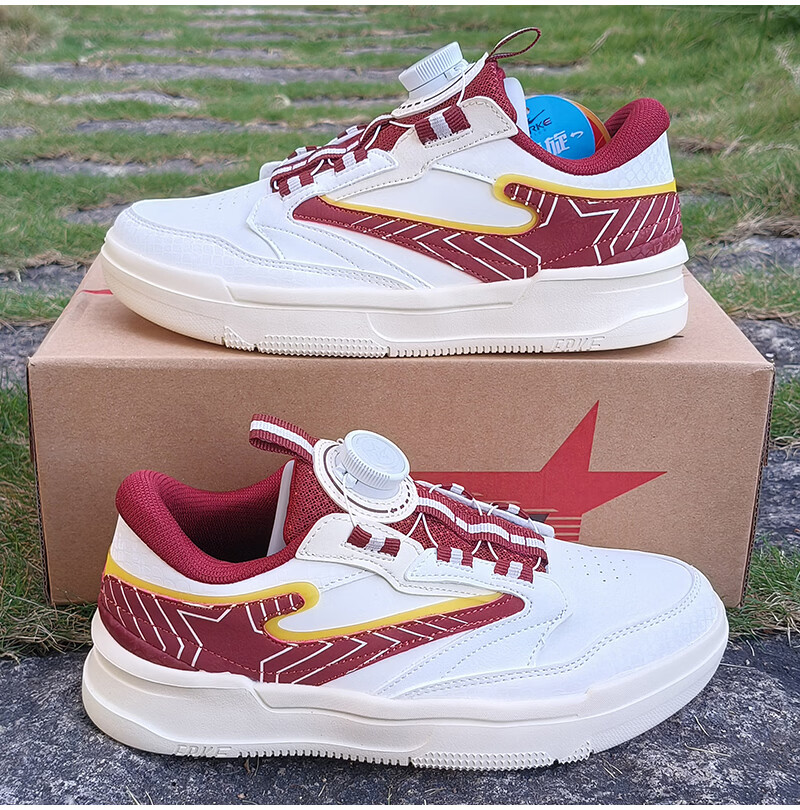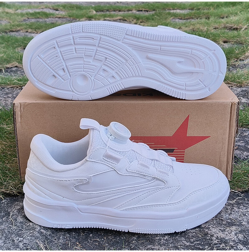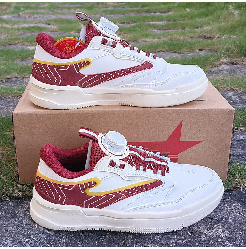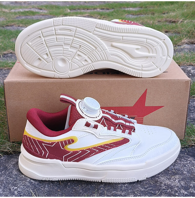 Hongxing Erke (ERKE) children's shoes, sneakers for boys and middle-aged children, non-slip, wear-resistant, lightweight and breathable sports shoes, spring new white shoes, casual travel shoes, microcrystalline white/Bordeaux red 33
