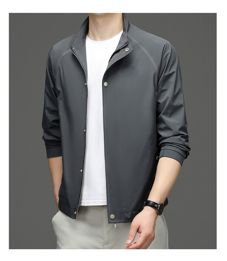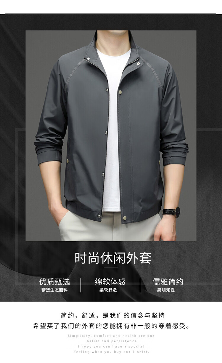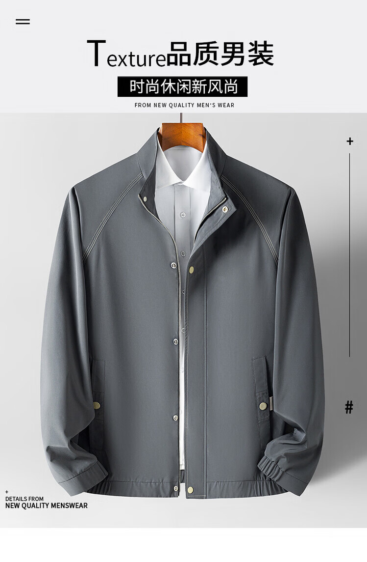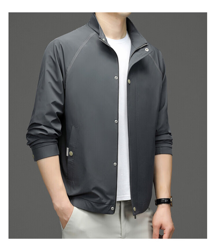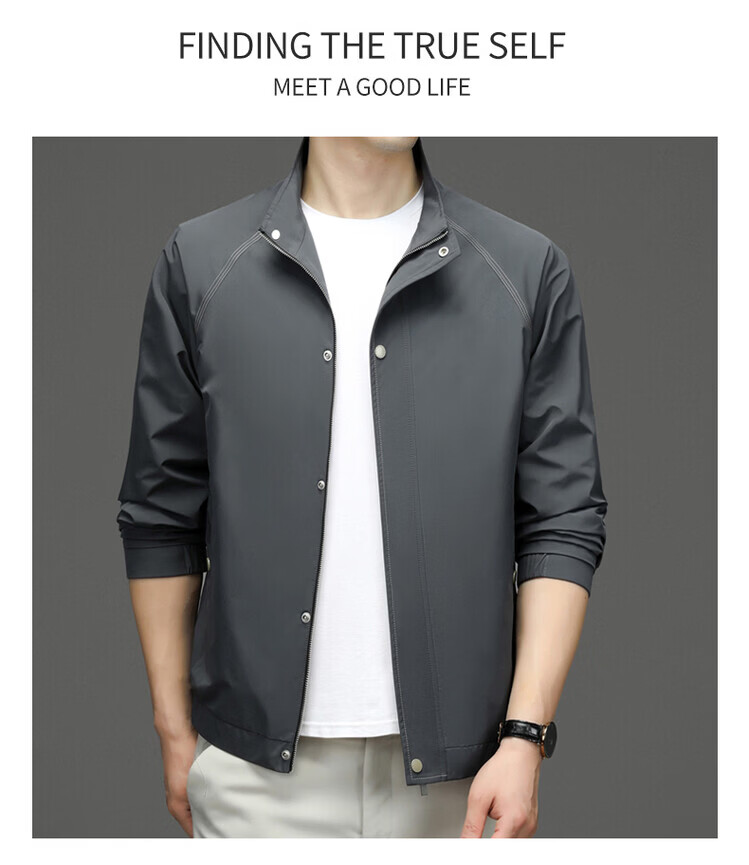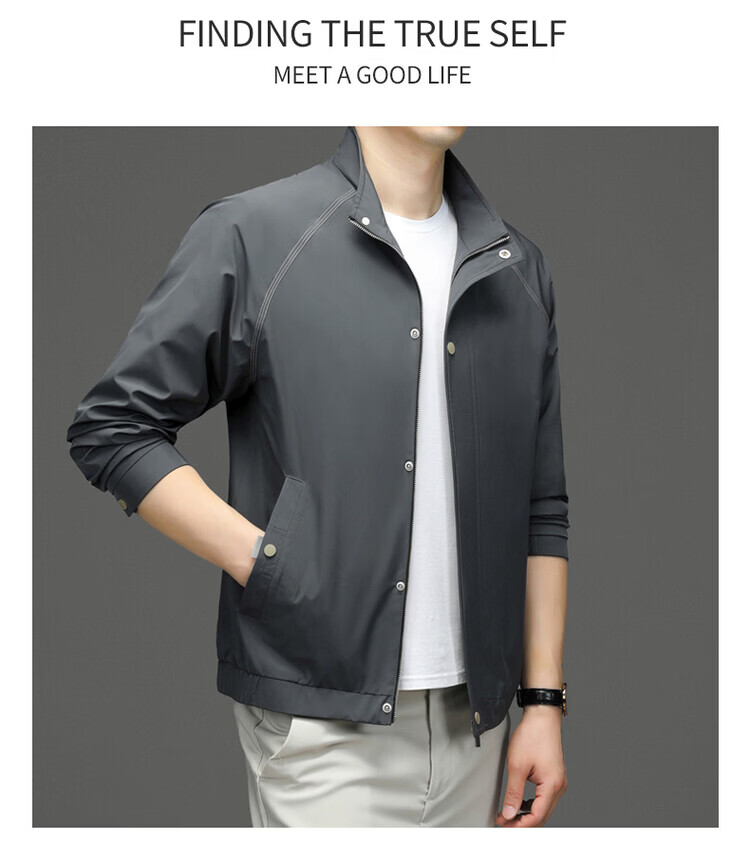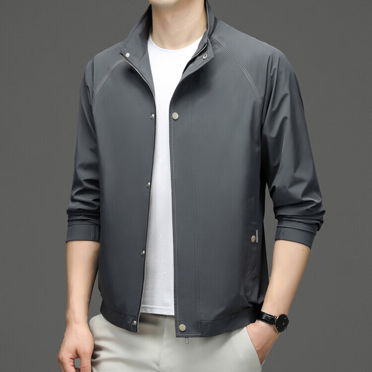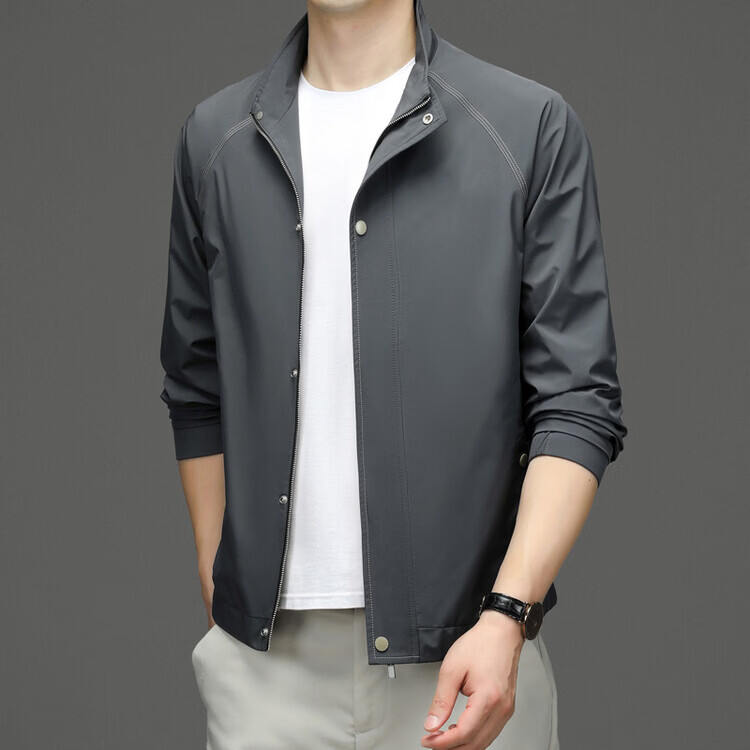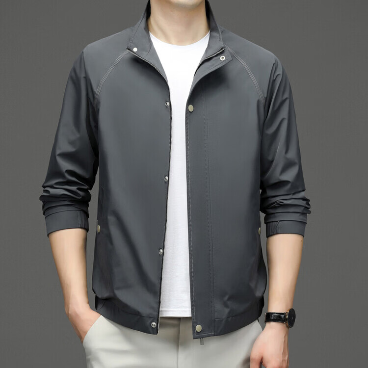 Hengyuanxiang Jacket Men's Jacket Top Spring, Autumn and Winter Windproof Stand-up Collar Plus Velvet Warm Outdoor Versatile Autumn and Winter Wear Dark Gray XL 180