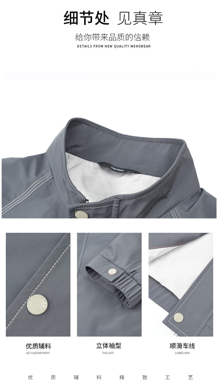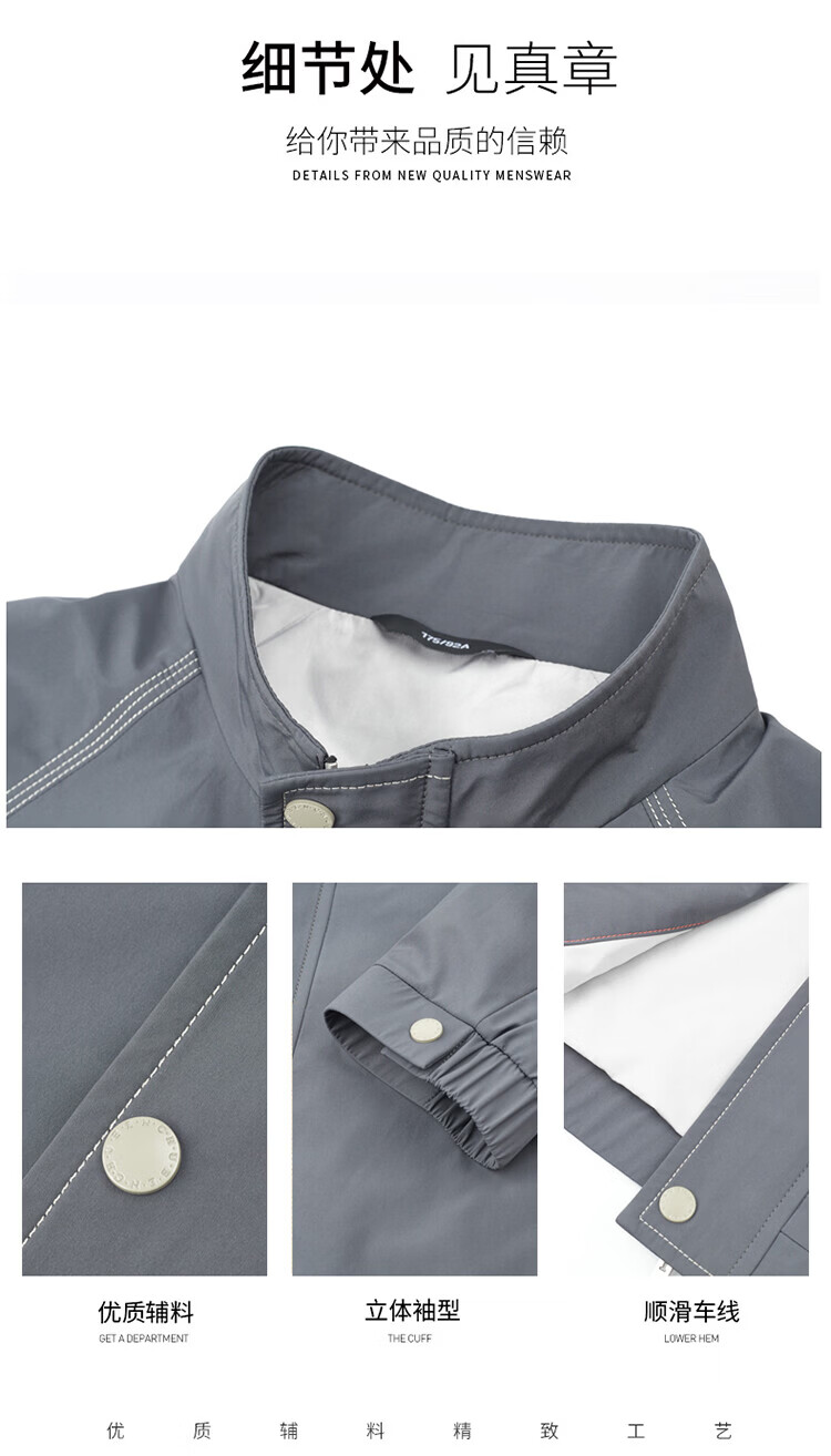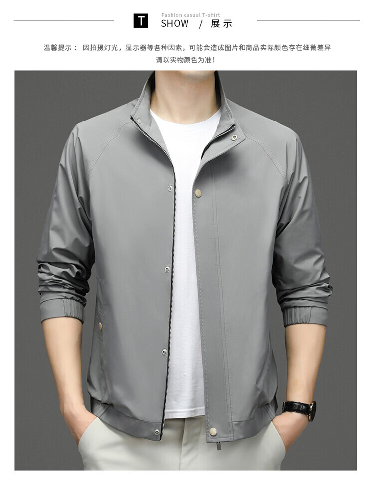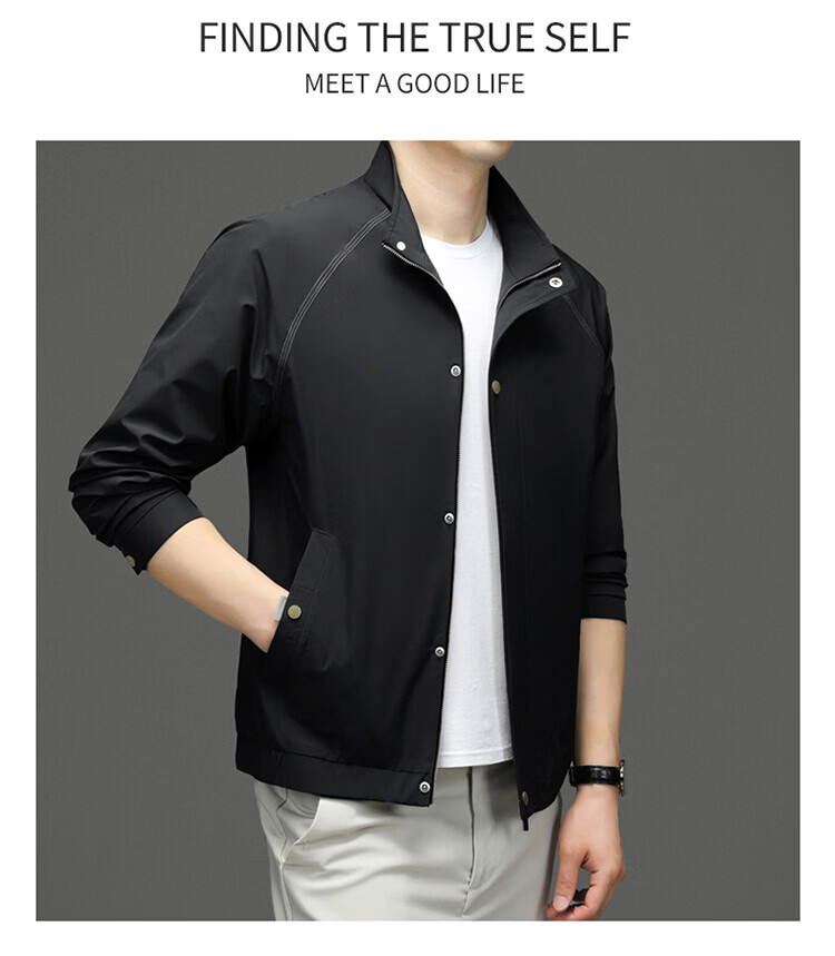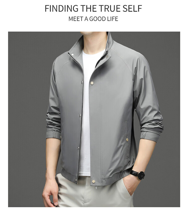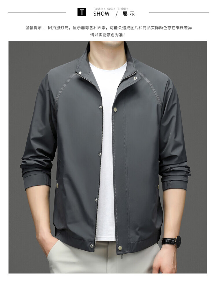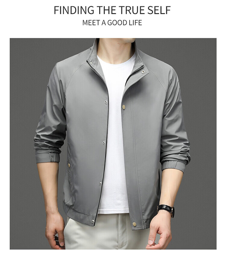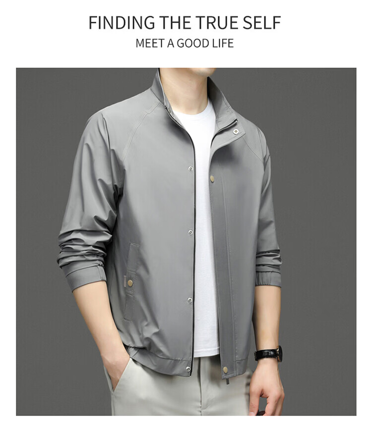 Hengyuanxiang Jacket Men's Jacket Top Spring, Autumn and Winter Windproof Stand-up Collar Plus Velvet Warm Outdoor Versatile Autumn and Winter Wear Dark Gray XL 180