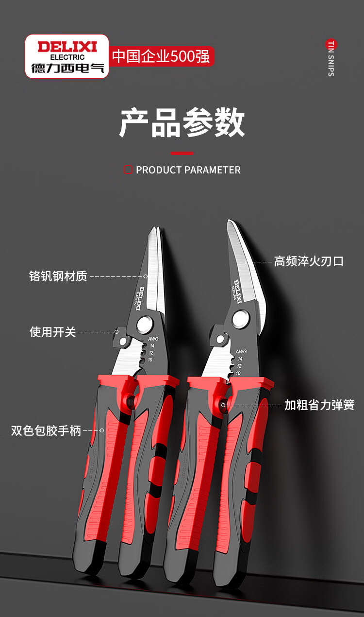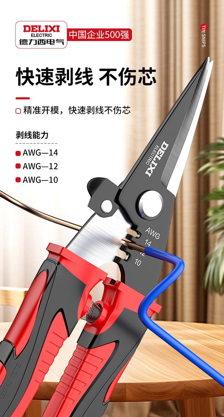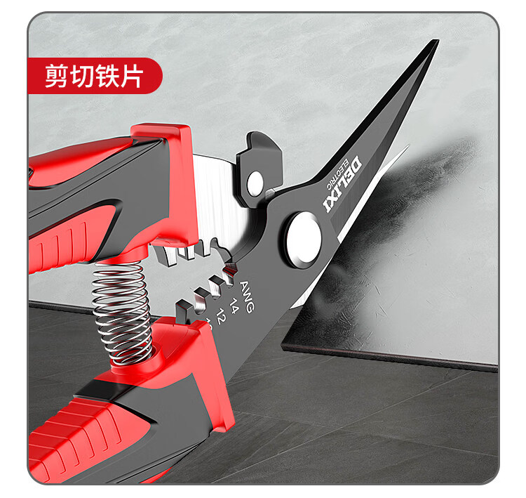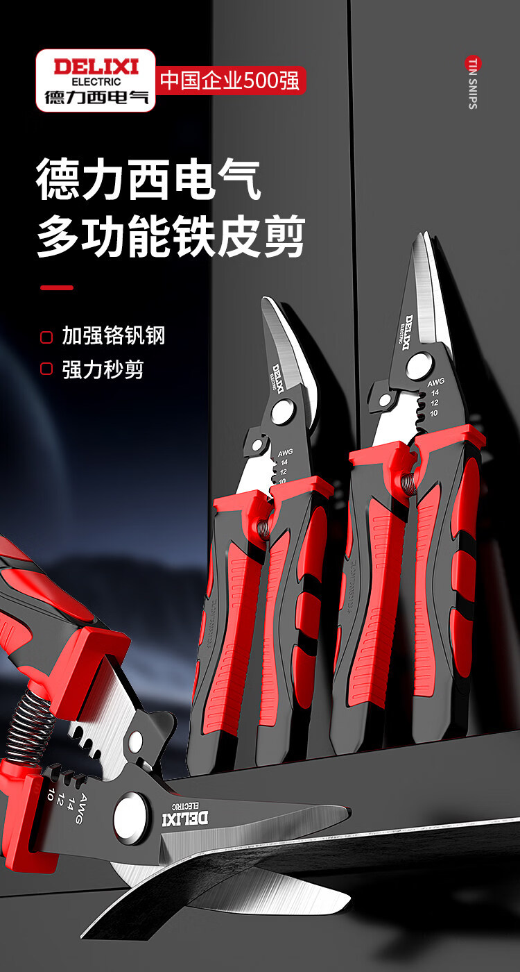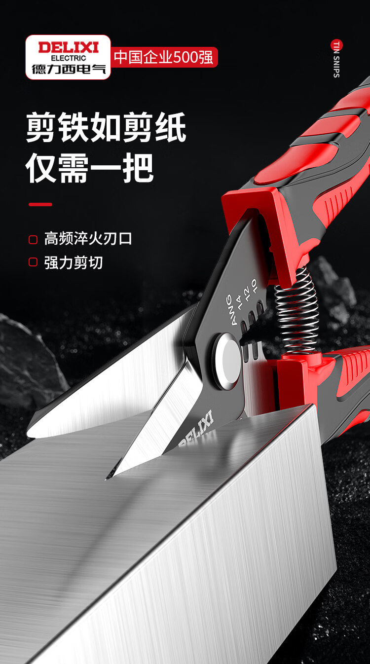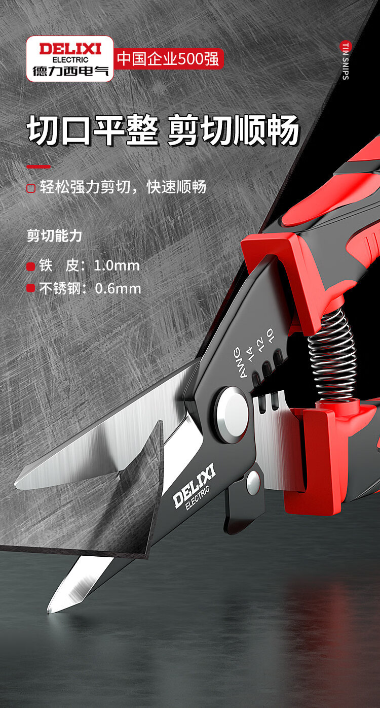 Delixi Electric multi-functional iron scissors, wire trough shears, stainless steel strip scissors, iron scissors, colored steel tile industrial scissors, wire stripping elbow iron scissors (1 set)