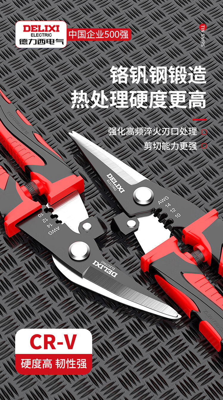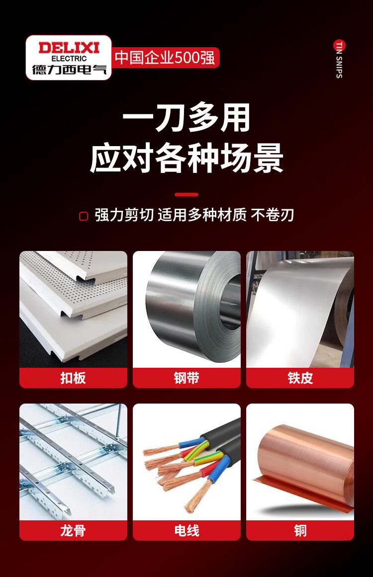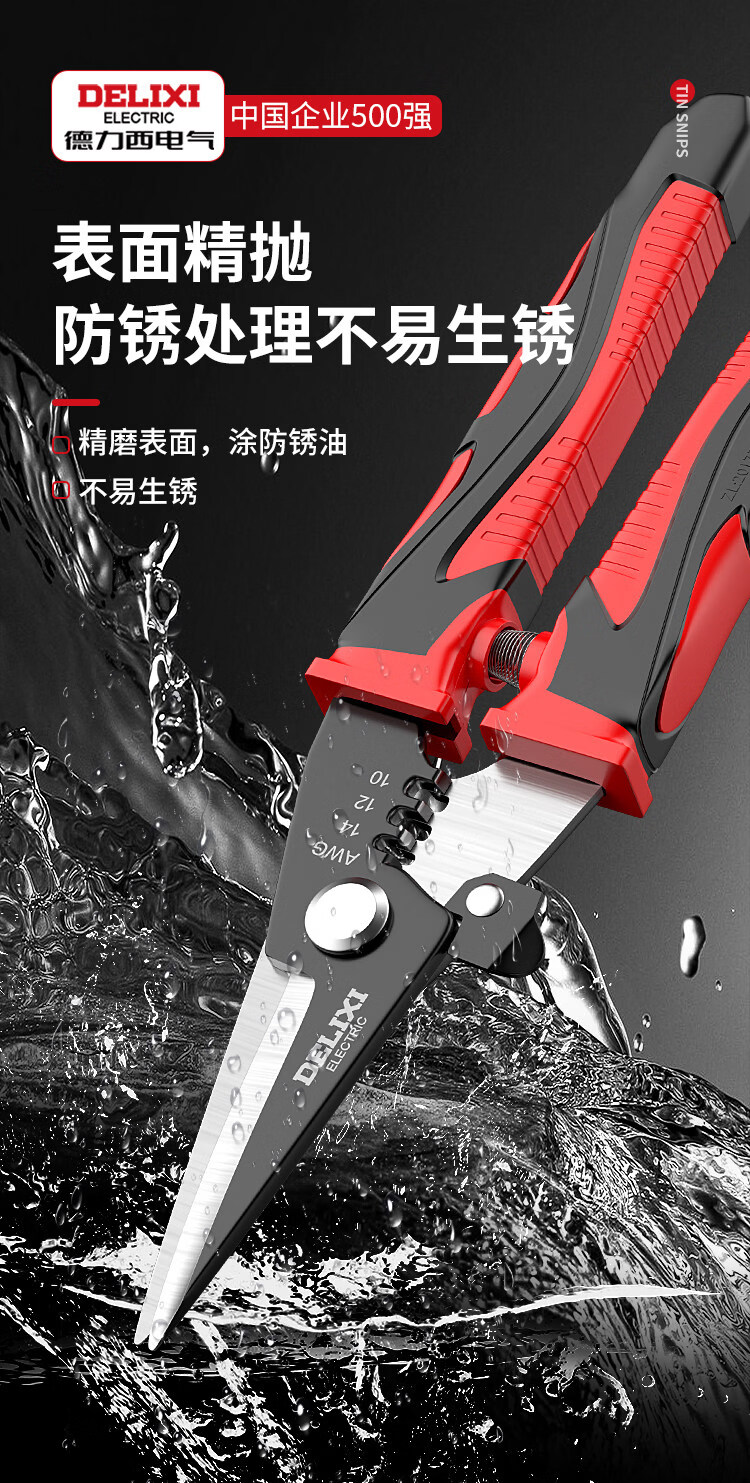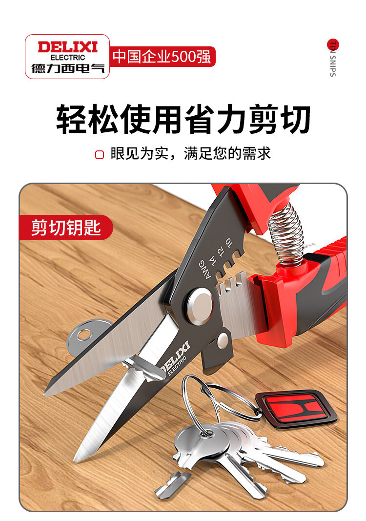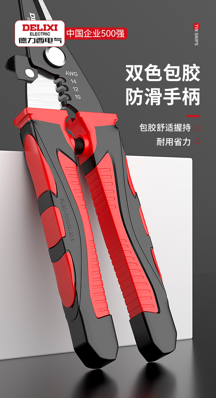 Delixi Electric multi-functional iron scissors, wire trough shears, stainless steel strip scissors, iron scissors, colored steel tile industrial scissors, wire stripping elbow iron scissors (1 set)