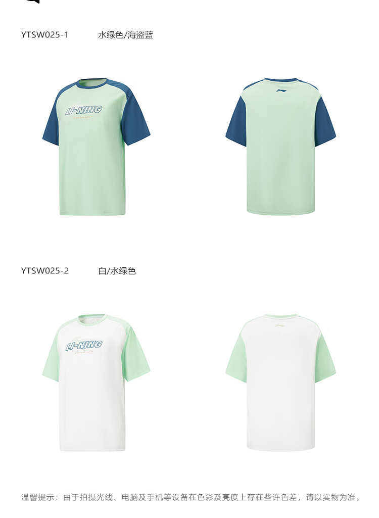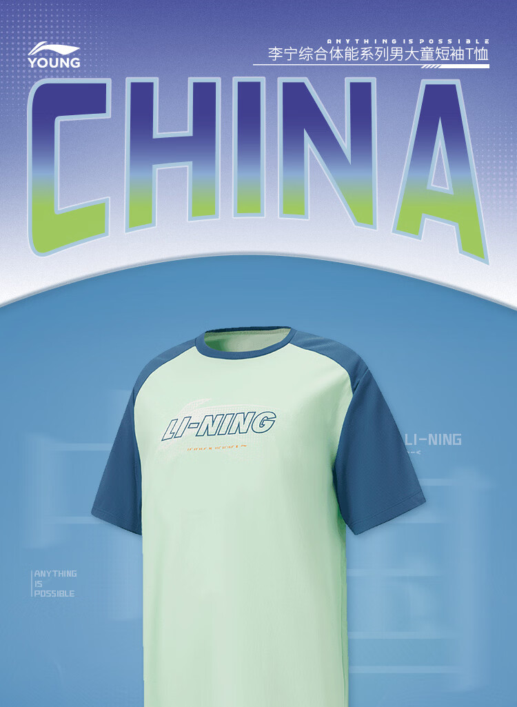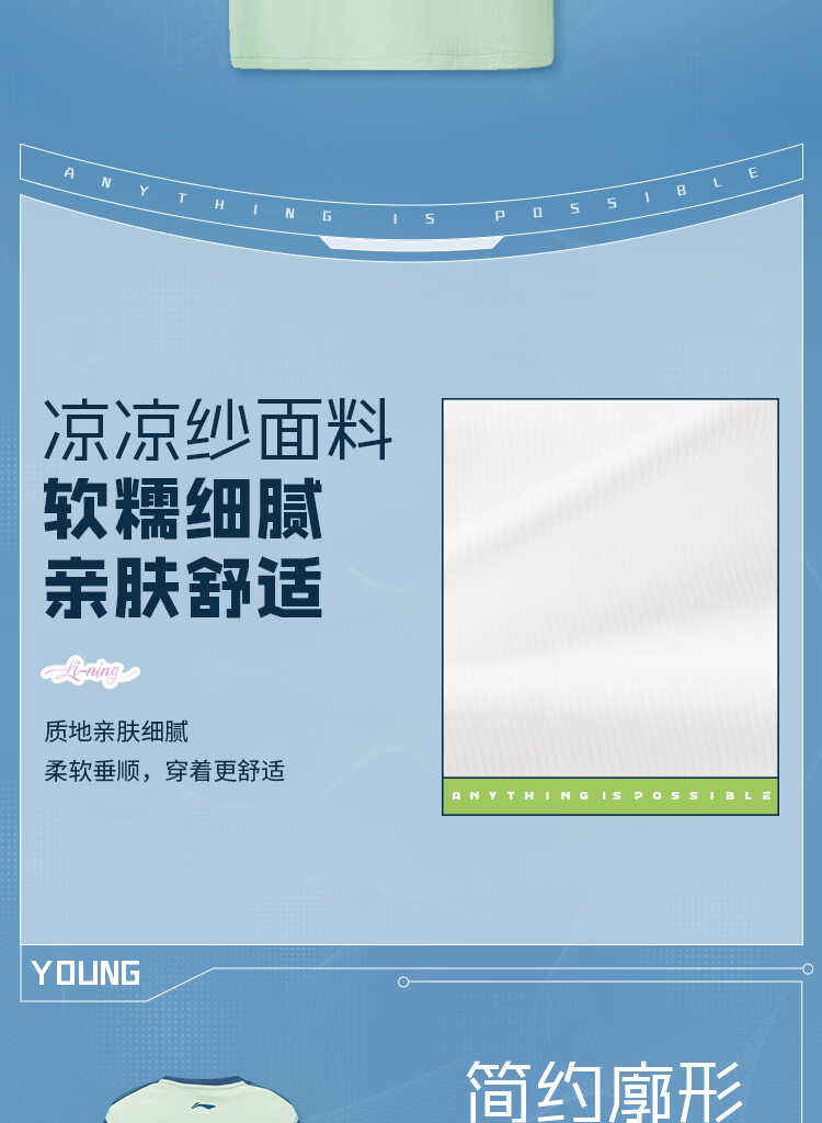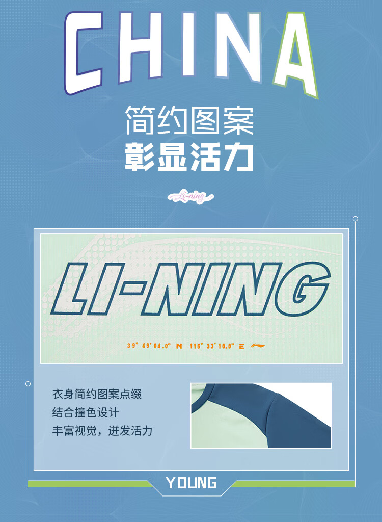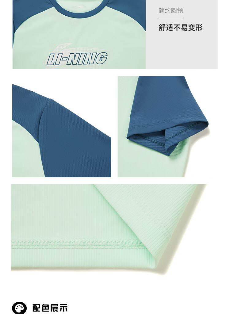 Li-Ning Children's Clothing Children's Short-Sleeved T-shirt for Boys and Girls Ice Comfort Moisture-wicking Sun Protection Vest Top YTSW025 Aqua/Pirate Blue-1 170