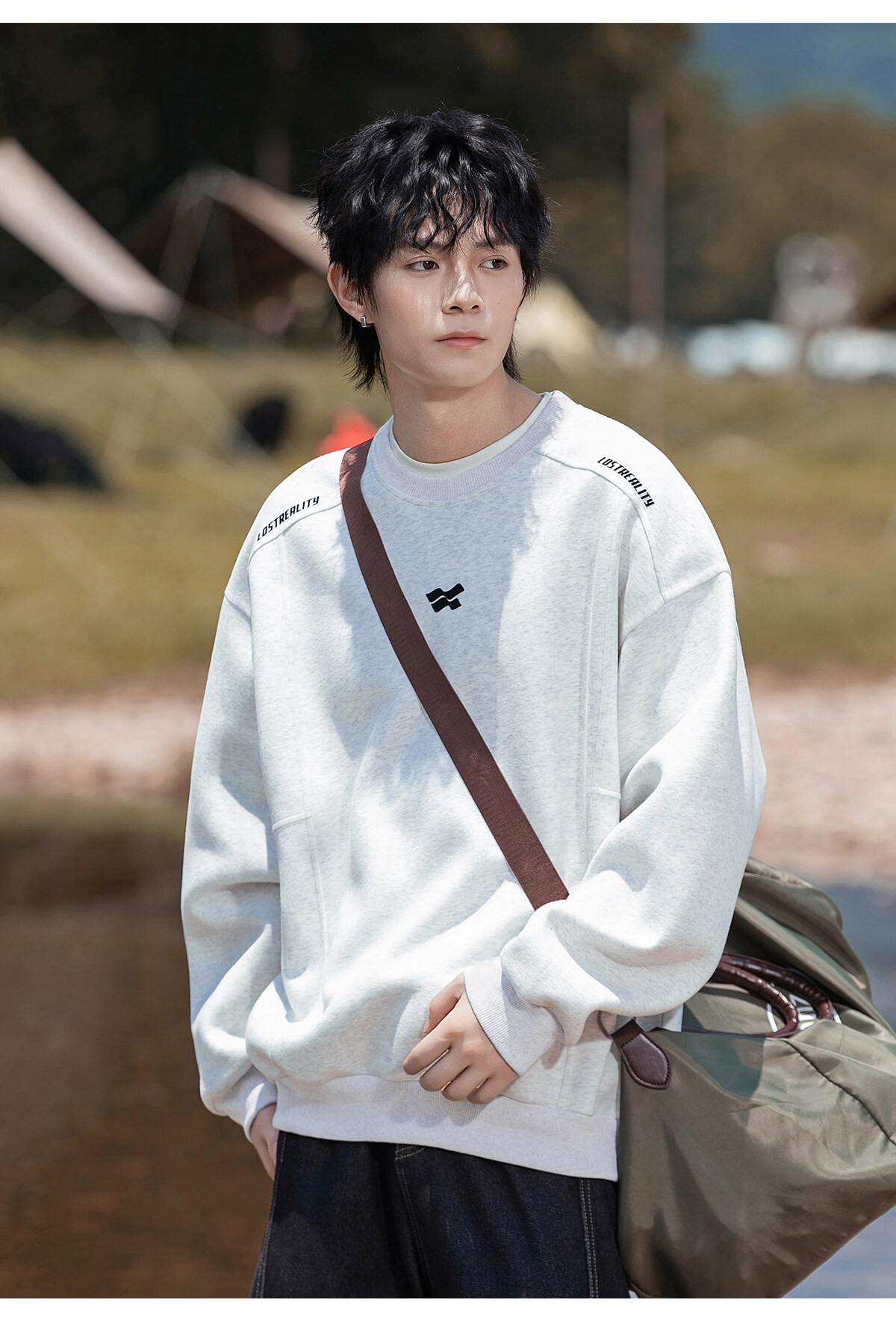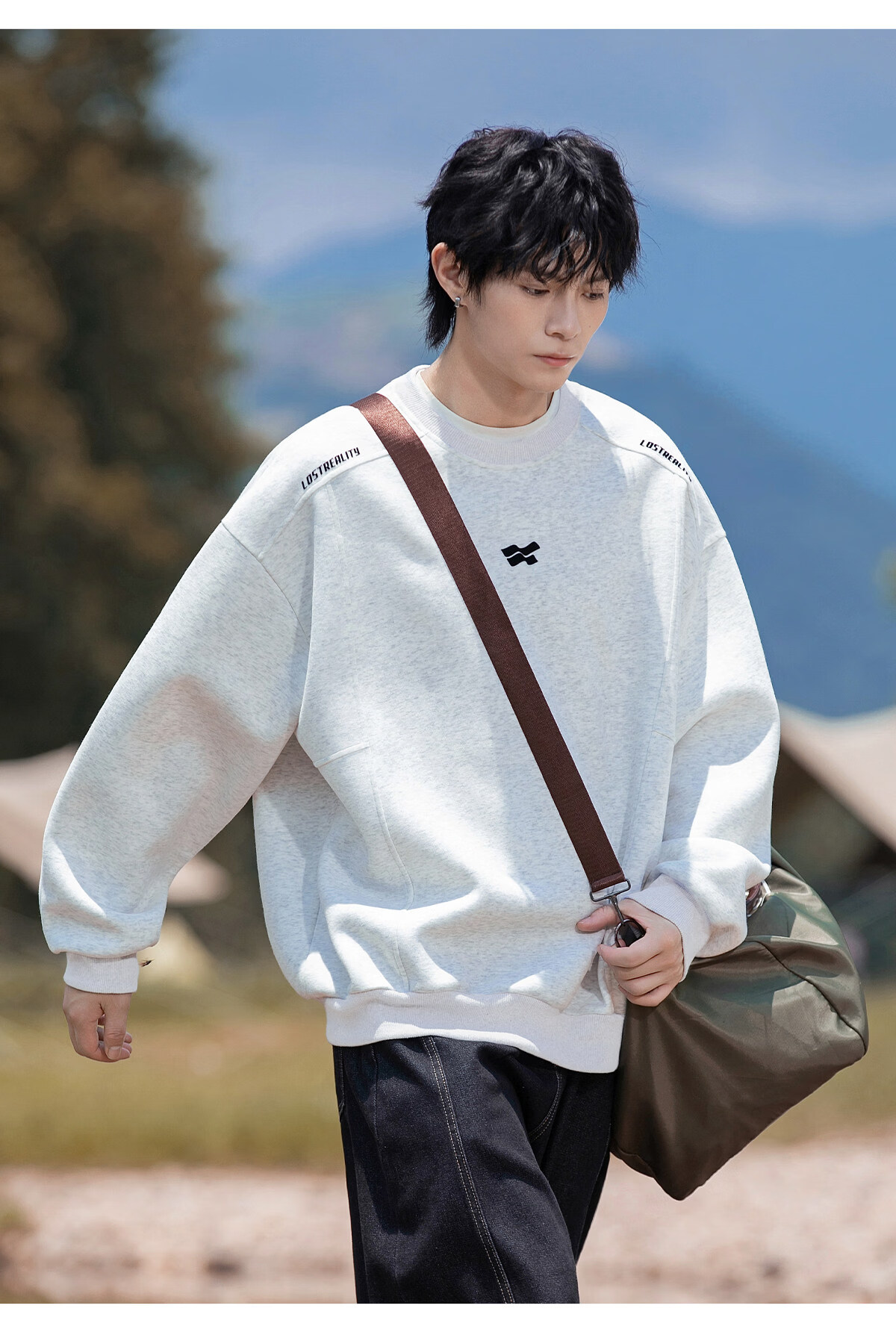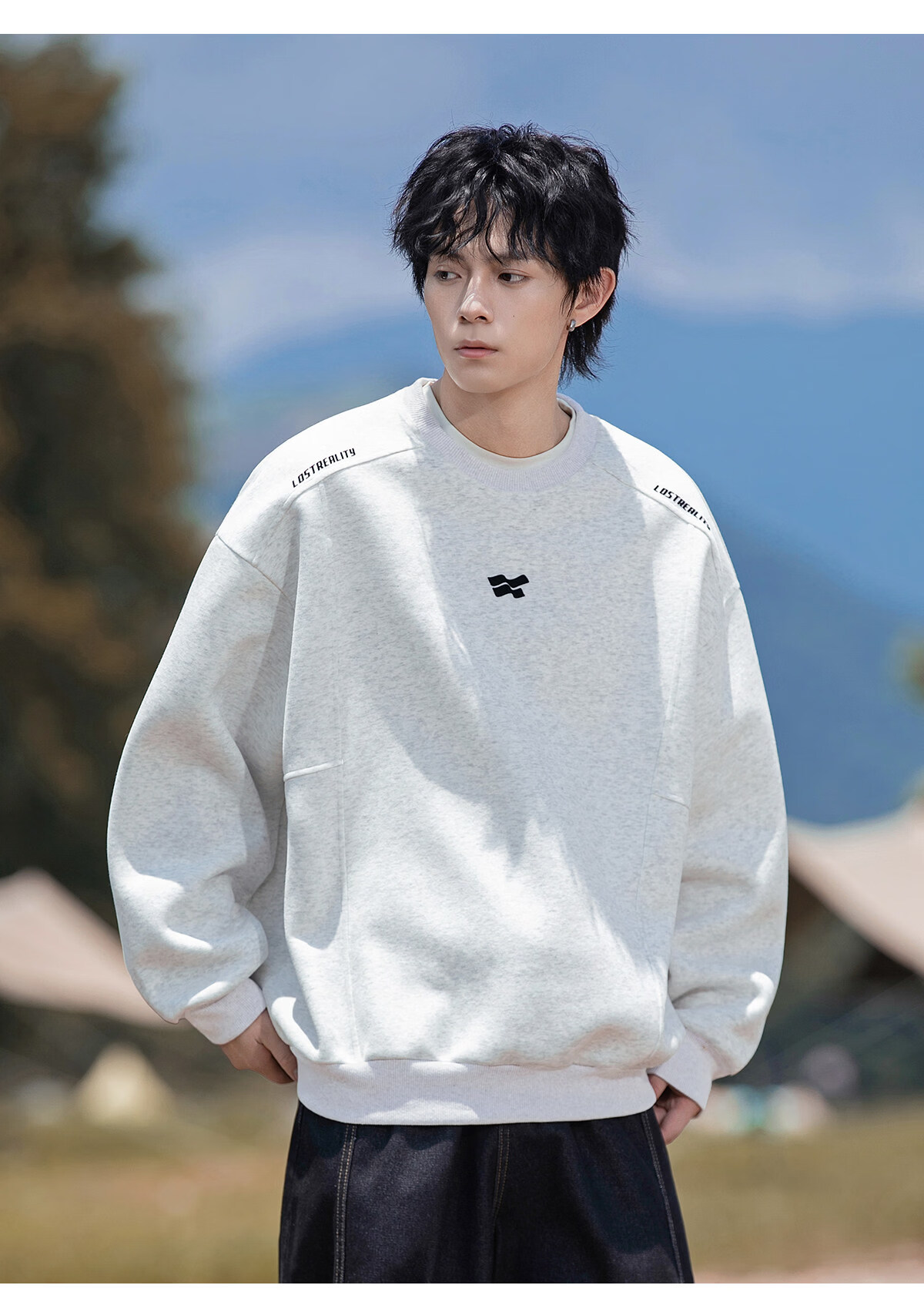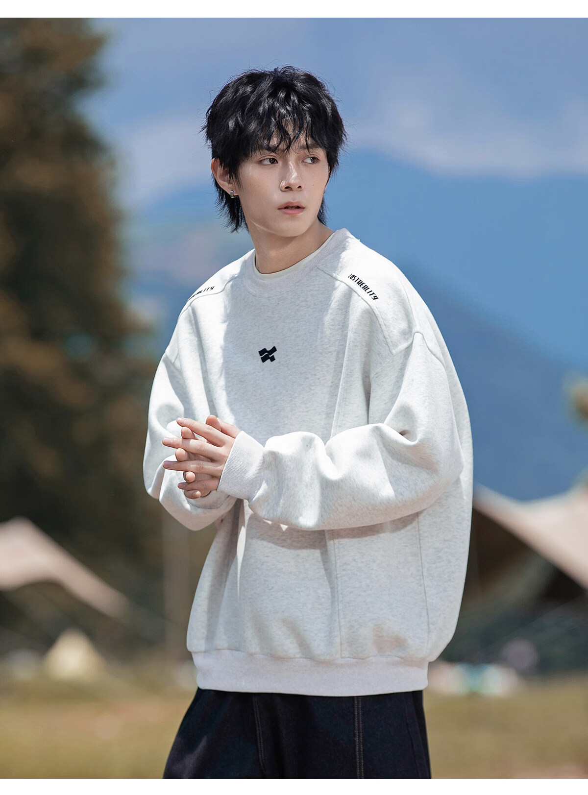 Playboy 400g American heavyweight men's sweatshirt high street trendy casual loose couple top spring American round neck jacket black M