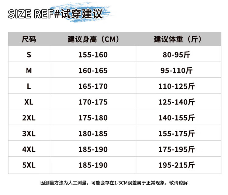 China (cm) 165 / 88-90 170 / 96-98 175 / 108-110 180 / 118-122 185 / 126-130