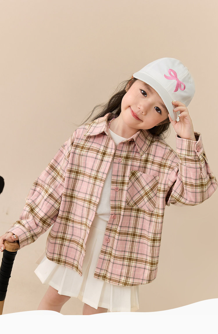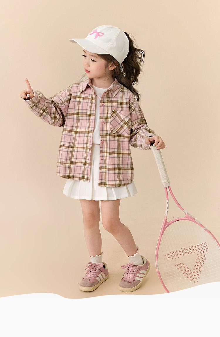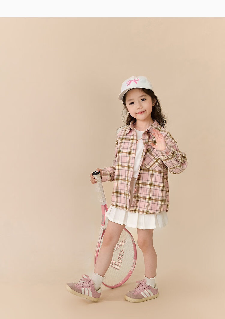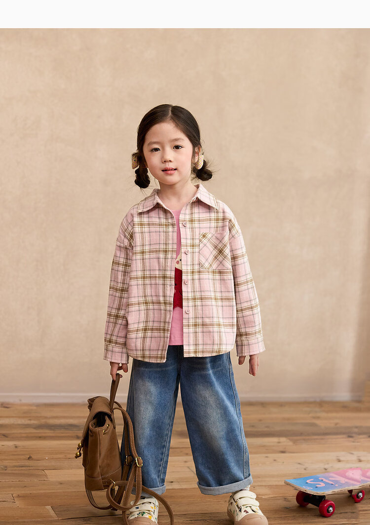 LUSON Children's Clothing Baby Plaid Shirt Women's Long Sleeve 2026 Spring New Style Girls Casual Shirt with Jacket Pink Plaid 80
