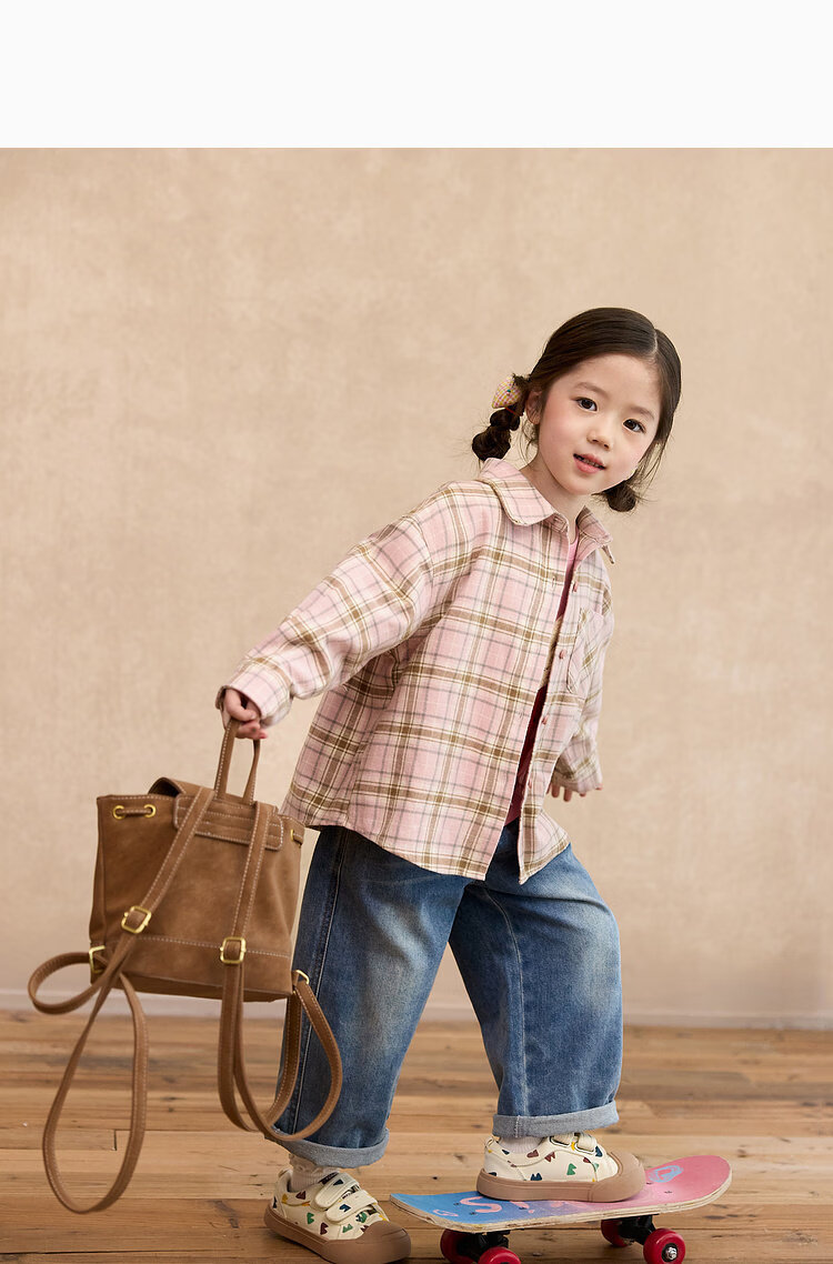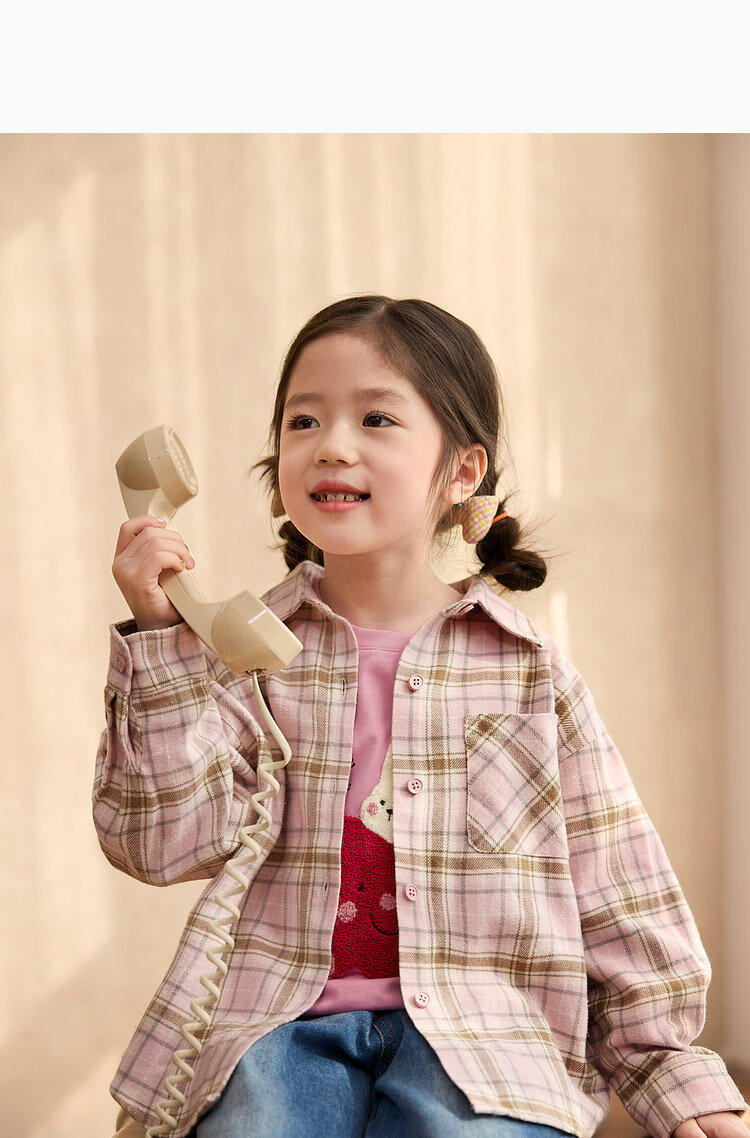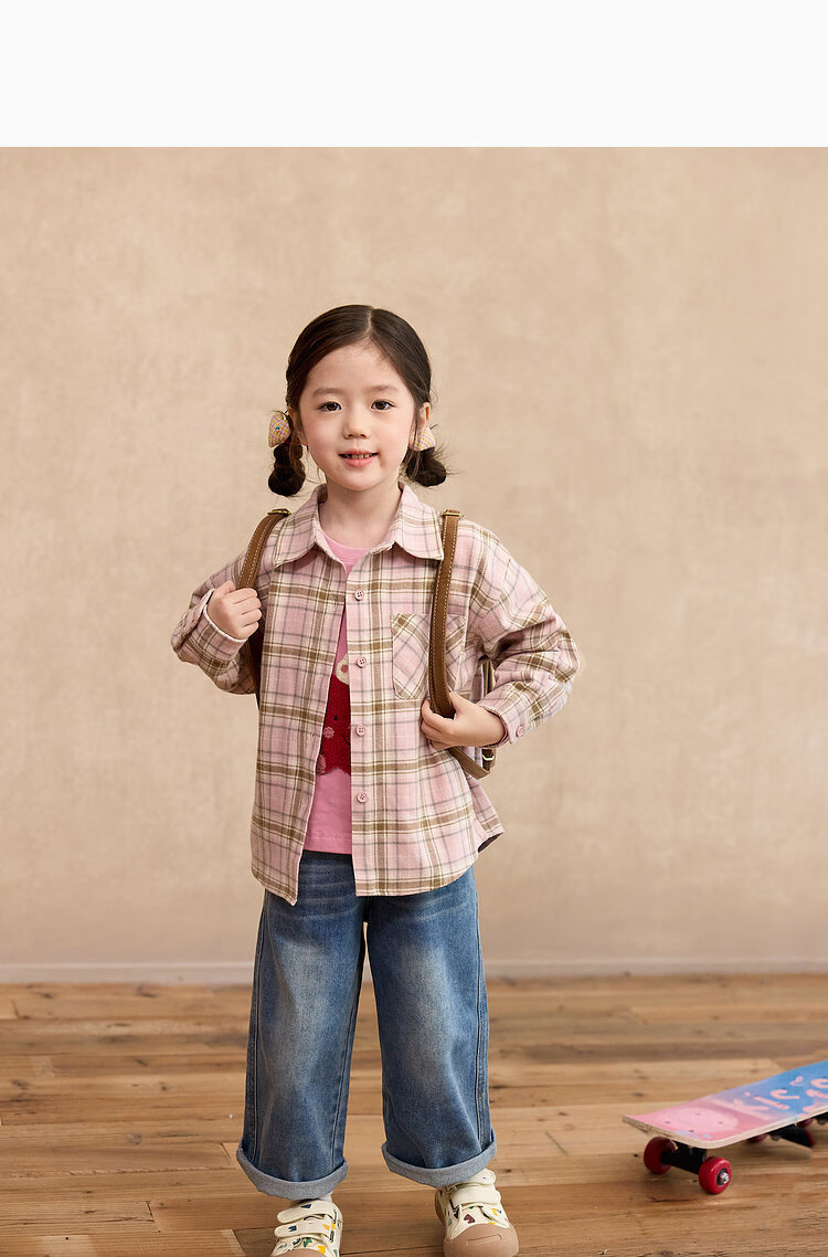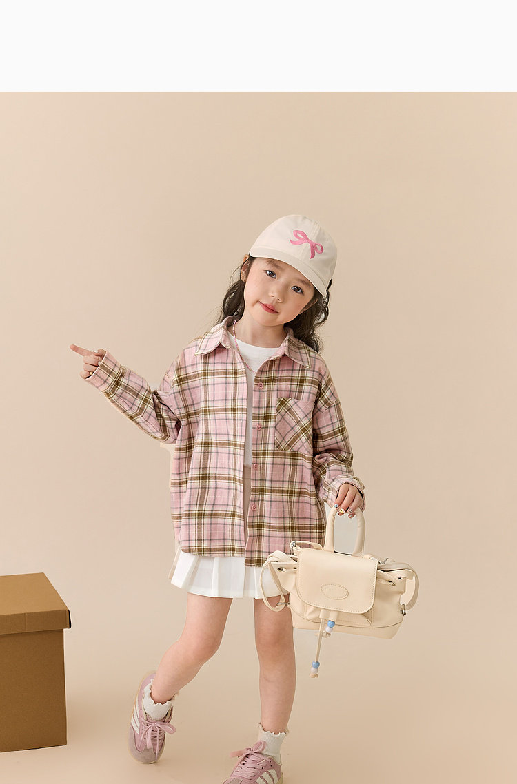 LUSON Children's Clothing Baby Plaid Shirt Women's Long Sleeve 2026 Spring New Style Girls Casual Shirt with Jacket Pink Plaid 80