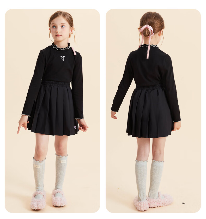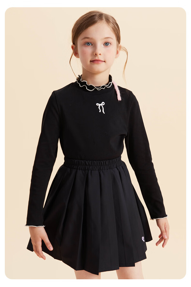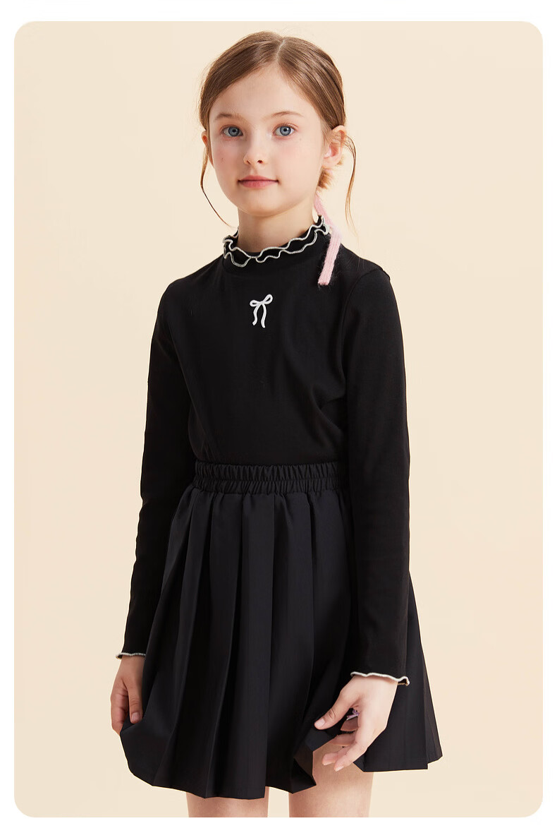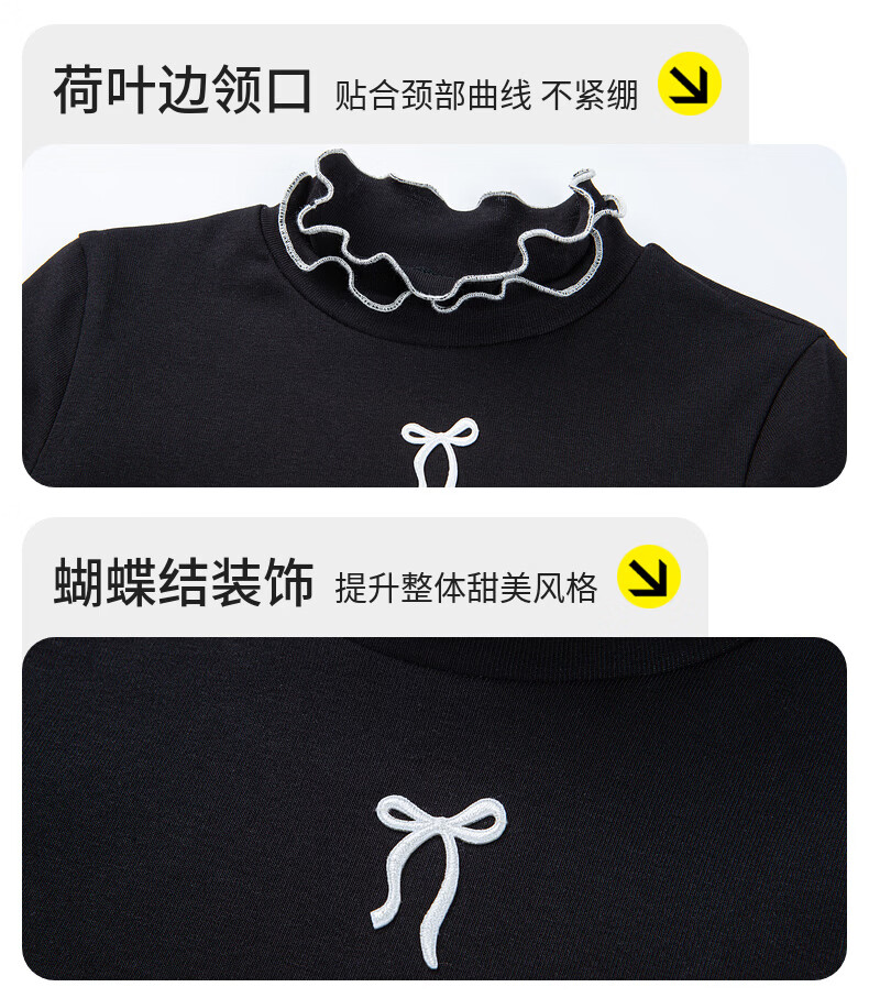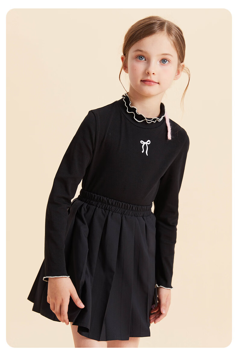 Fuluomi children's long-sleeved bottoming shirt for spring and autumn girls, comfortable and skin-friendly lotus leaf collar, with T-shirt inside and can be worn outside, black 110