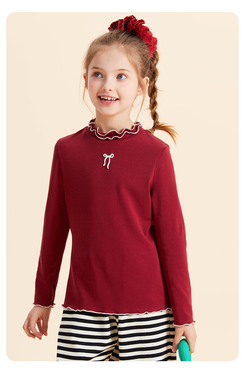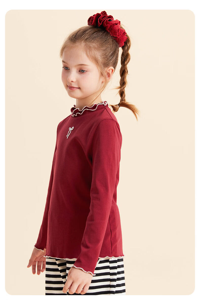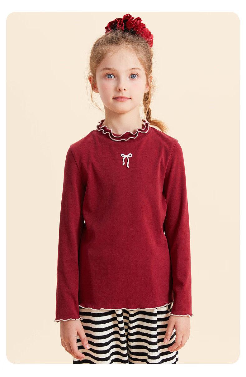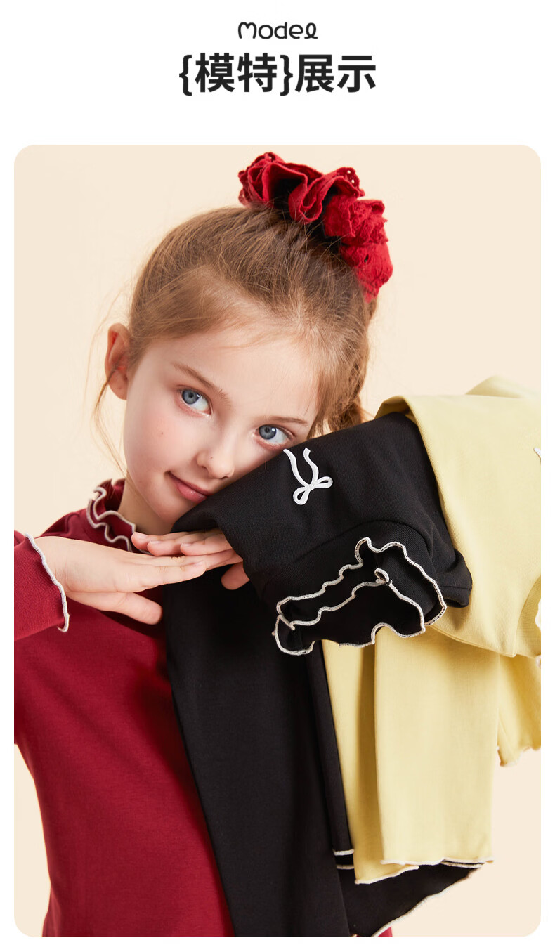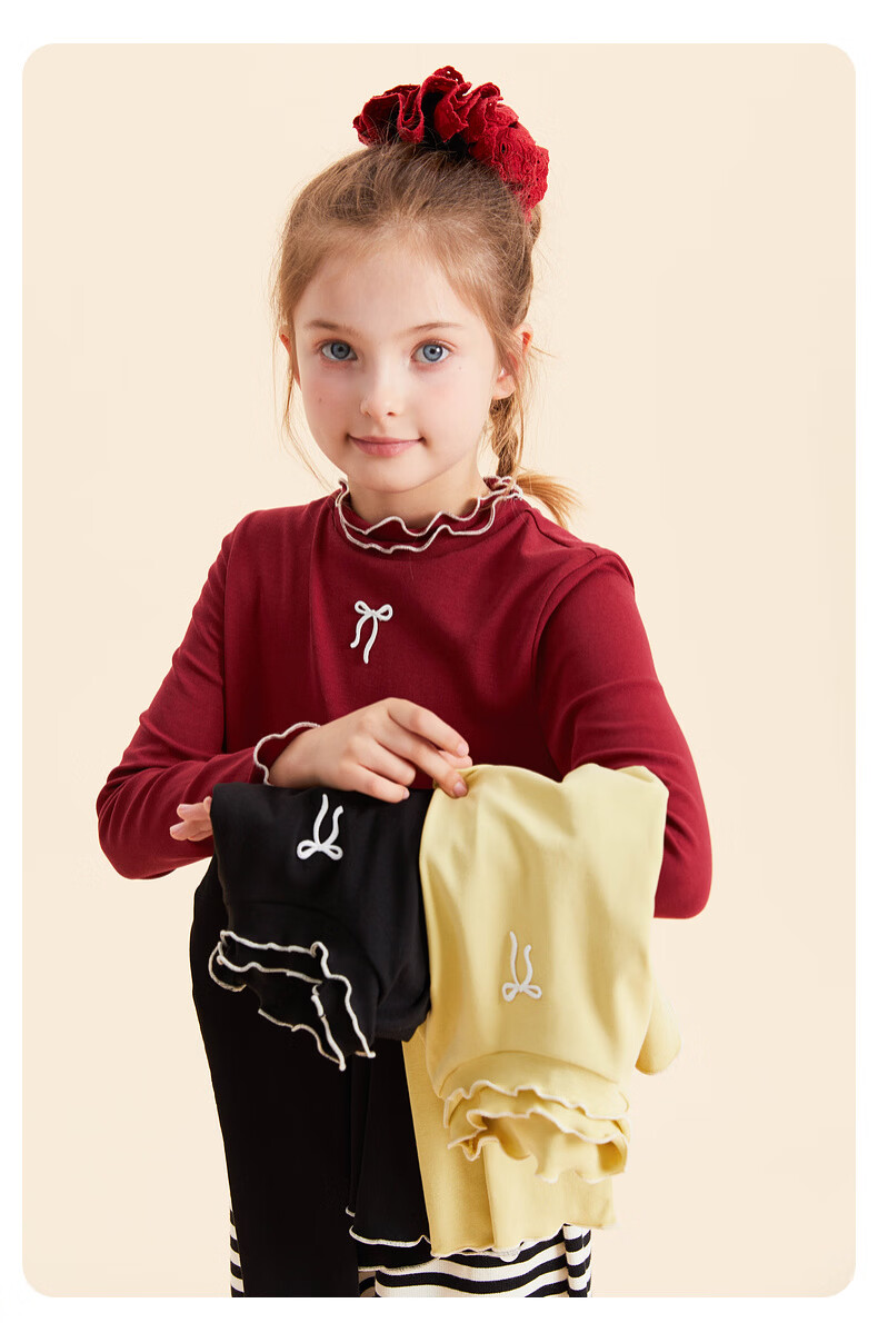 Fuluomi children's long-sleeved bottoming shirt for spring and autumn girls, comfortable and skin-friendly lotus leaf collar, with T-shirt inside and can be worn outside, black 110