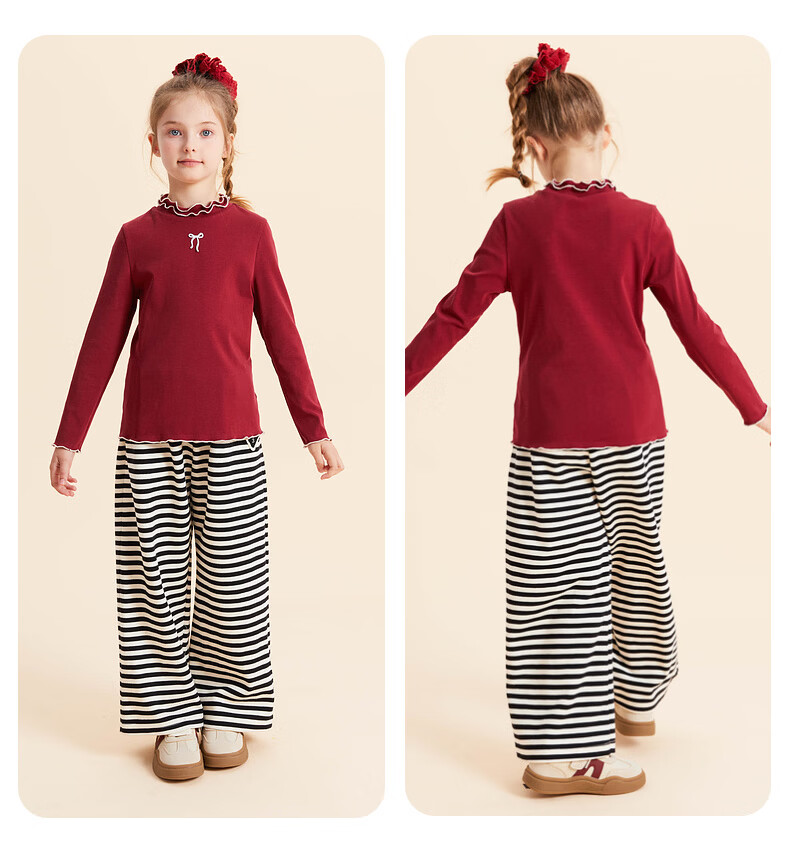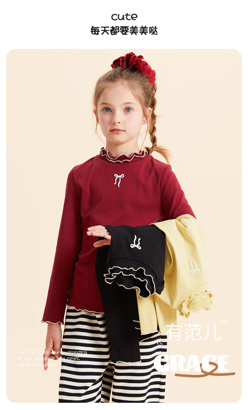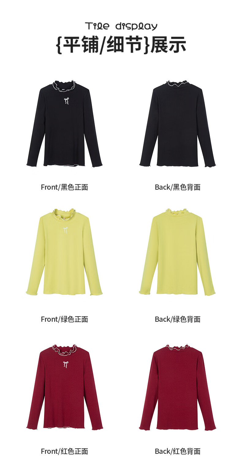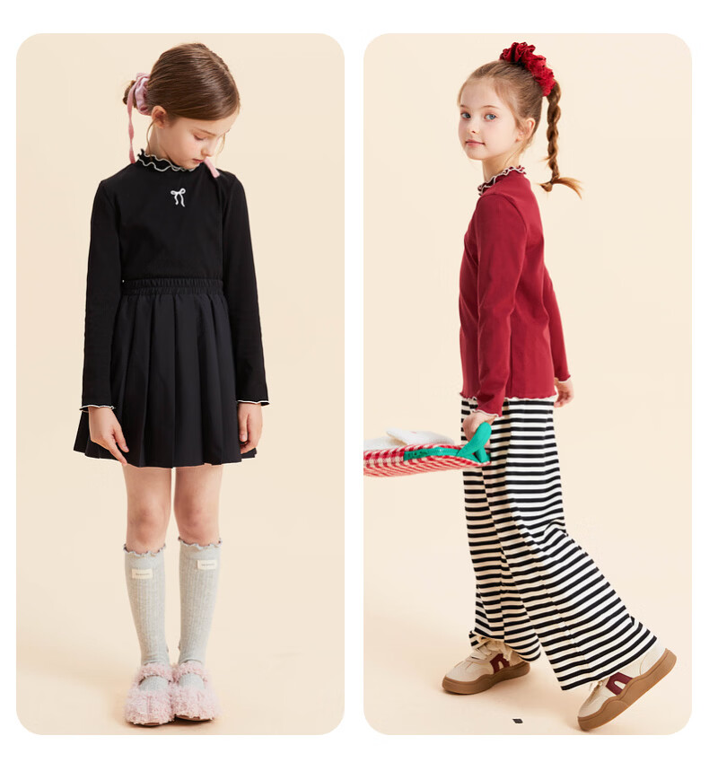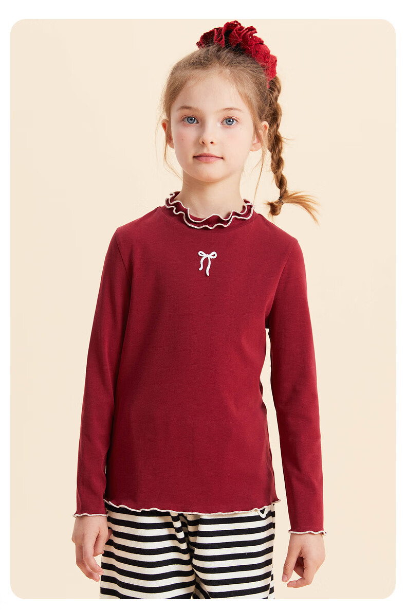 Fuluomi children's long-sleeved bottoming shirt for spring and autumn girls, comfortable and skin-friendly lotus leaf collar, with T-shirt inside and can be worn outside, black 110