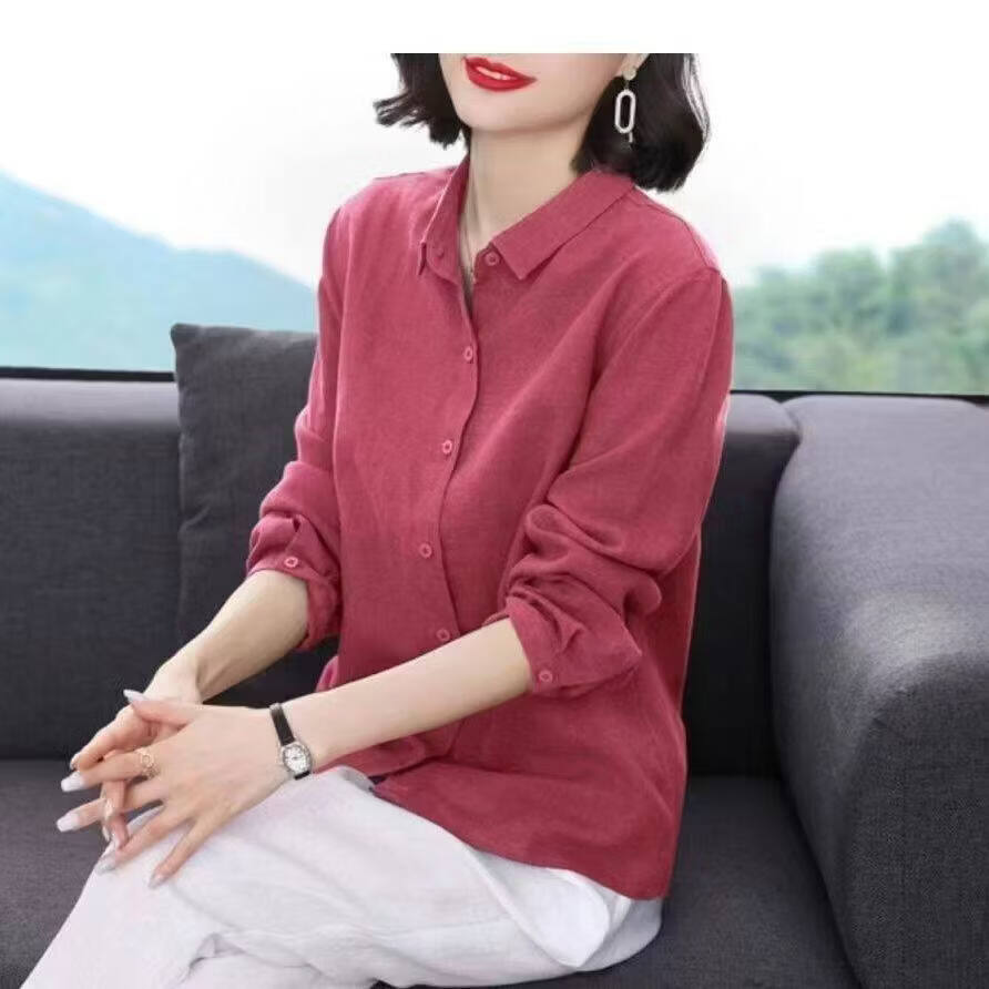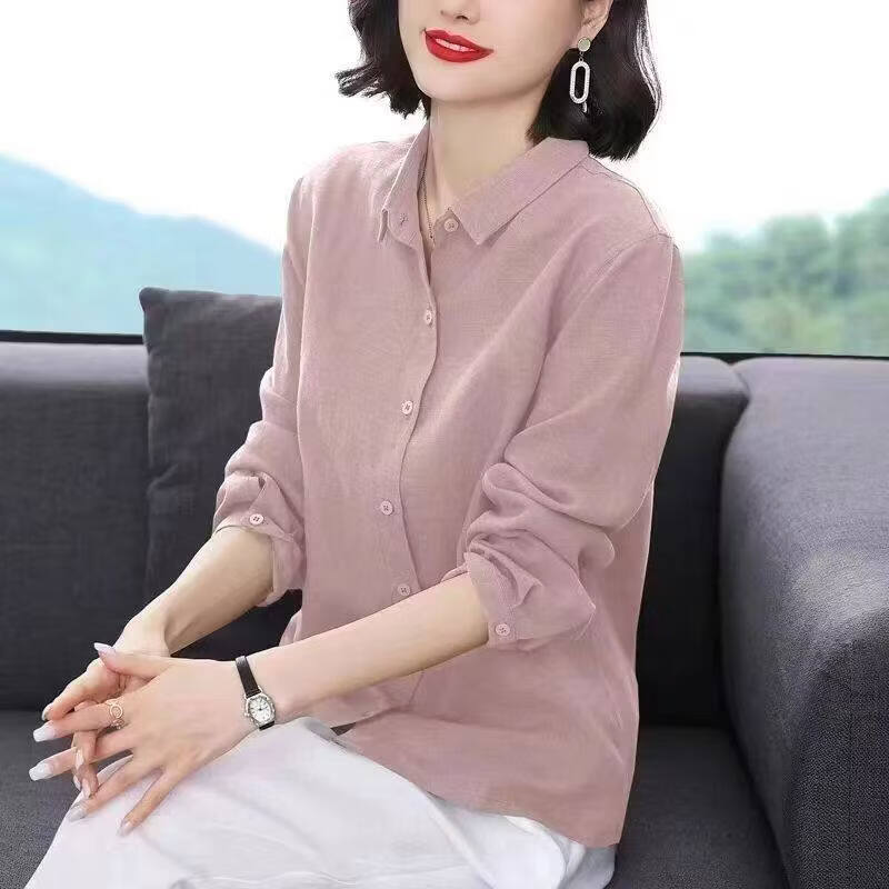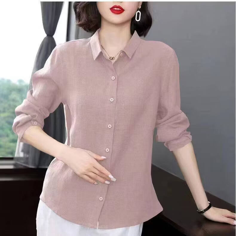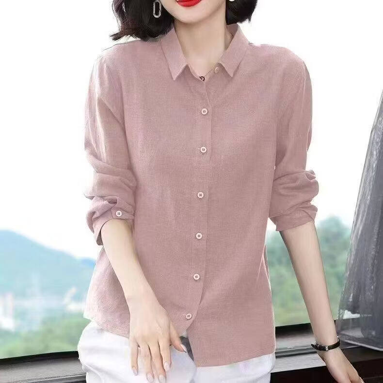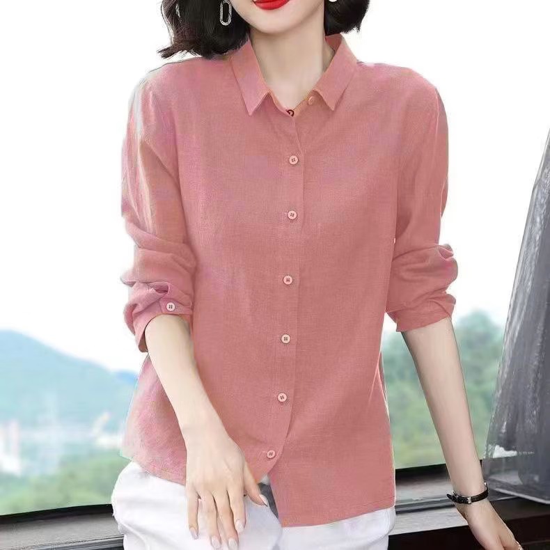 Woodpecker Cotton Shirt Women's Solid Color 2026 New Spring and Autumn Women's Loose Flesh Covering Shirt Shirt Women's Top Long Sleeve Leather Pink The size is too small. It is recommended to take a larger size S. It is recommended that 85-95Jin Jin equals 0.5 kg