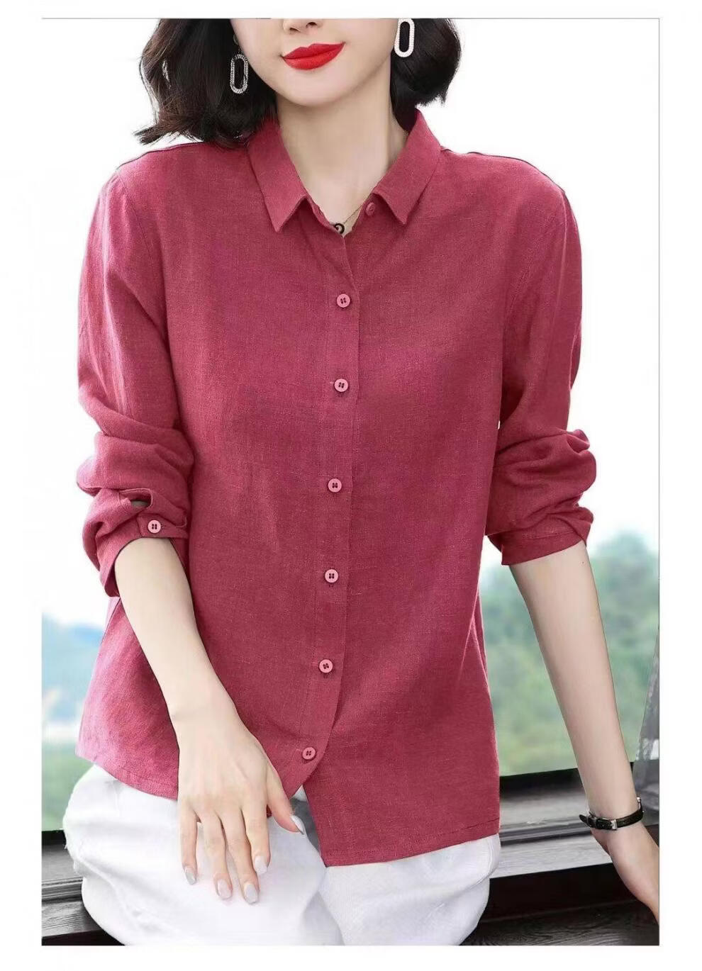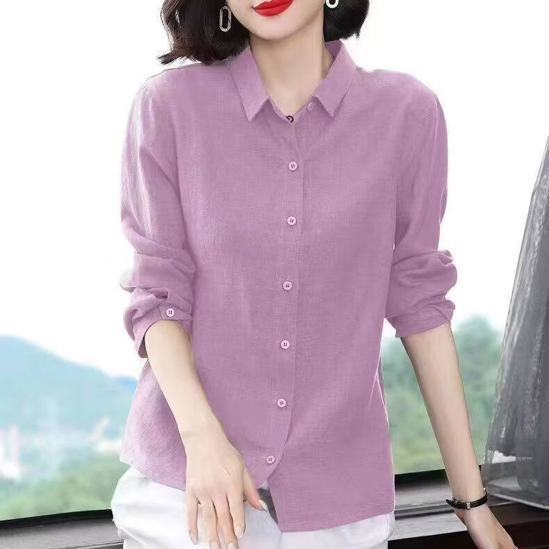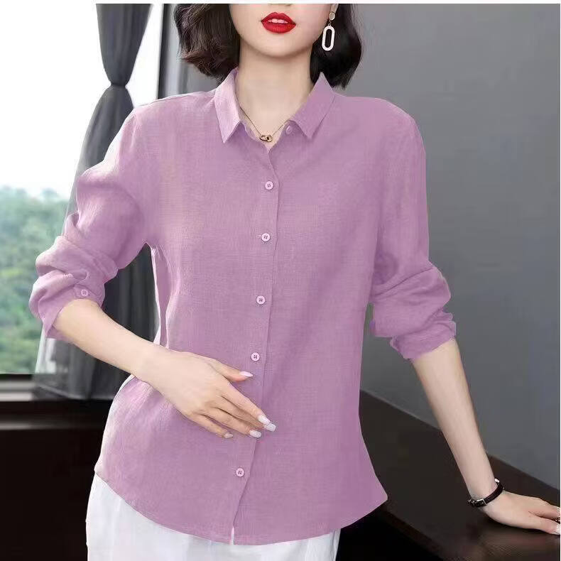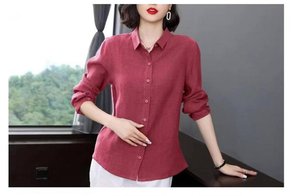 Woodpecker Cotton Shirt Women's Solid Color 2026 New Spring and Autumn Women's Loose Flesh Covering Shirt Shirt Women's Top Long Sleeve Leather Pink The size is too small. It is recommended to take a larger size S. It is recommended that 85-95Jin Jin equals 0.5 kg