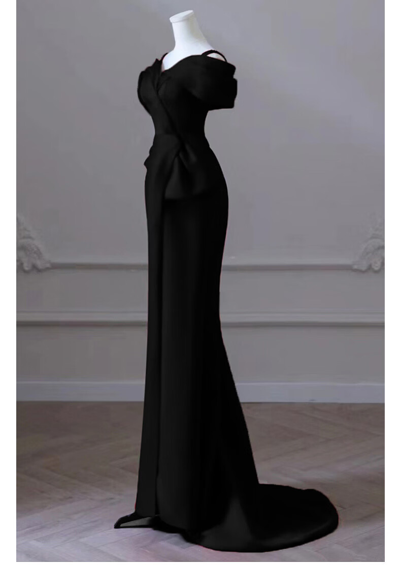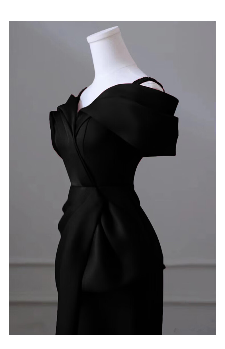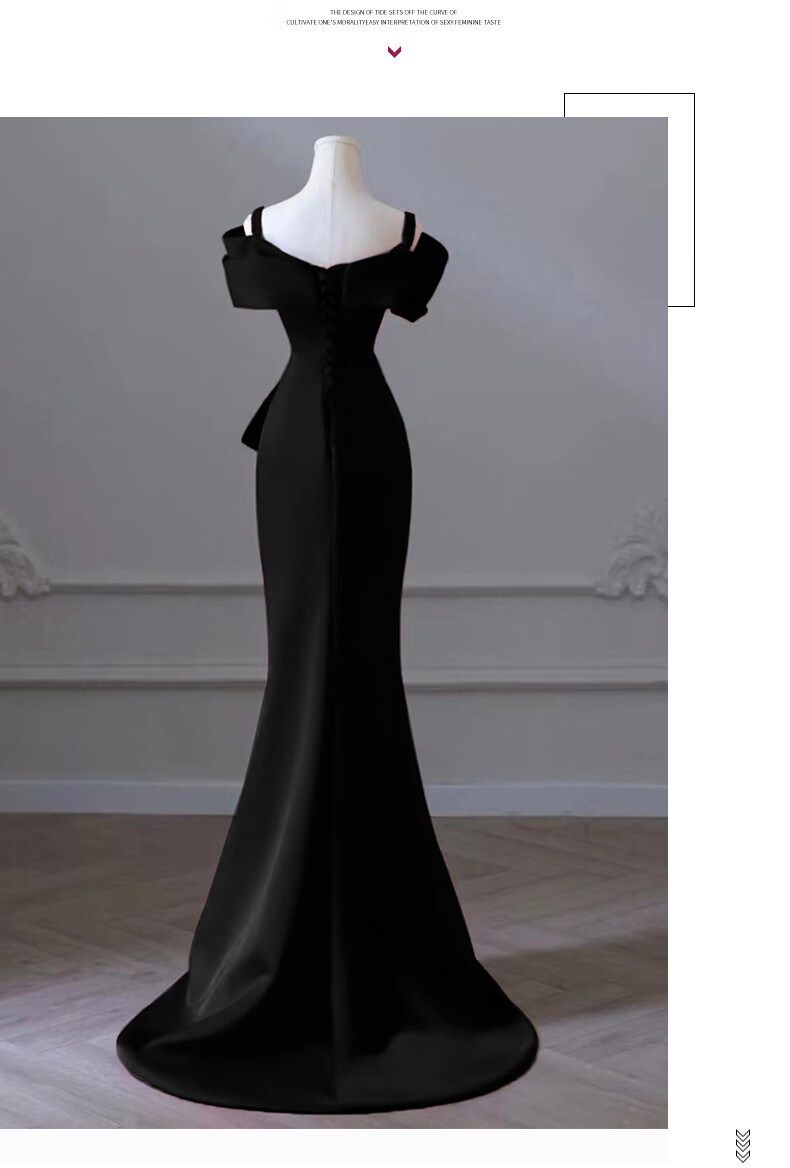 UKUHPK one-shoulder black evening dress 2026 banquet-style fishtail skirt light luxury niche host dress black tail XL