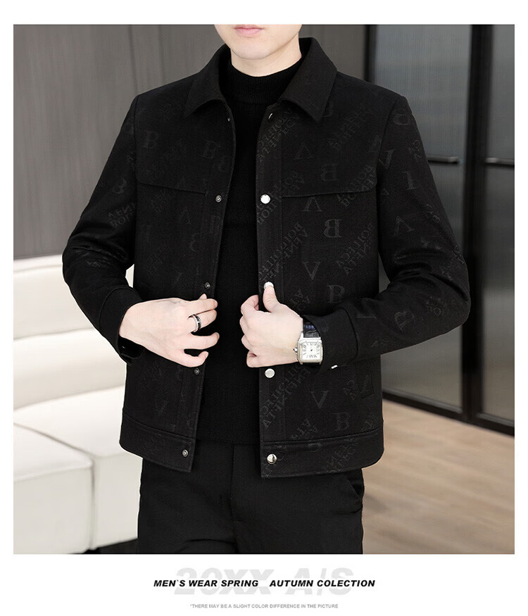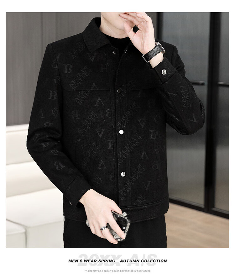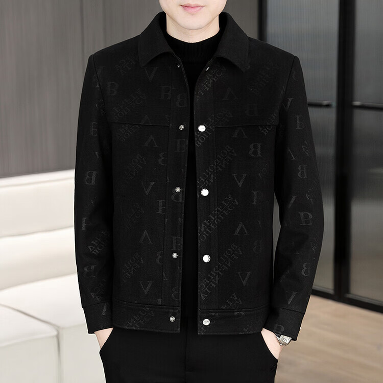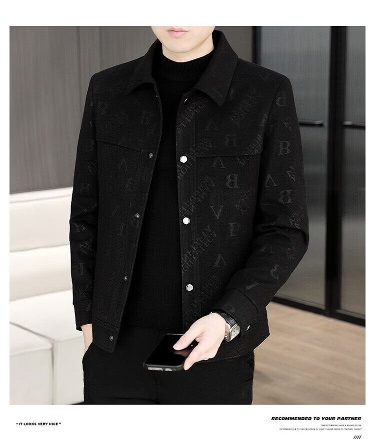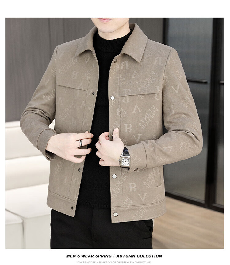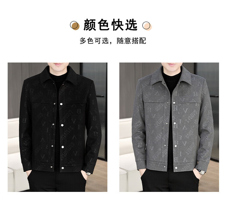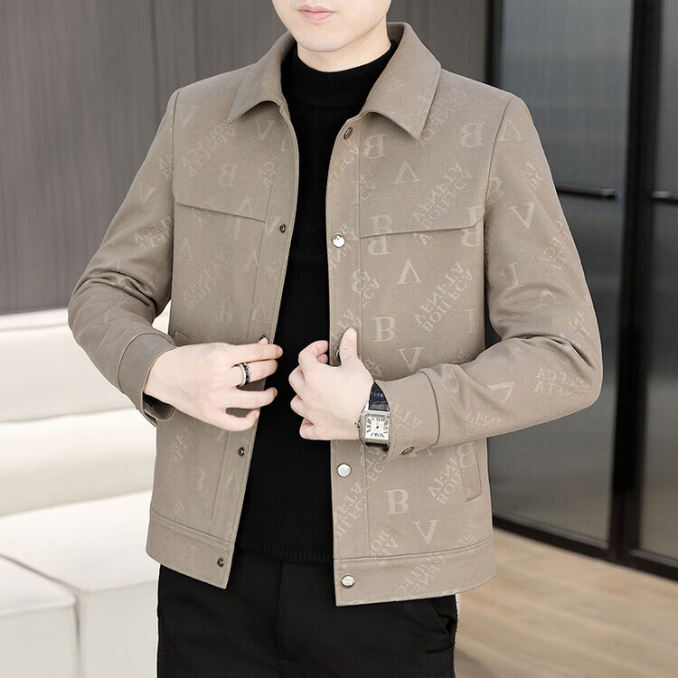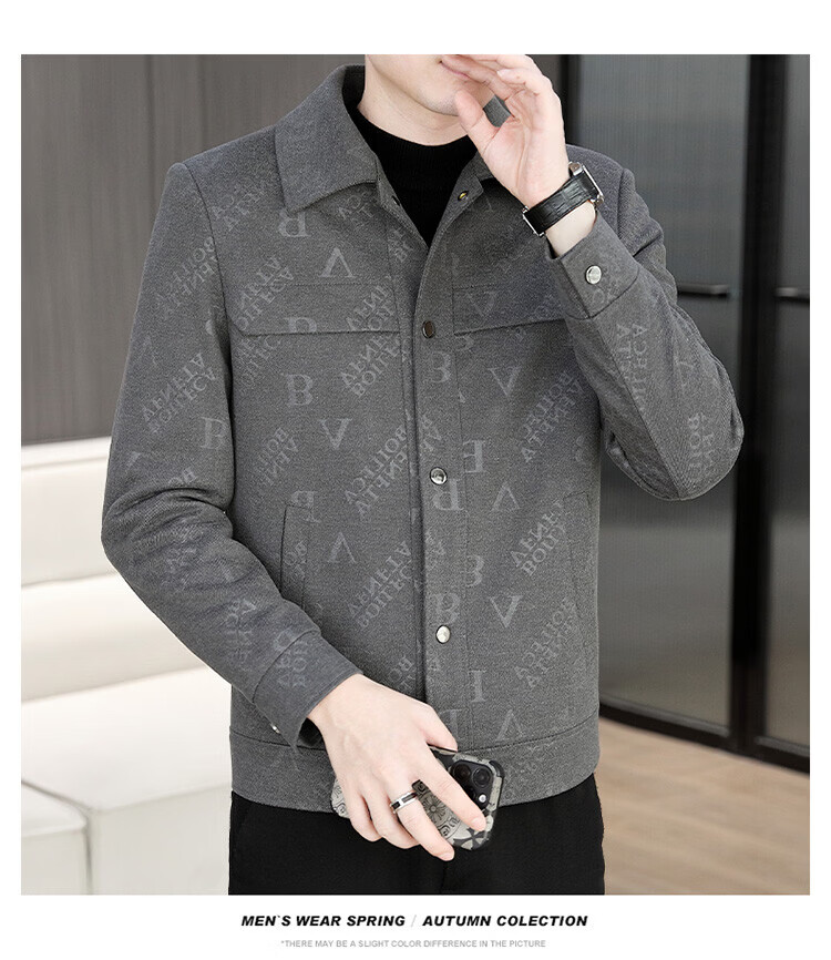Hengyuanxiang brand high-end autumn and winter thick warm letter jacket men's velvet thickened casual fashion lapel versatile jacket gray M.
