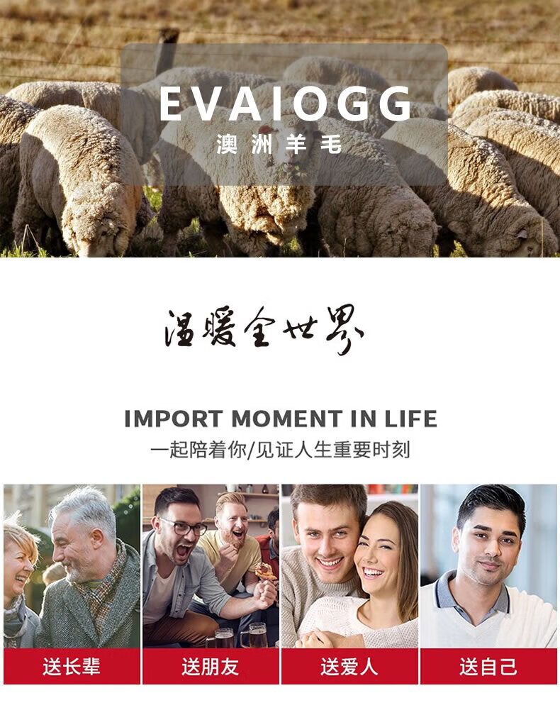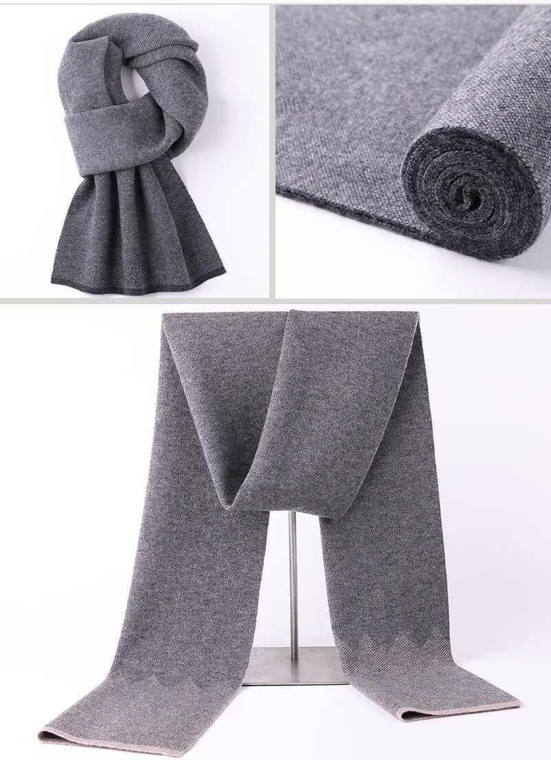 EVAIOGG Australian 100% wool scarf men's winter new soft and skin-friendly versatile scarf as a gift for boyfriend and husband, black