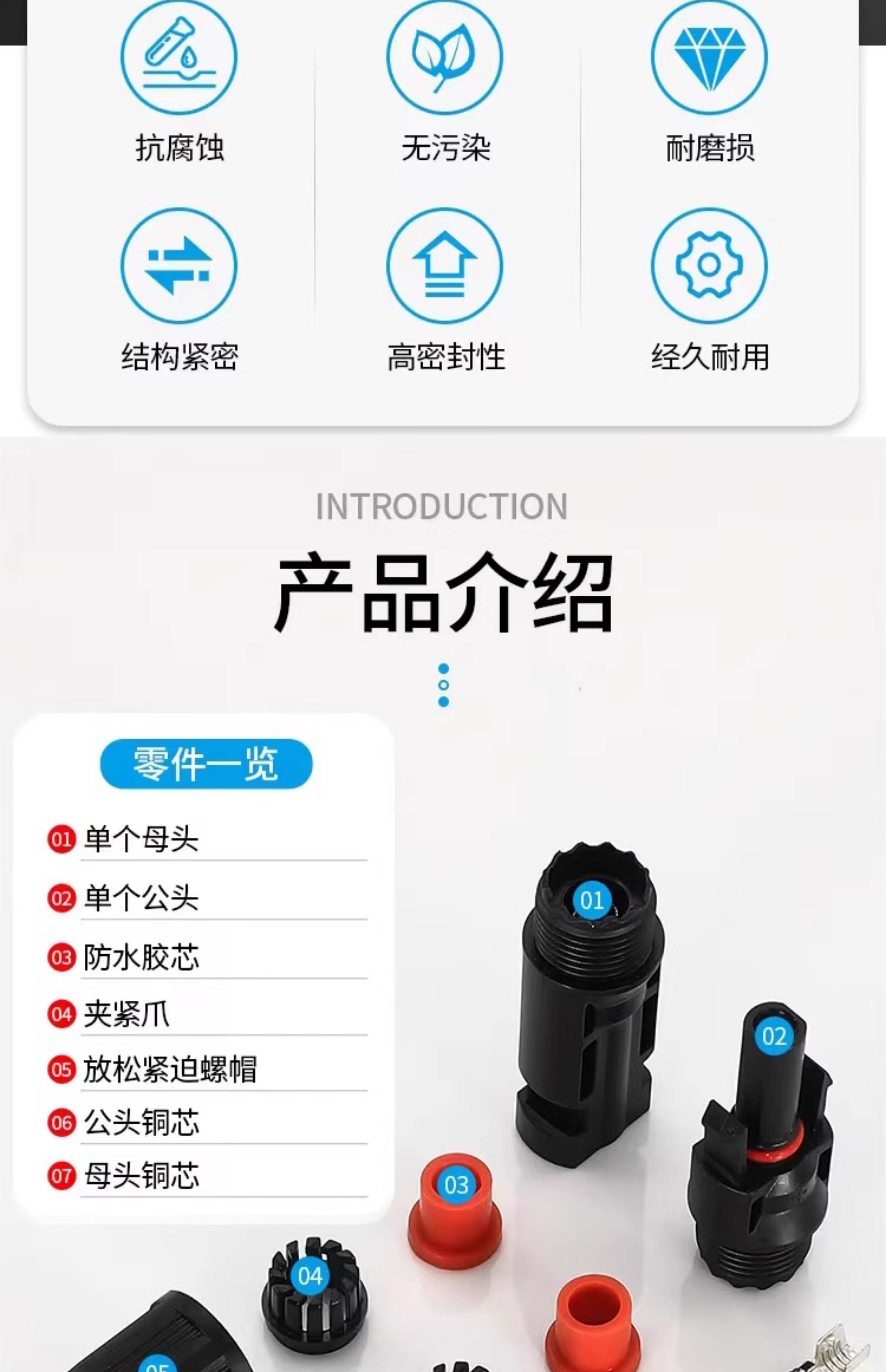 MC4 photovoltaic male and female plug mc4 connector waterproof IP67 solar module photovoltaic panel connector connector T type one point 2