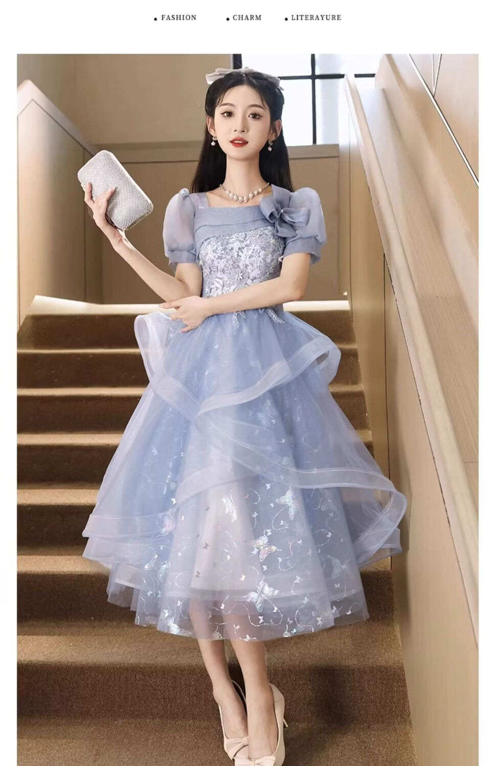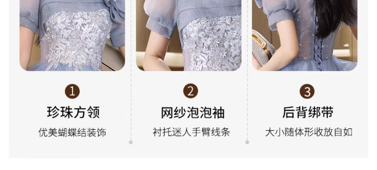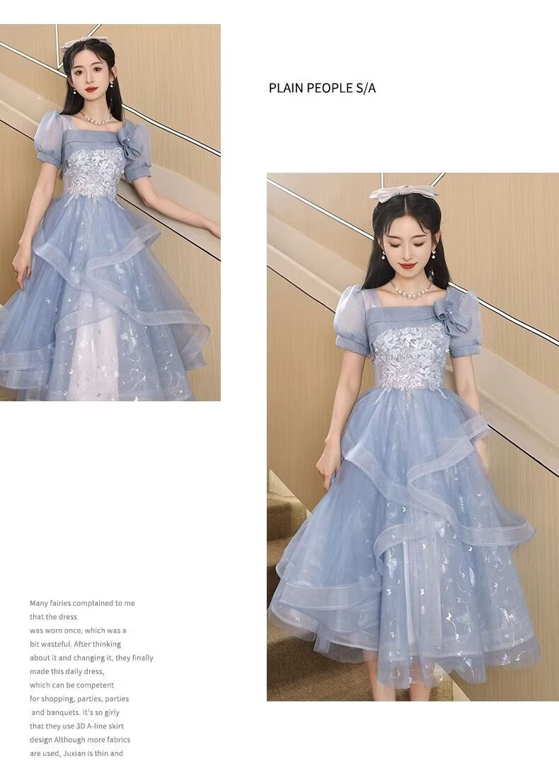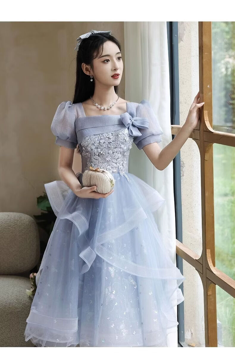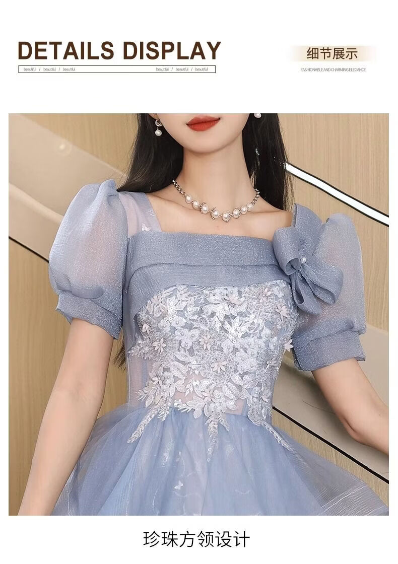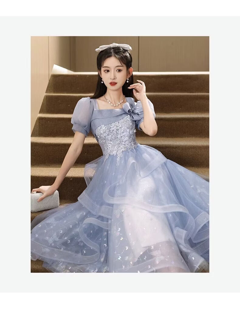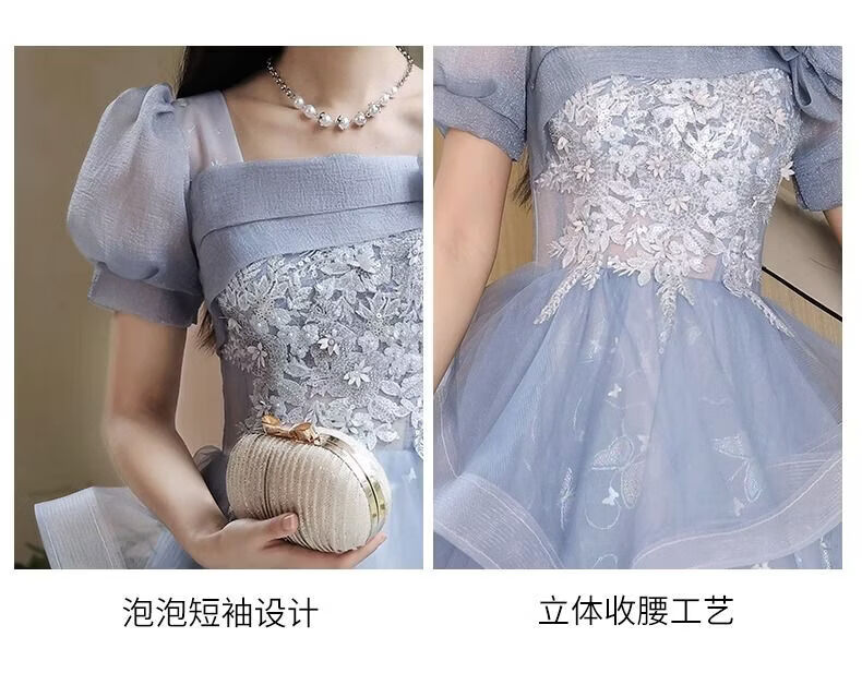 Wenlai Mansha dress, high-end light luxury niche evening dress, high-end adult ceremony dress, host can usually wear art exam dress, blue mid-length M