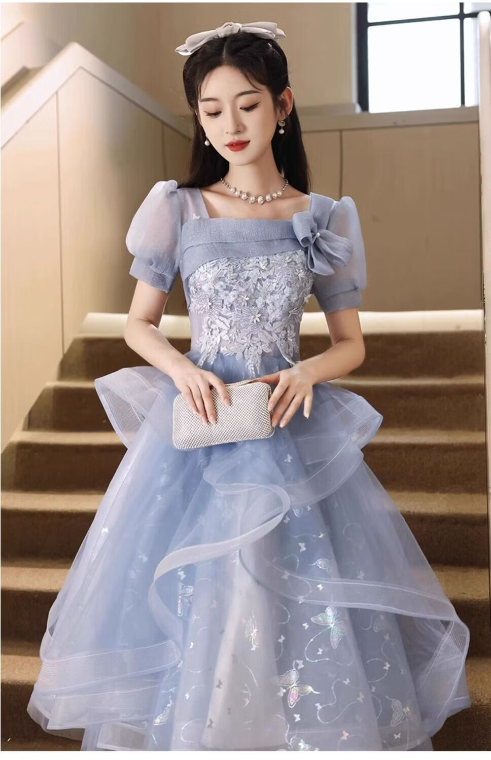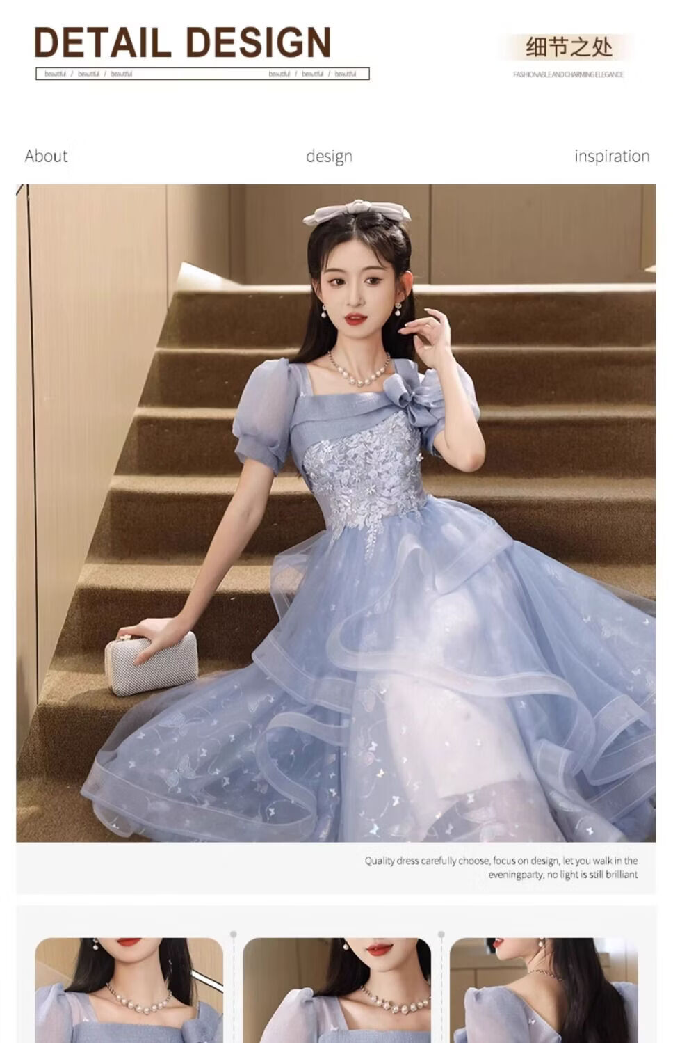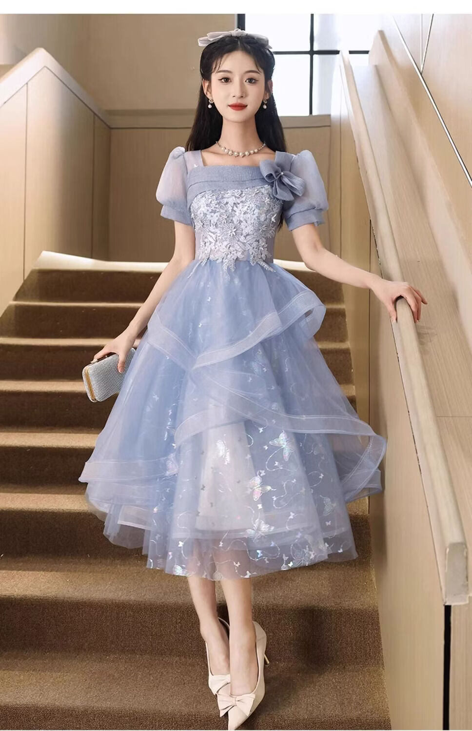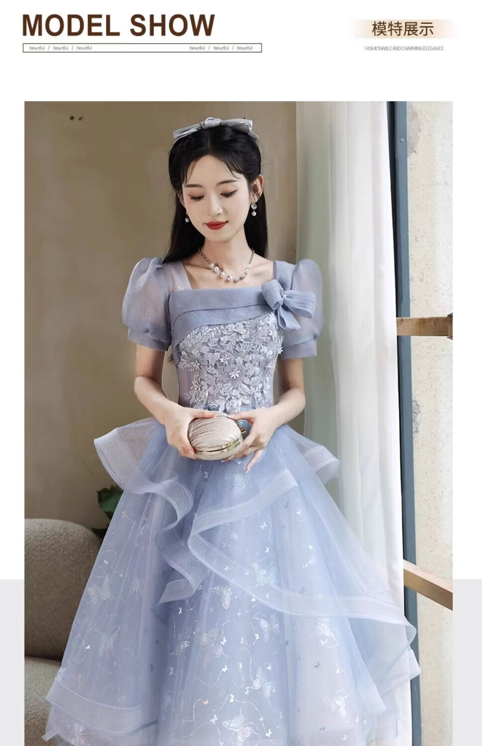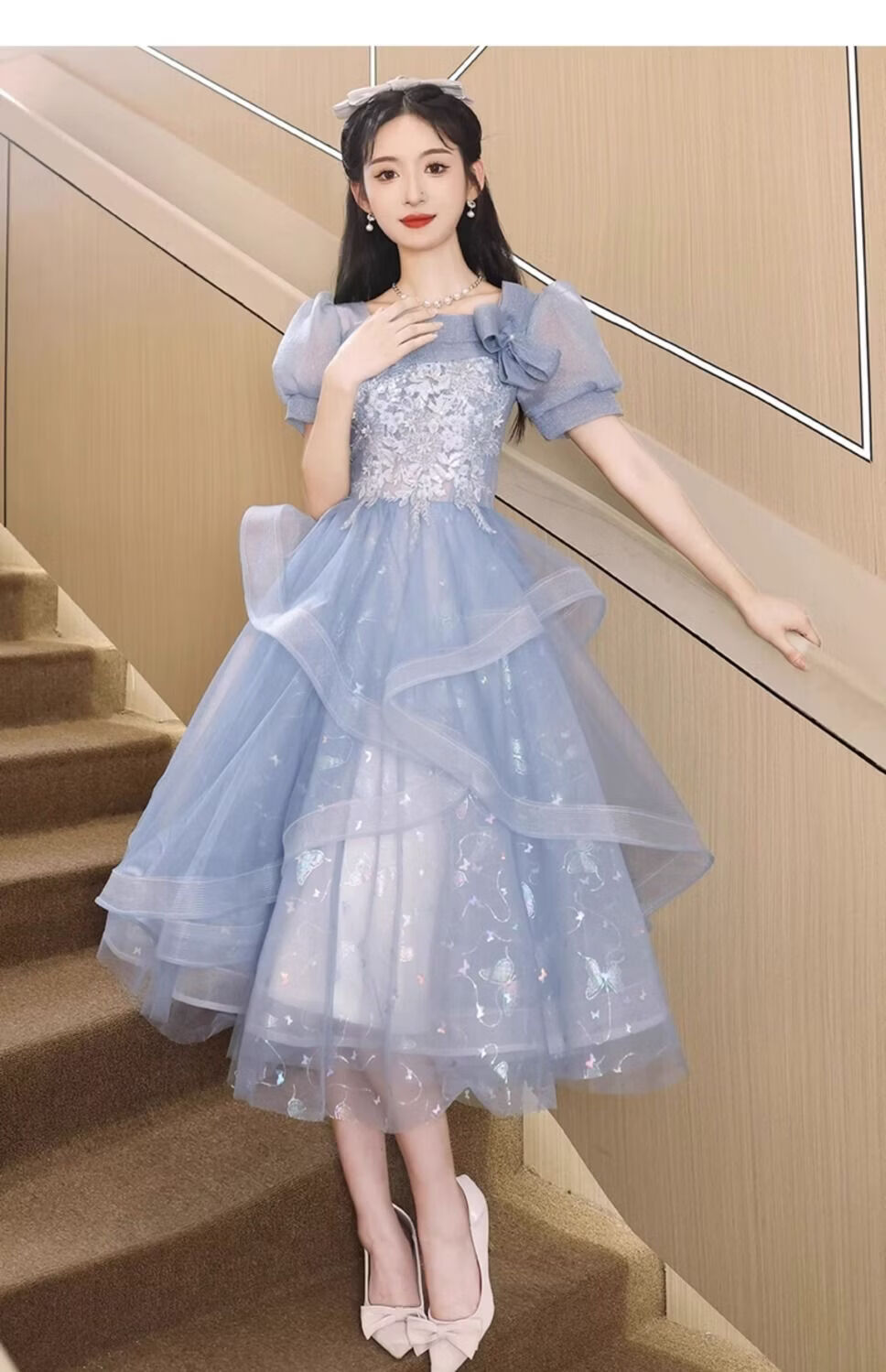 Wenlai Mansha dress, high-end light luxury niche evening dress, high-end adult ceremony dress, host can usually wear art exam dress, blue mid-length M
