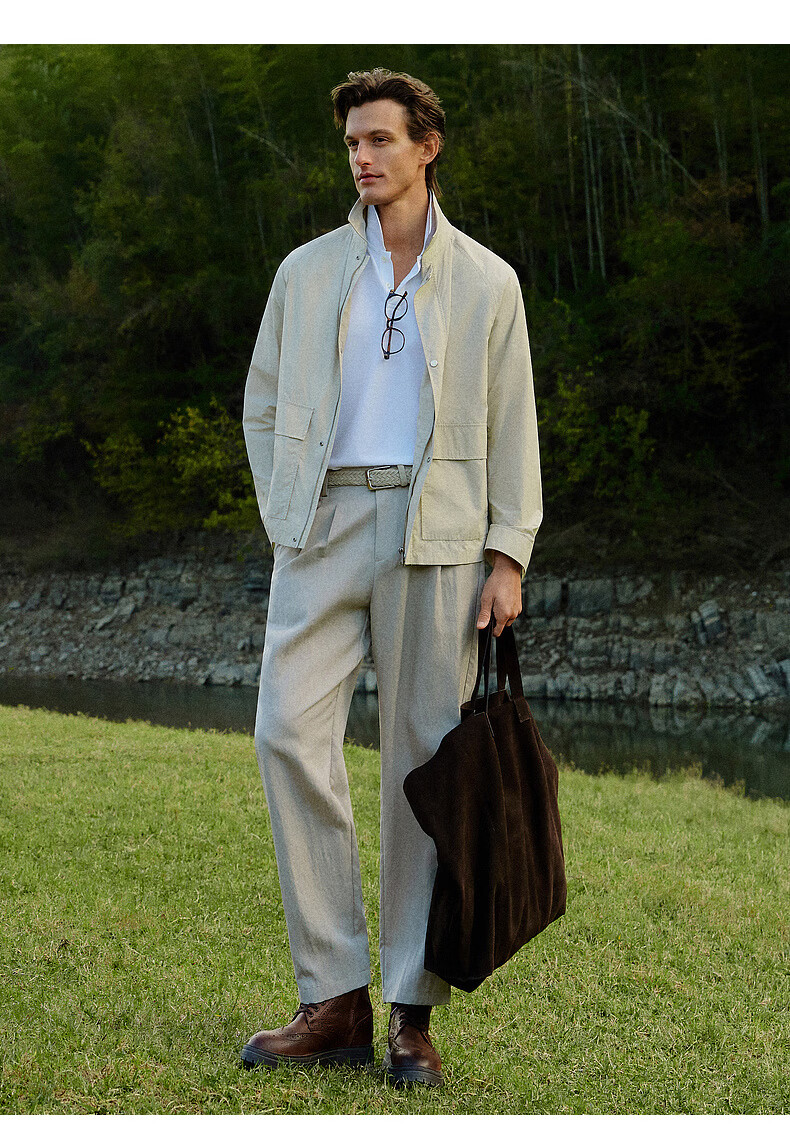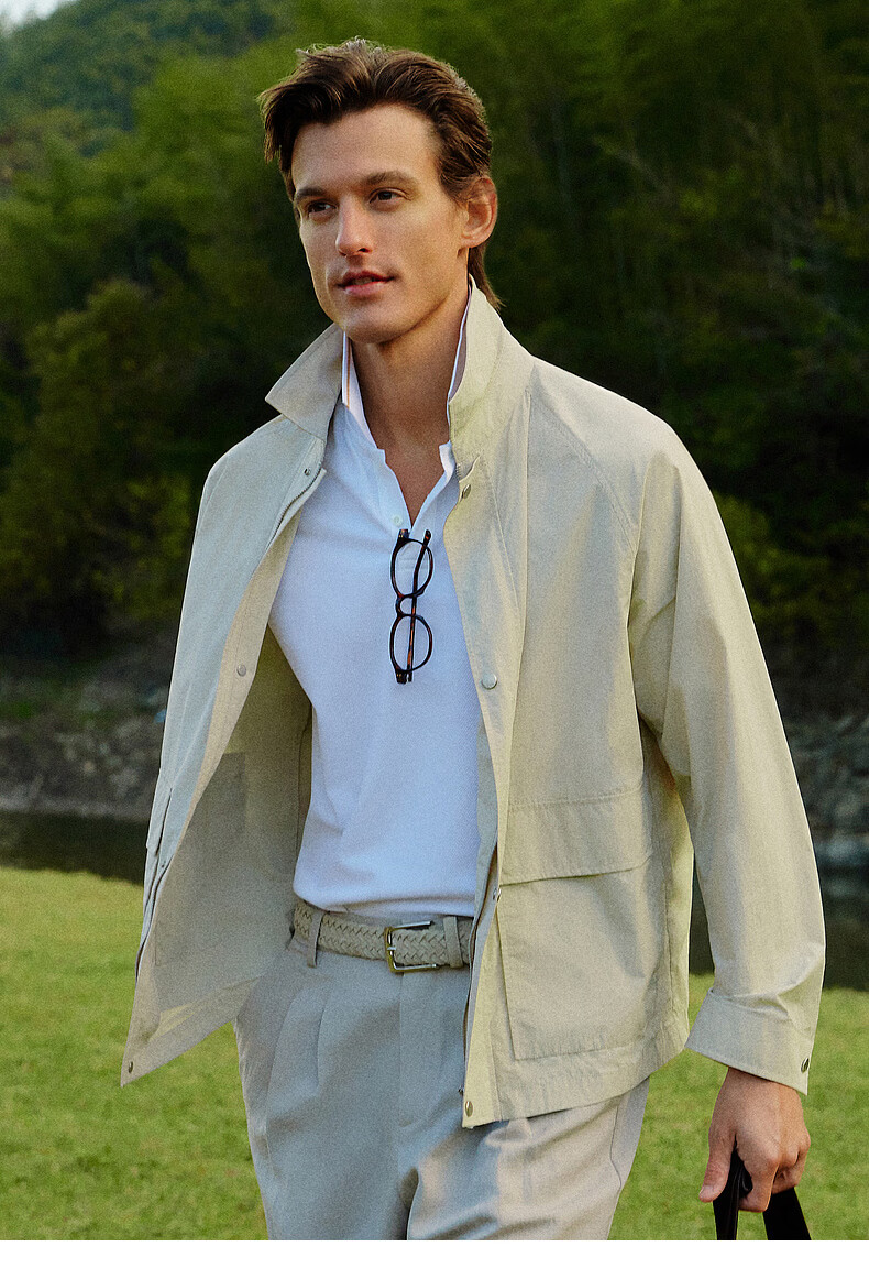 EMZ Ordos Men's Casual Jacket Top Easy to Care Thin Lapel Sports Outdoor Leisure Commuting Light Khaki S Recommended Height 165/Weight 100-110 Jin Jin equals 0.5 kg