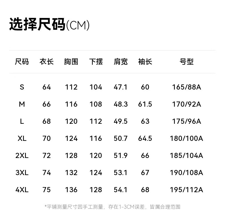 China (cm) 165 / 88-90 170 / 96-98 175 / 108-110 180 / 118-122 185 / 126-130