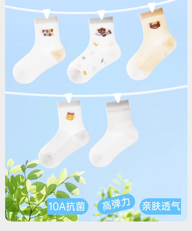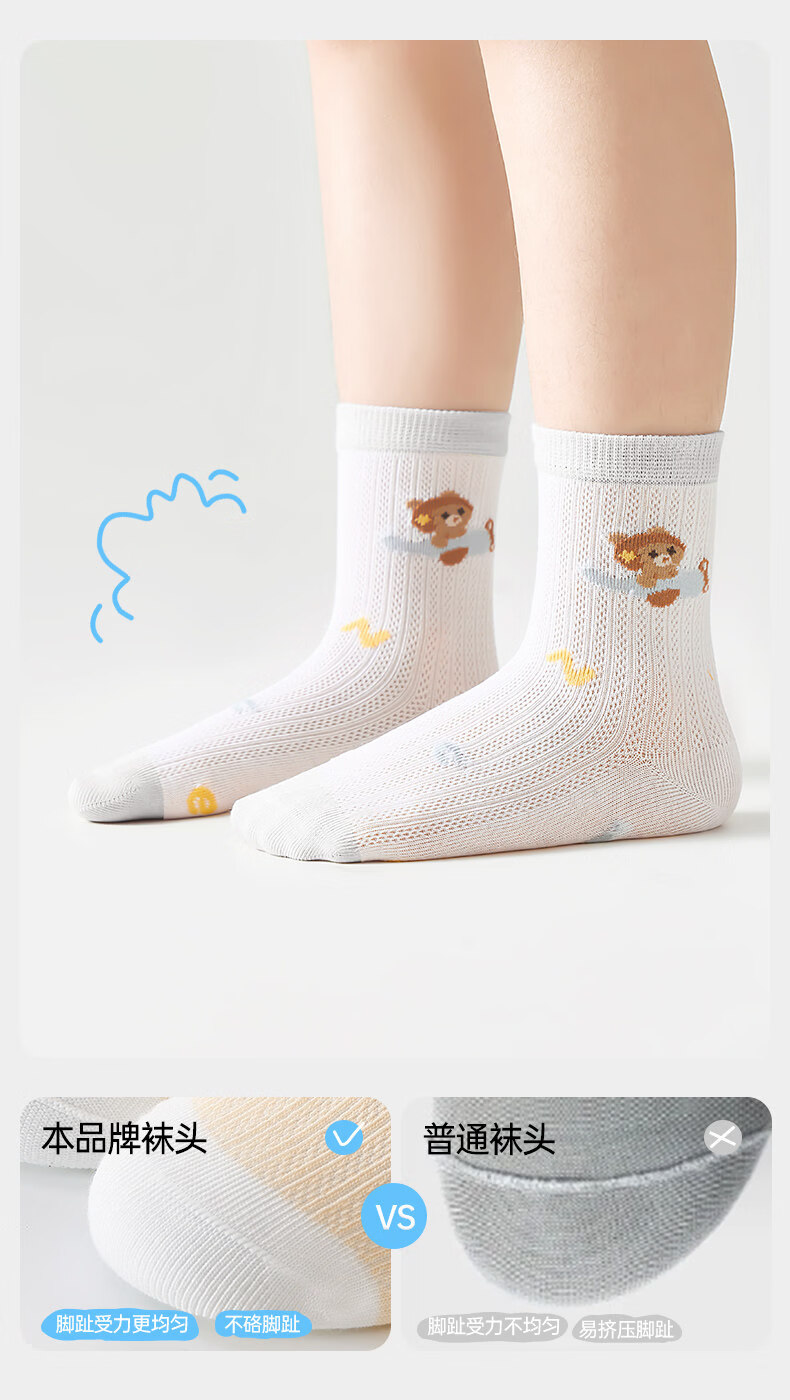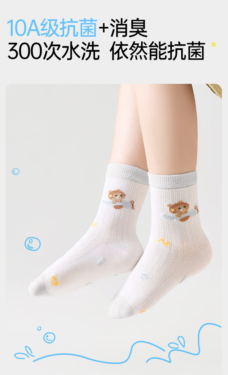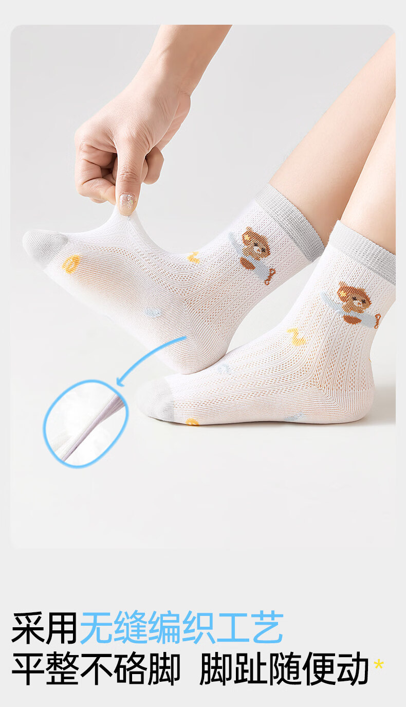 Cotton boys' socks spring and summer thin children's antibacterial boneless breathable cotton socks boys' 100% cotton mid-calf socks skin-friendly 5 pairs ZA102-Soft and Cute Bear-5 pairs 100% cotton breathable mesh socks 3-5 years old - foot length 14-16CM shoe size 20-24