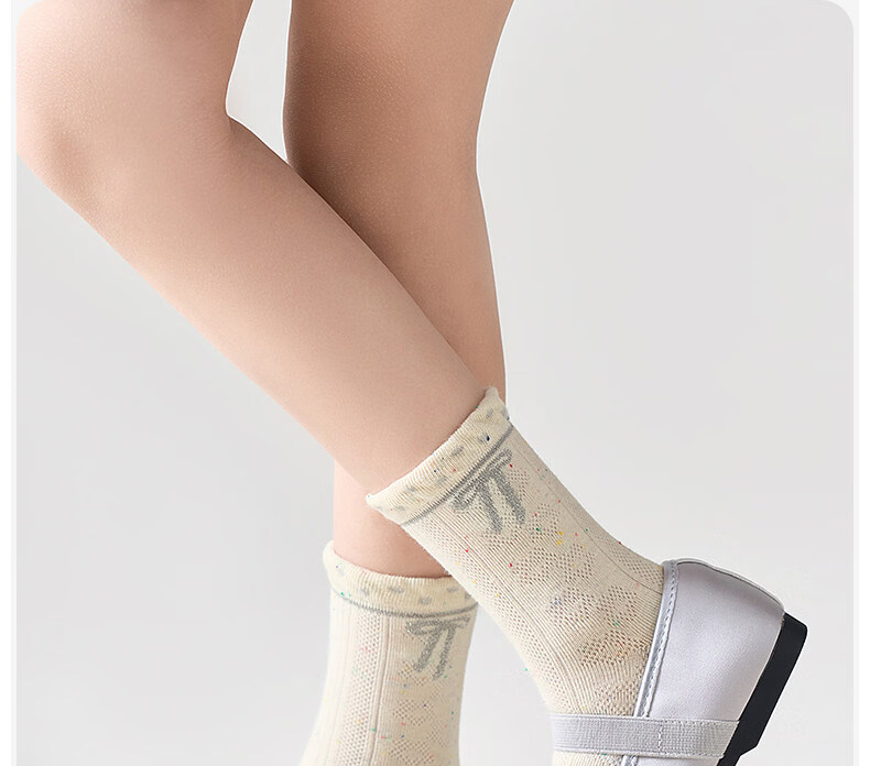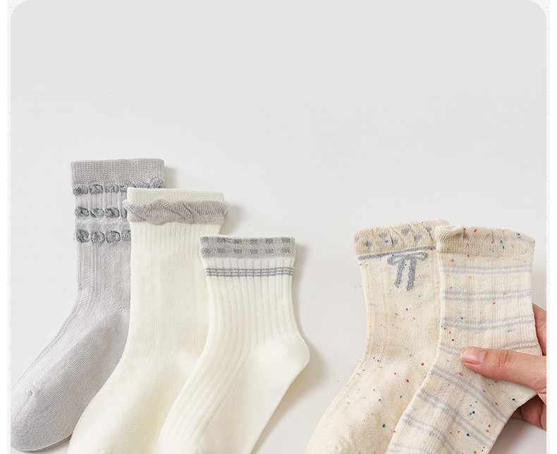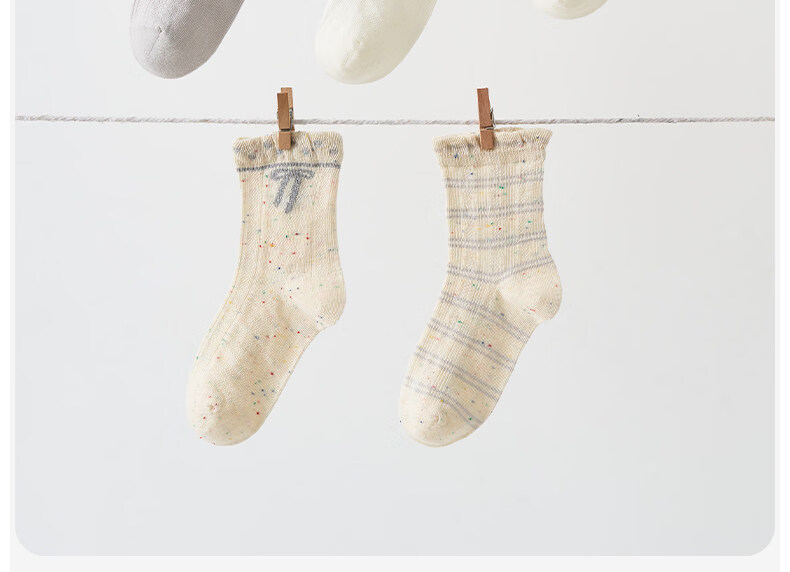 Cotton children's socks 100 pure cotton girls breathable mesh socks boneless antibacterial and deodorizing spring and summer mid-calf socks 5 pairs 26-ZA213-Cream mousse-5 pairs 10A antibacterial and deodorizing 3-5 years old - foot length 14-16CM shoe size 20-24