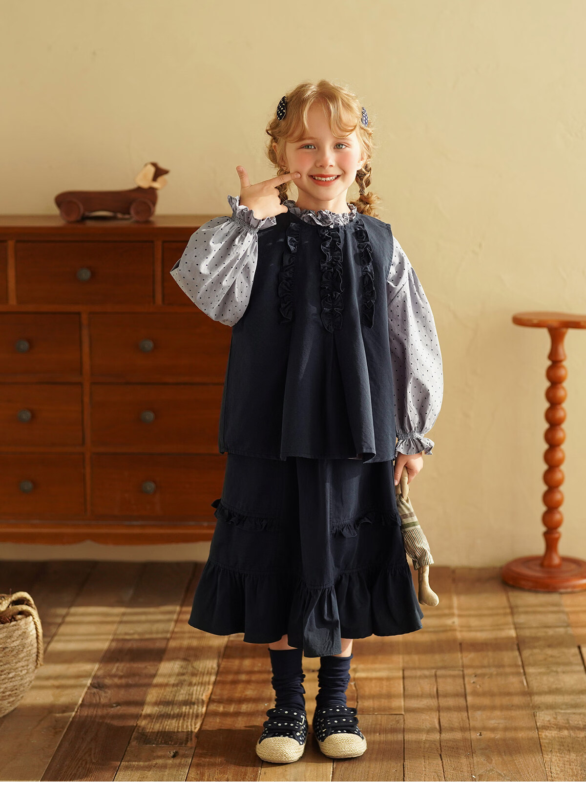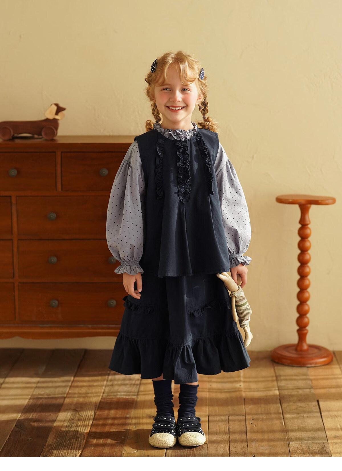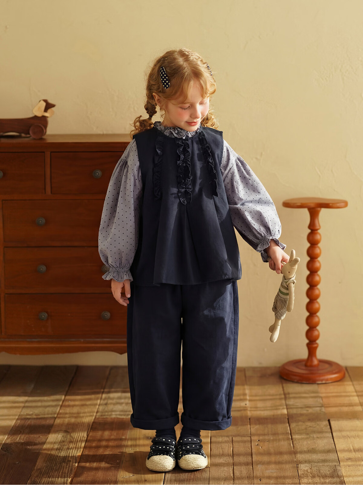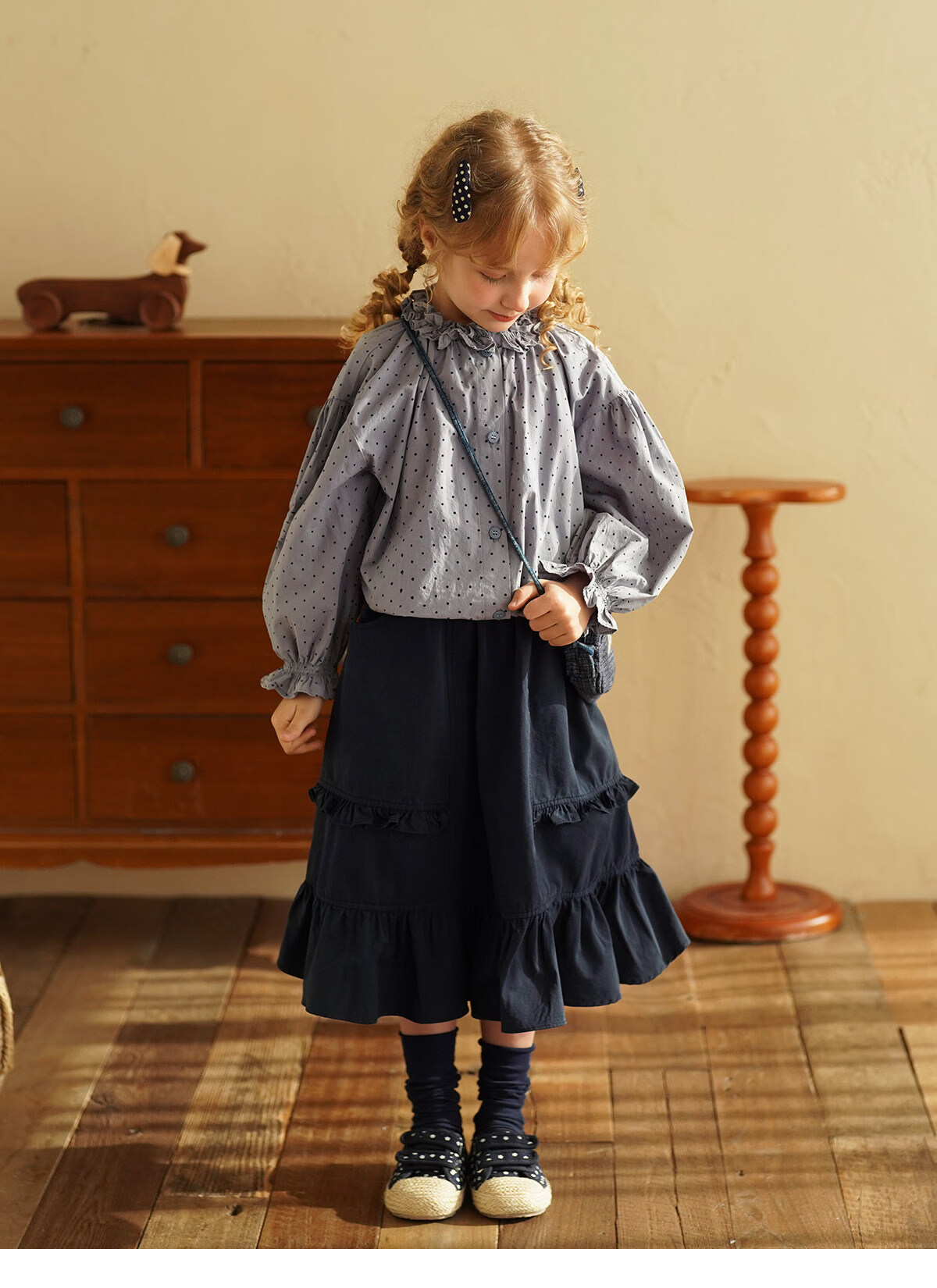 Yantaijia girls pure cotton polka dot lace shirt spring new little girl doll shirt foreign style puff sleeve top haze blue 130