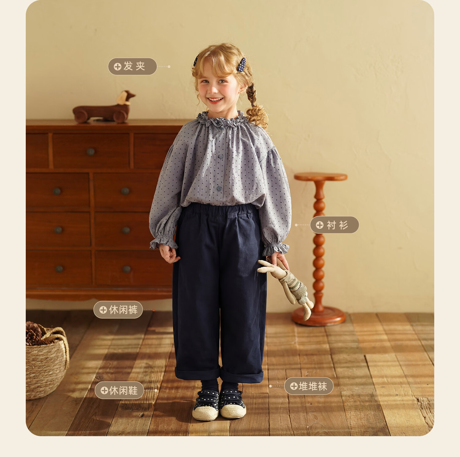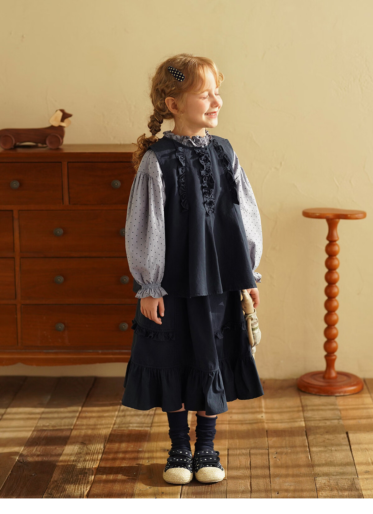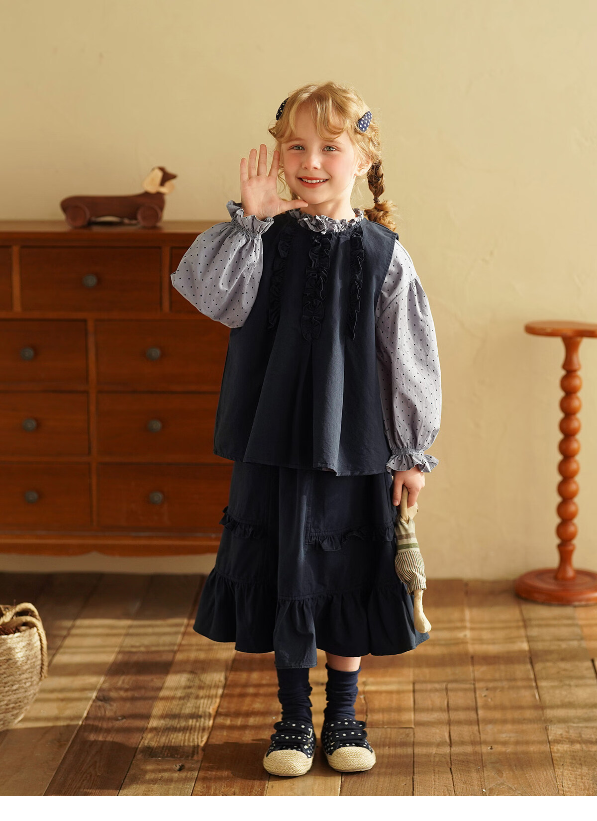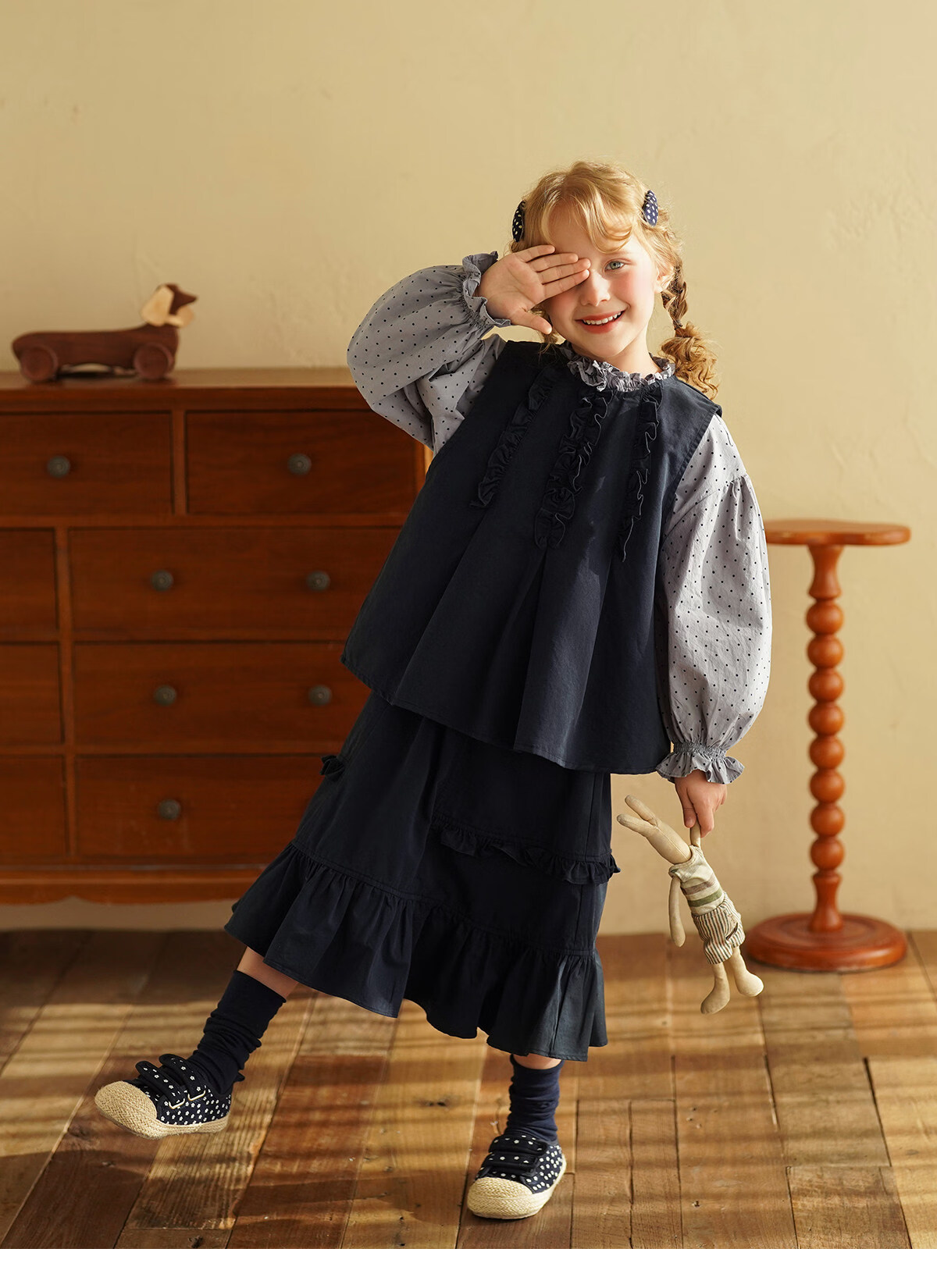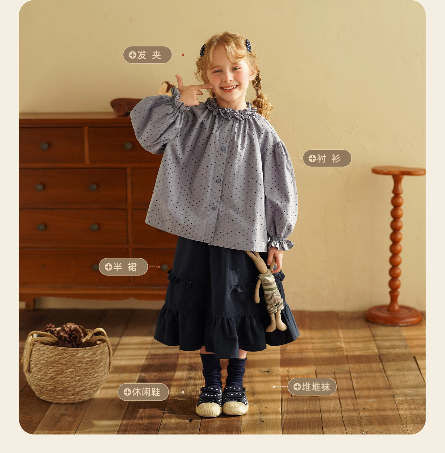 Yantaijia girls pure cotton polka dot lace shirt spring new little girl doll shirt foreign style puff sleeve top haze blue 130