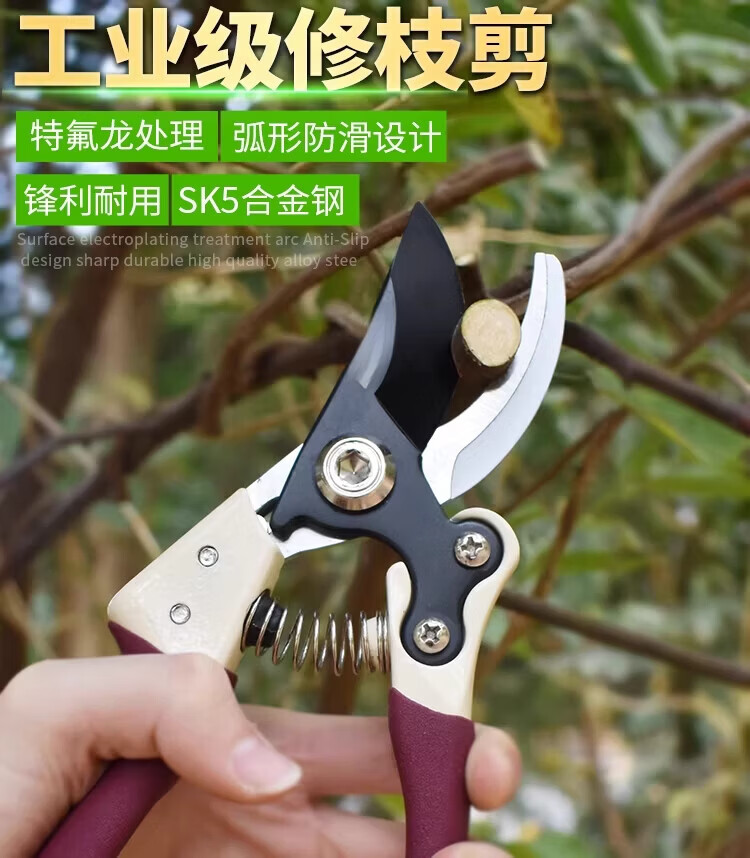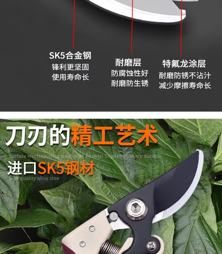 MVVWVV German fine craft garden special scissors for pruning branches, garden powerful SK5 fruit tree pruning scissors, flowers and trees to cut thick branches, professional rubber-coated black blade thick branch scissors with scissors set