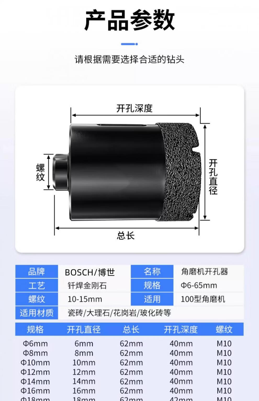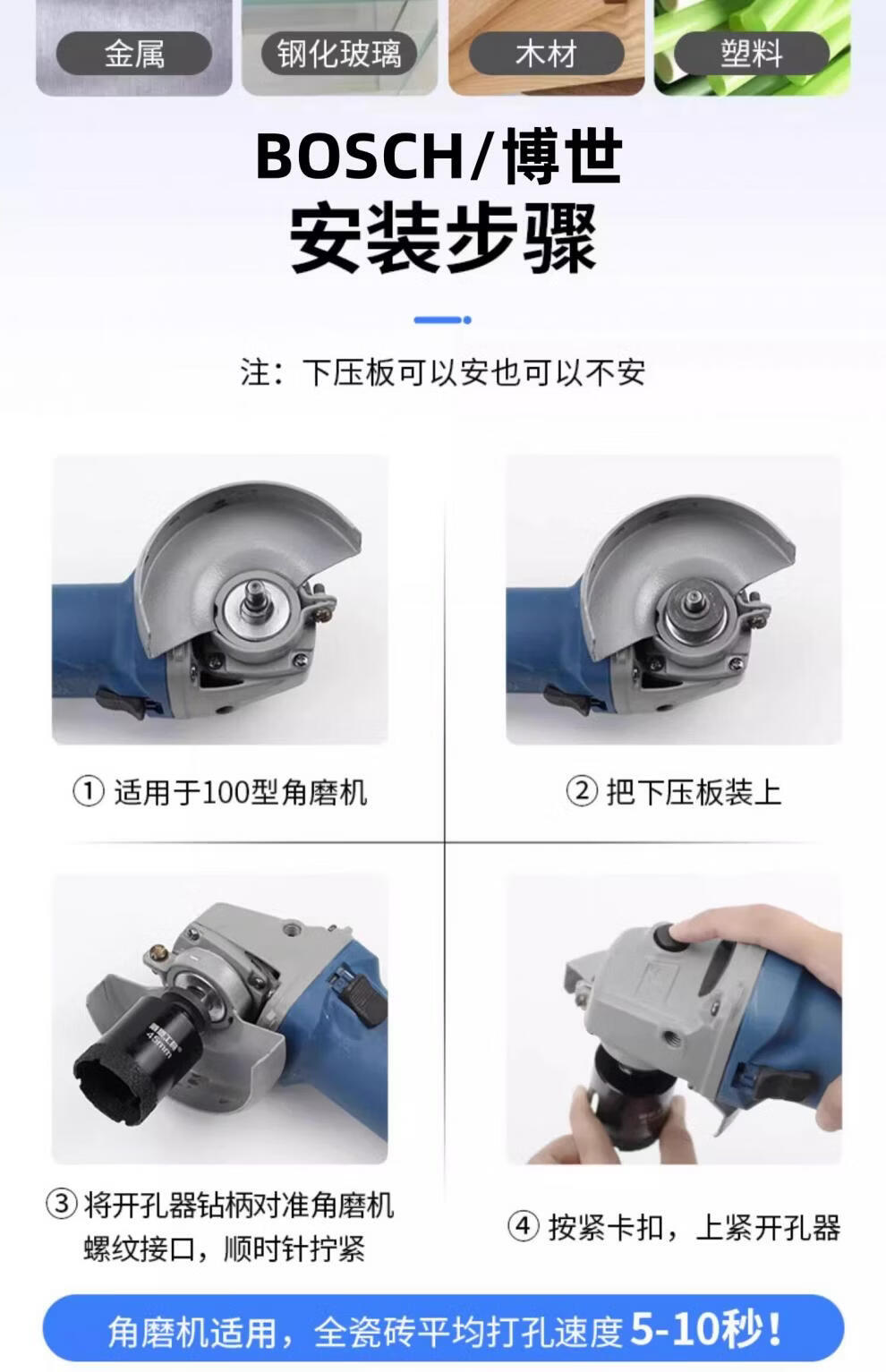 Ceramic tile hole opener German angle grinder special drill tile porcelain ceramic glass marble dry drilling drill 40mm dry drilling