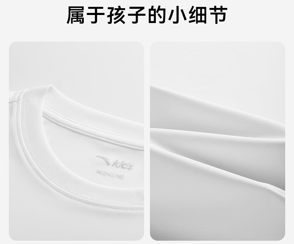 Anta children's T-shirt for boys and girls, easy to wash T2026 summer new product, cool, quick-drying, breathable, simple and versatile, short T running T, pure white-1 165