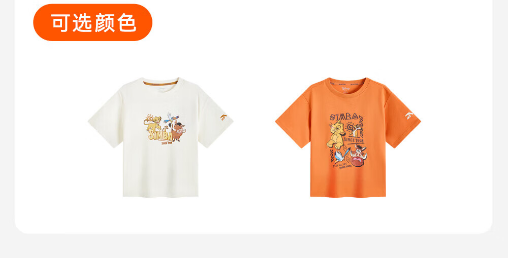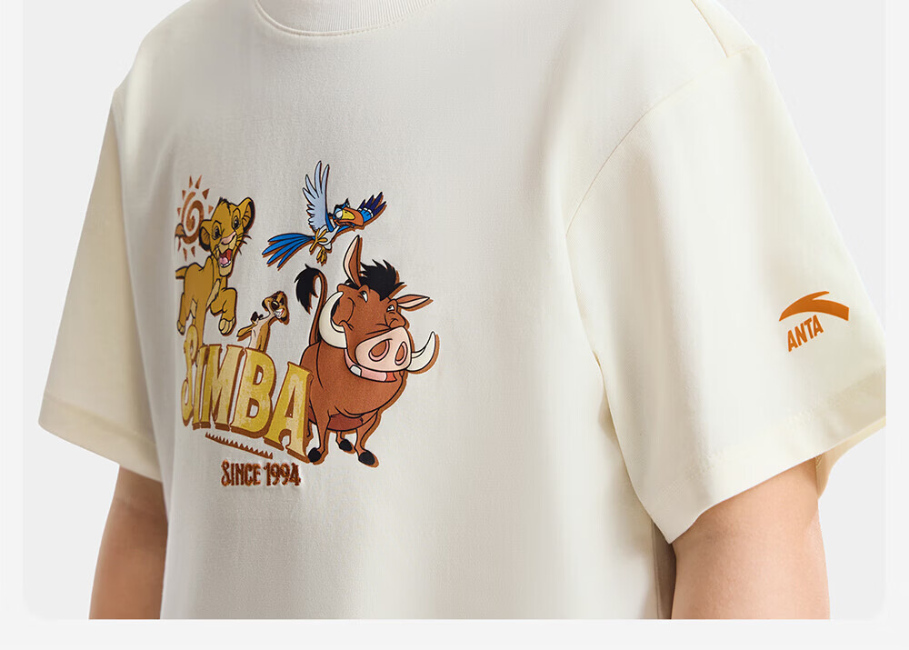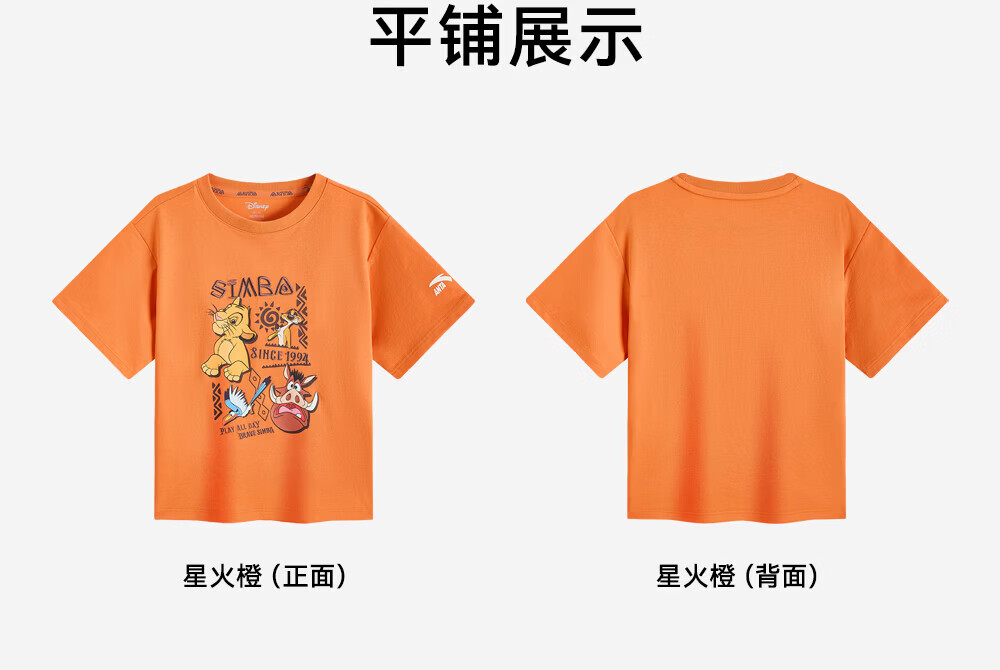 ANTA Children's T-shirt Boys' Lion King 2026 Summer New Product Comfortable Breathable Printed Short T352629117 Spark Orange-2 140
