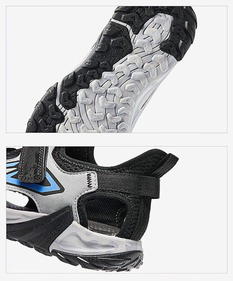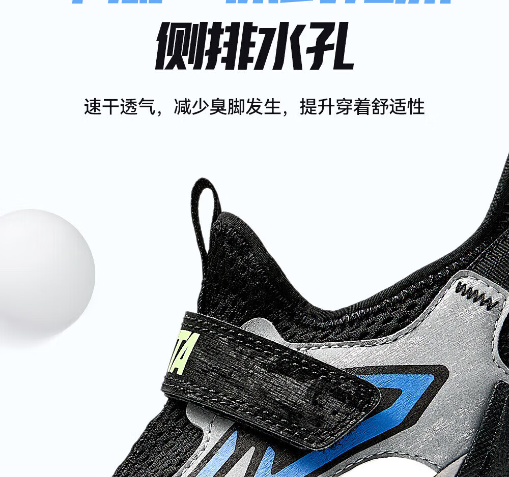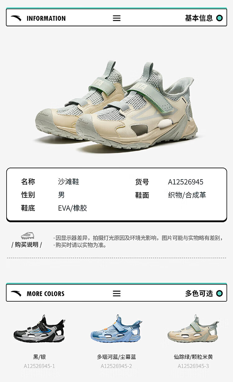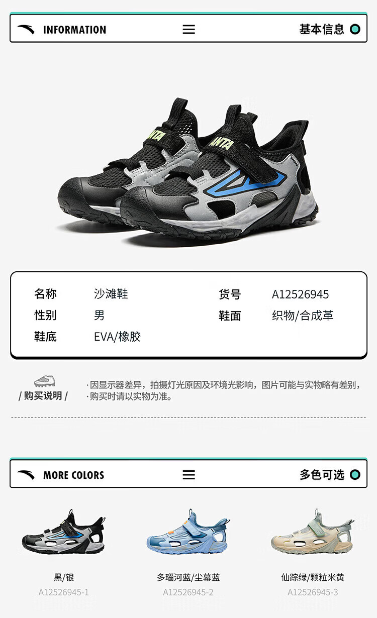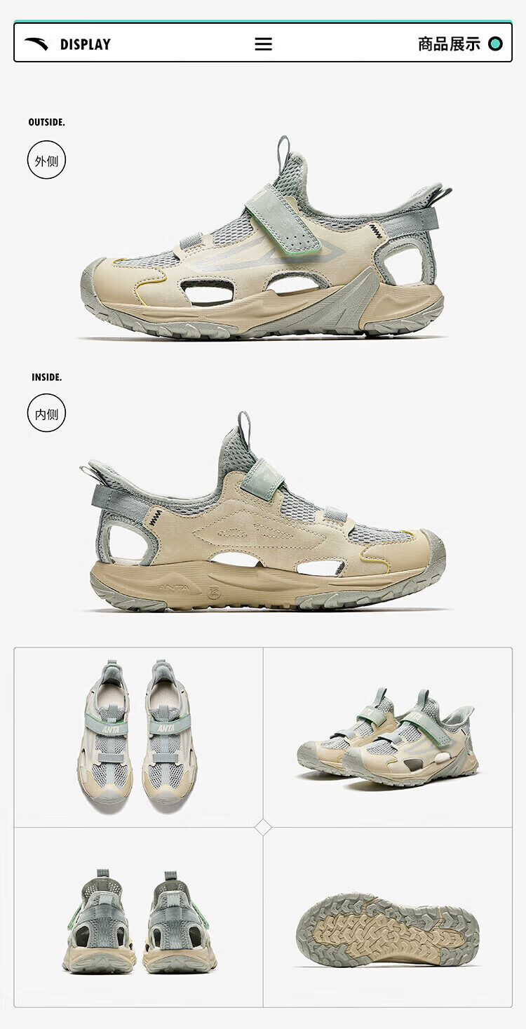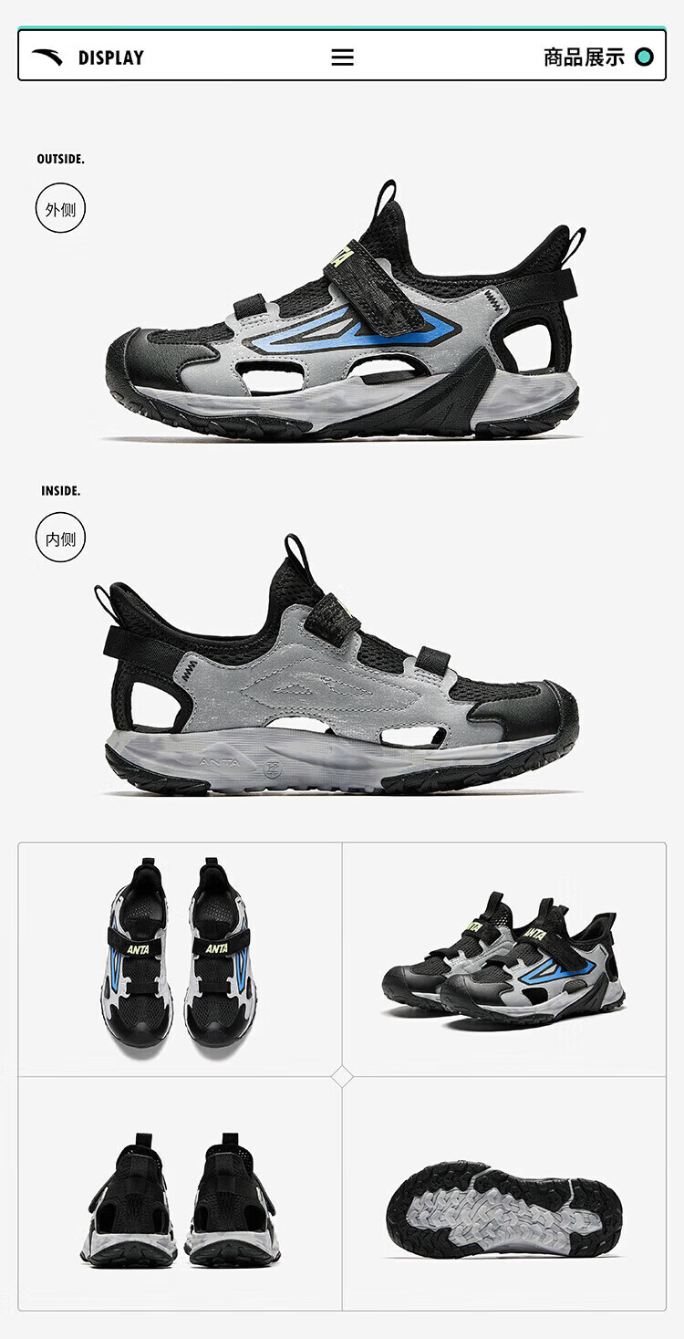 ANTA children's sandals, boys' shoes, 2026 summer new breathable Velcro shark toe outdoor beach shoes, fantasy blue/lacquer glaze green/ash blue-5 33 shoe inner length 20.5cm