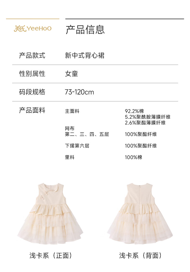 YEEHOO shopping mall same style children's skirt girls summer vest skirt new Chinese style fluffy gauze skirt cute new style light card series 110 cm