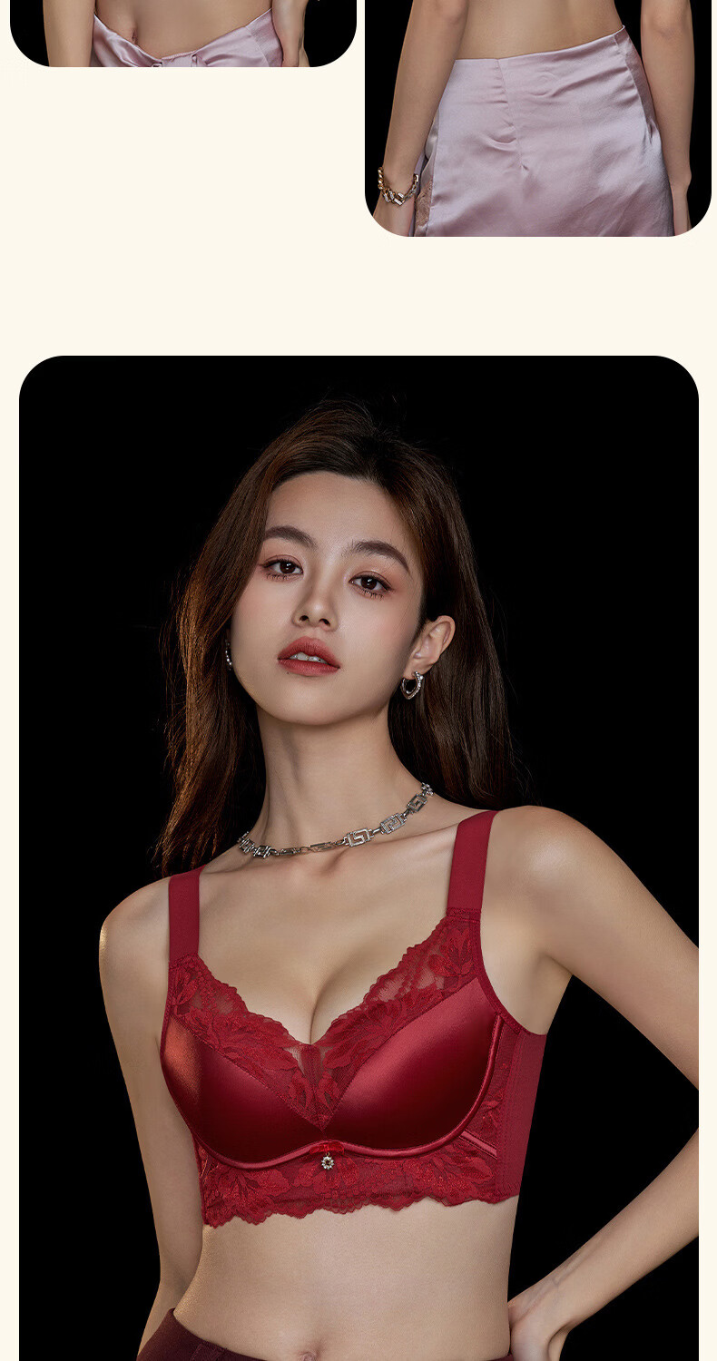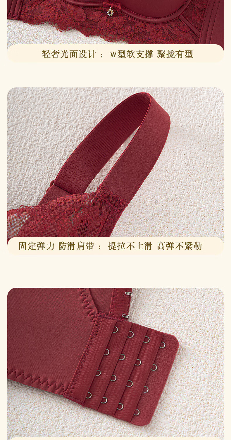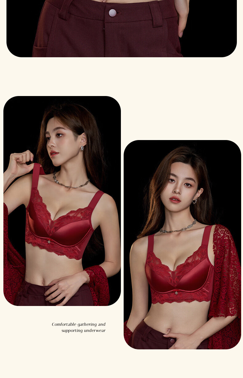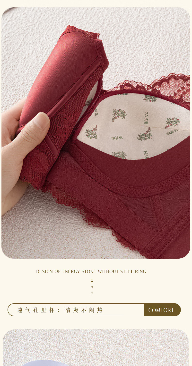 Modal high-end French bra for women with small breasts gathered for New Year, Ben Ming Nian, red wire-free lace bra, red 75A (155)