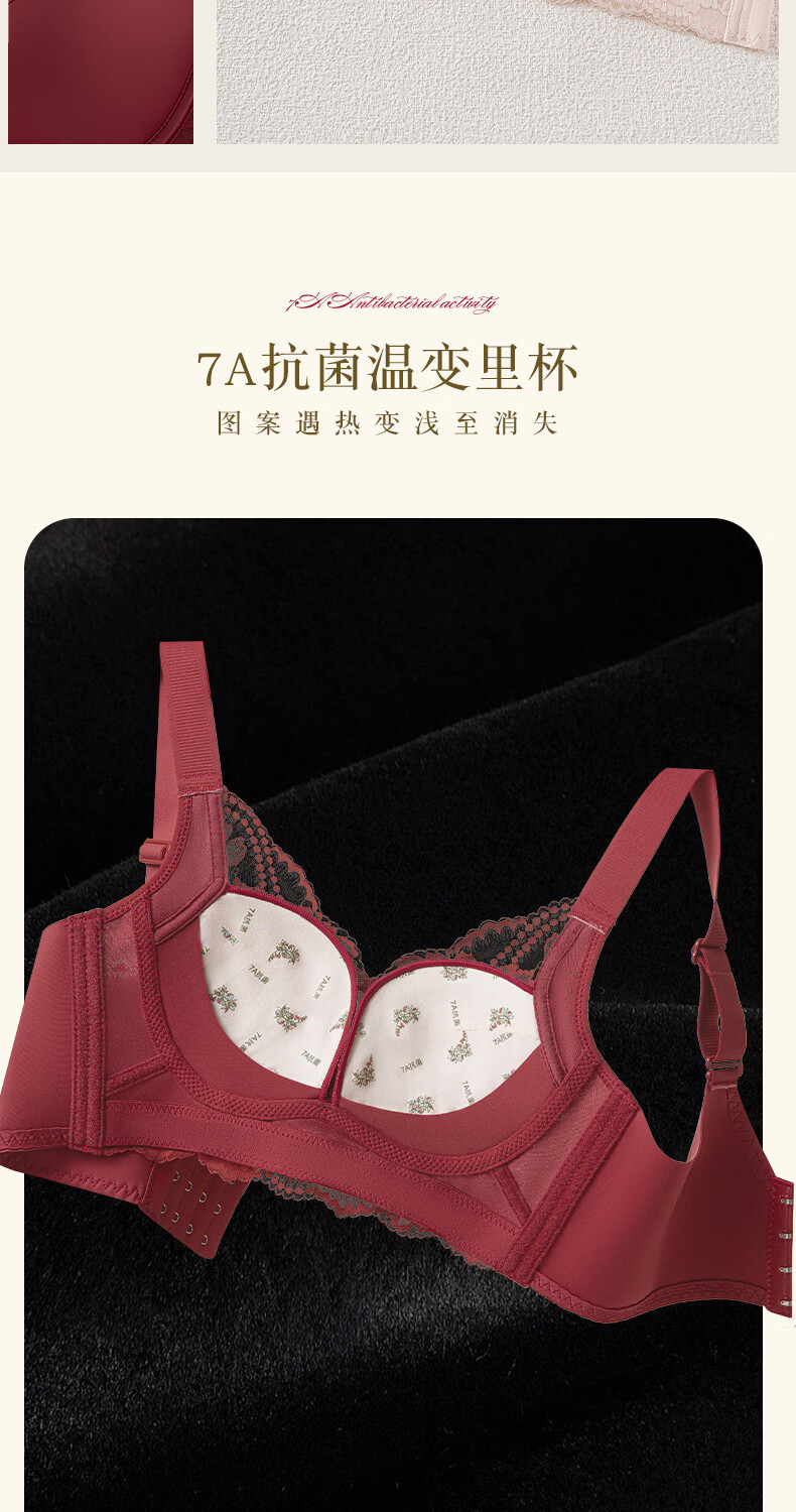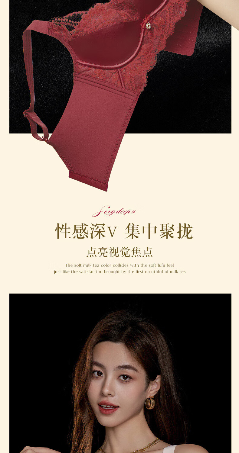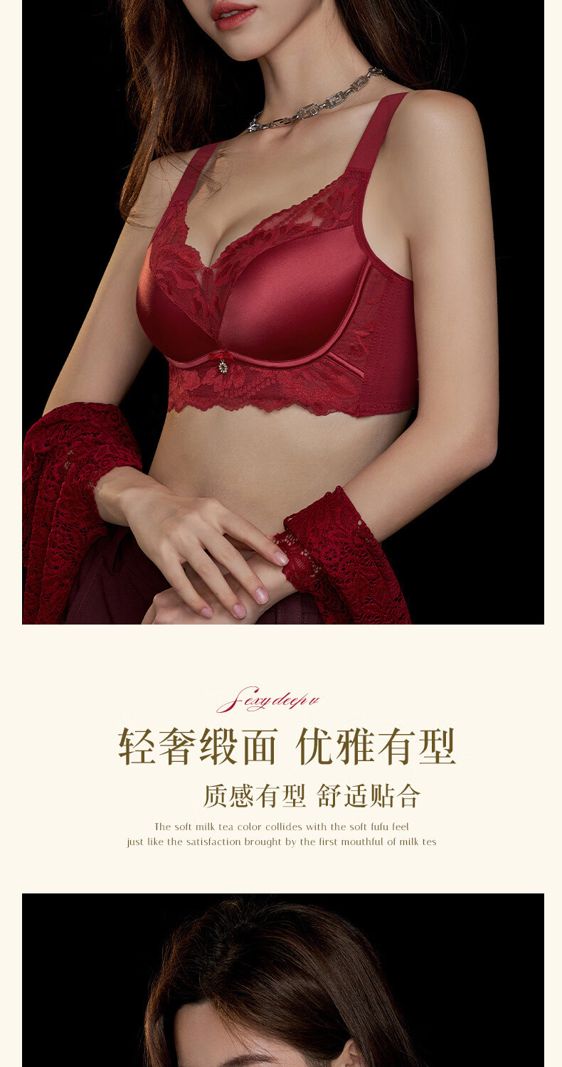 Modal high-end French bra for women with small breasts gathered for New Year, Ben Ming Nian, red wire-free lace bra, red 75A (155)