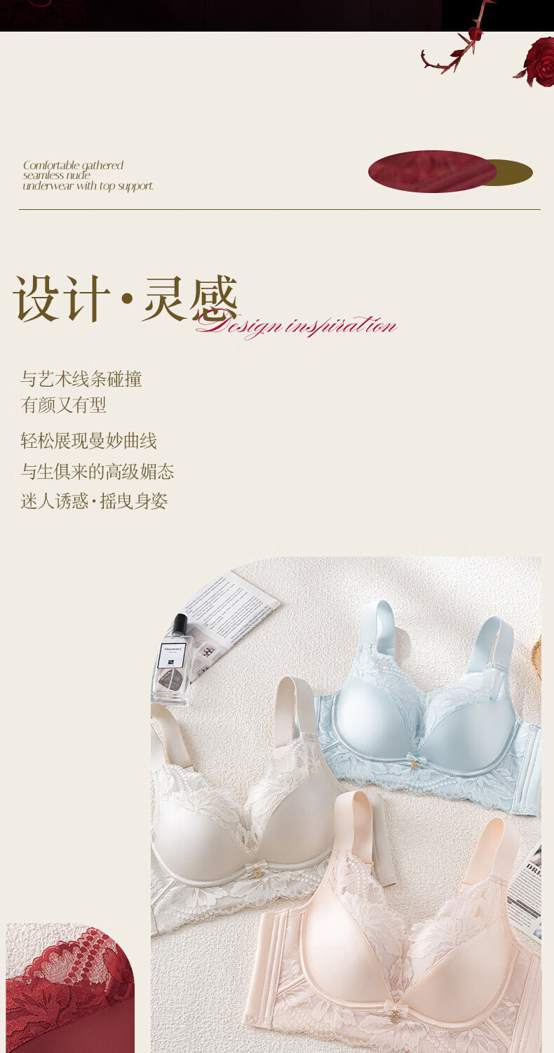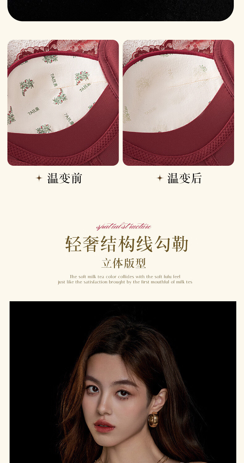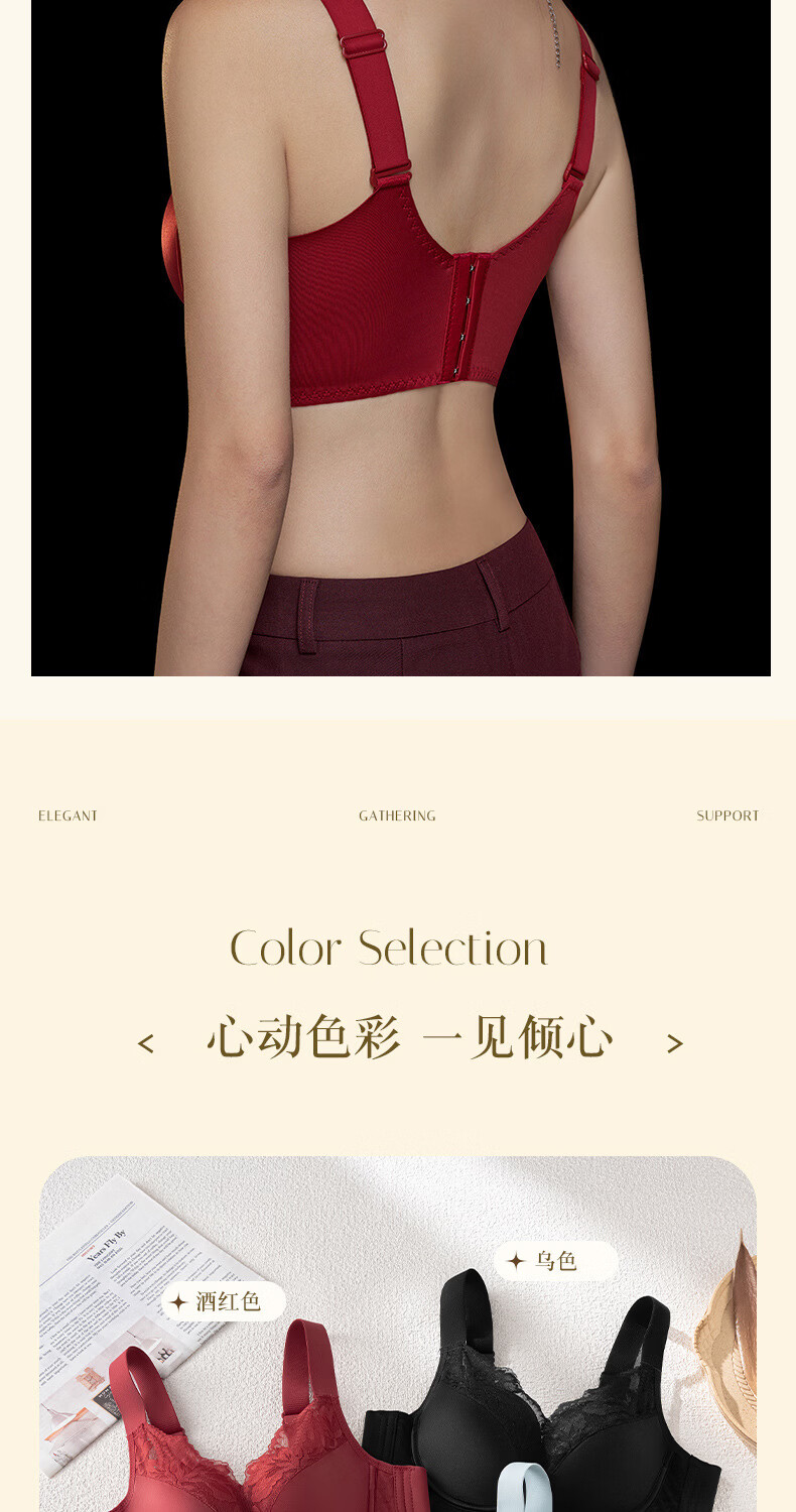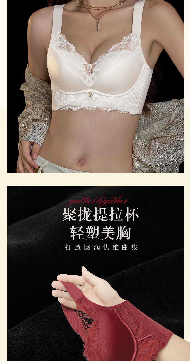 Modal high-end French bra for women with small breasts gathered for New Year, Ben Ming Nian, red wire-free lace bra, red 75A (155)