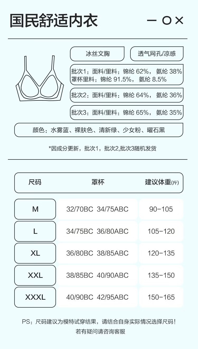 Hengyuanxiang Seamless Underwear Women's 2026 Summer Thin Breathable Ice Silk Cool Feel Bra Soft Support Beautiful Back Anti-Sagging Bra Water Mist Blue M (90-105Jin Jin equals 0.5kg 32170BC 3475ABC)